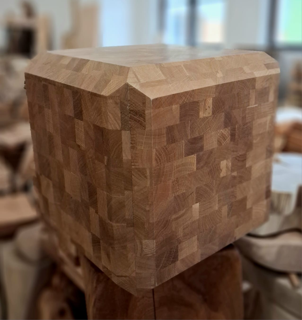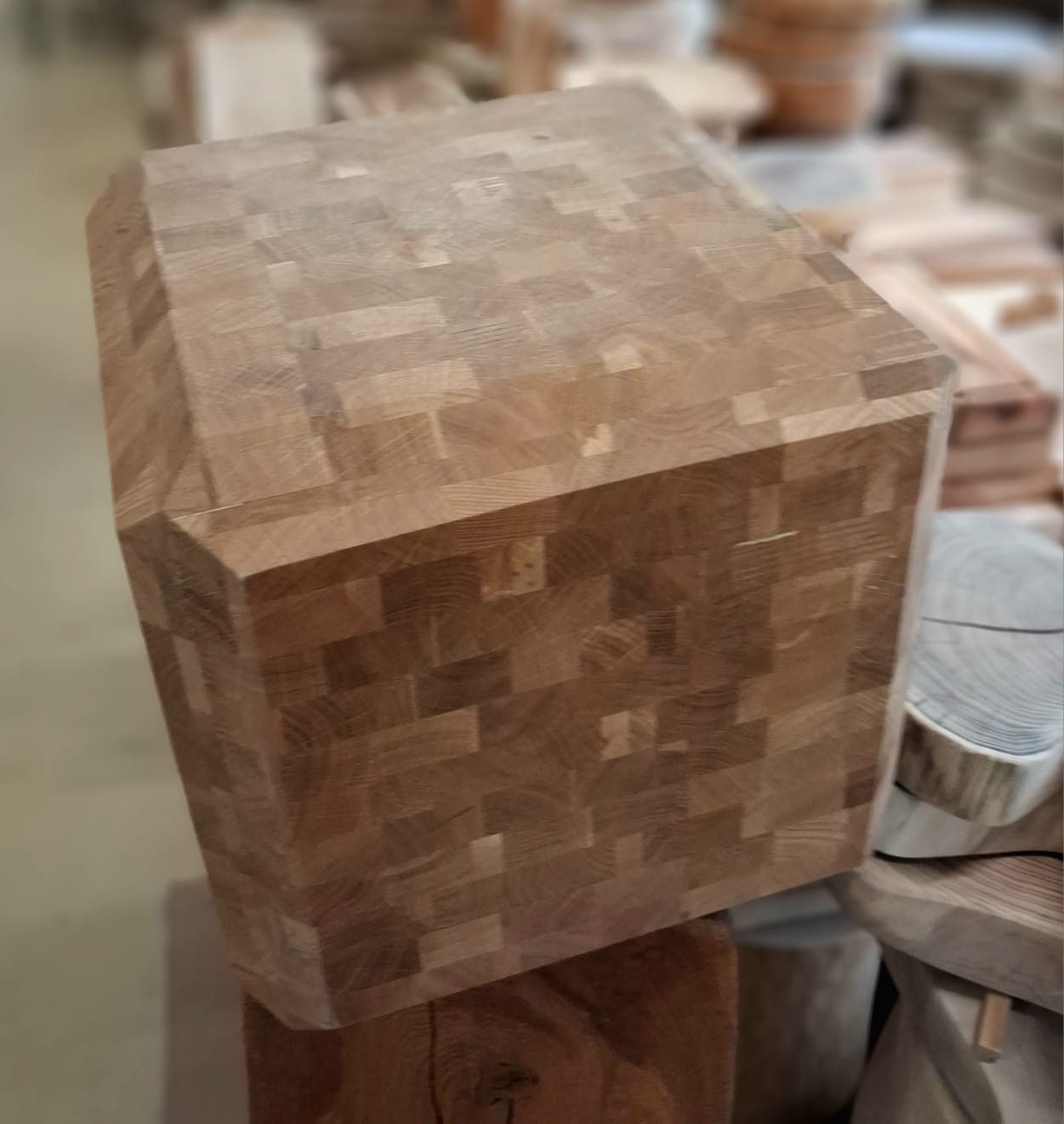 Dutá lepená dubová krychle o hraně 36 cm je skvělým dekoračním prvkem na celý život. Krychle je vytvořena z dubových kostiček o síle 4 cm hloubkově ošetřená proti škůdcům