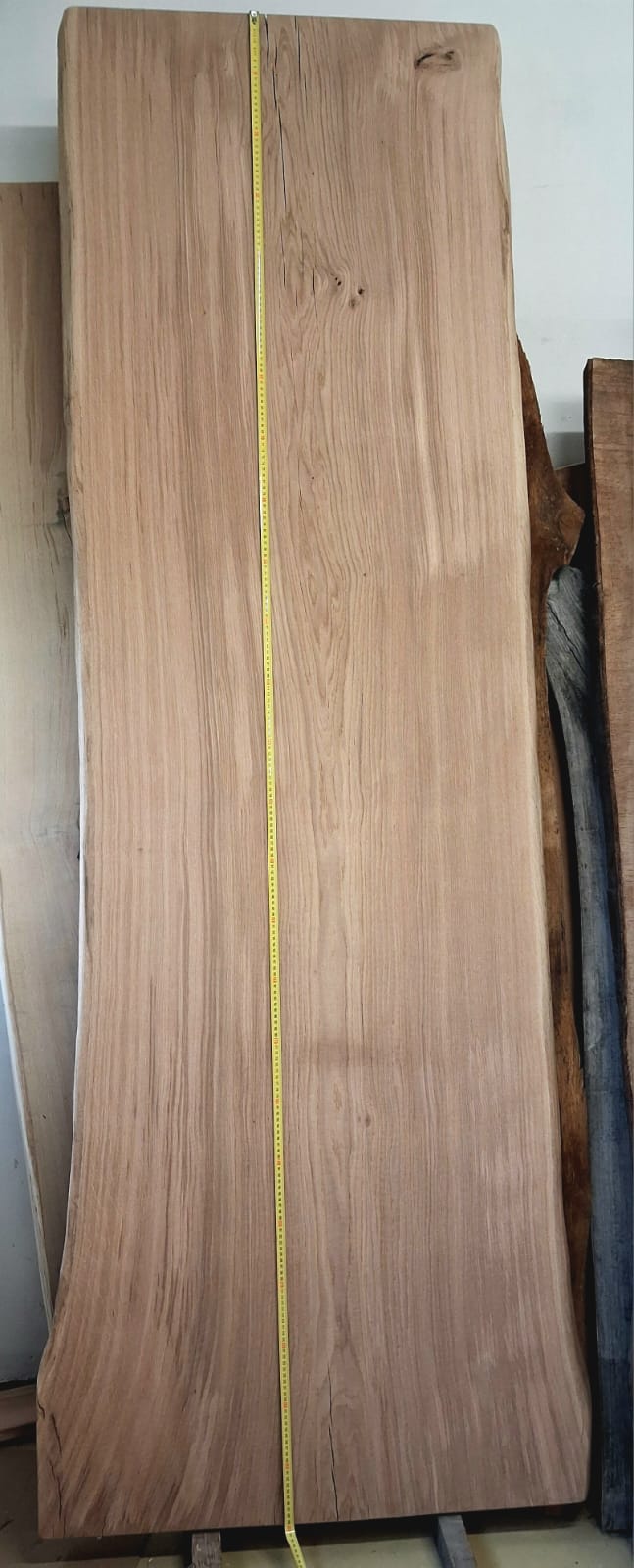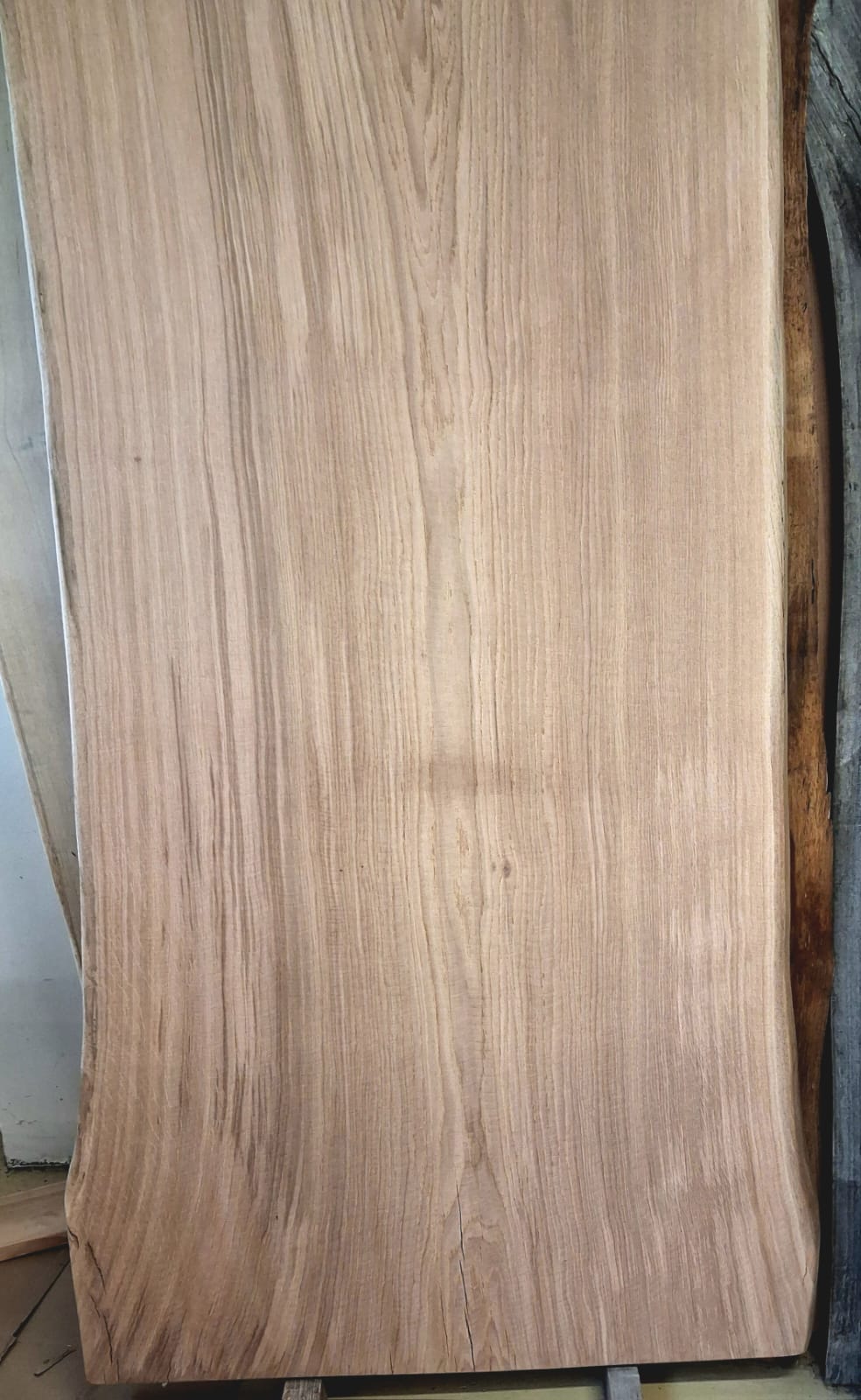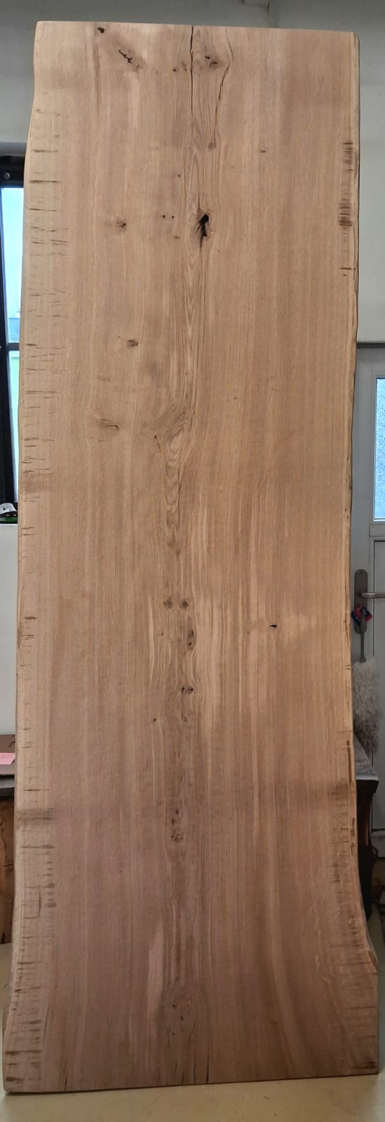 Fošna z dubu broušená. Masivní fošna s přírodními hranami z tvrdého dubového dřeva připravená na další využití. Ideální na přípravu originálního stolu, desky pod umyvadlo atd.