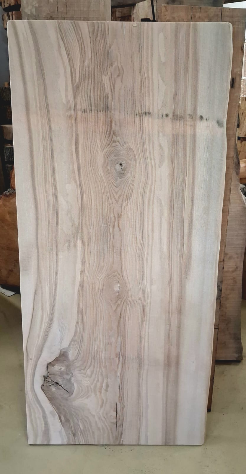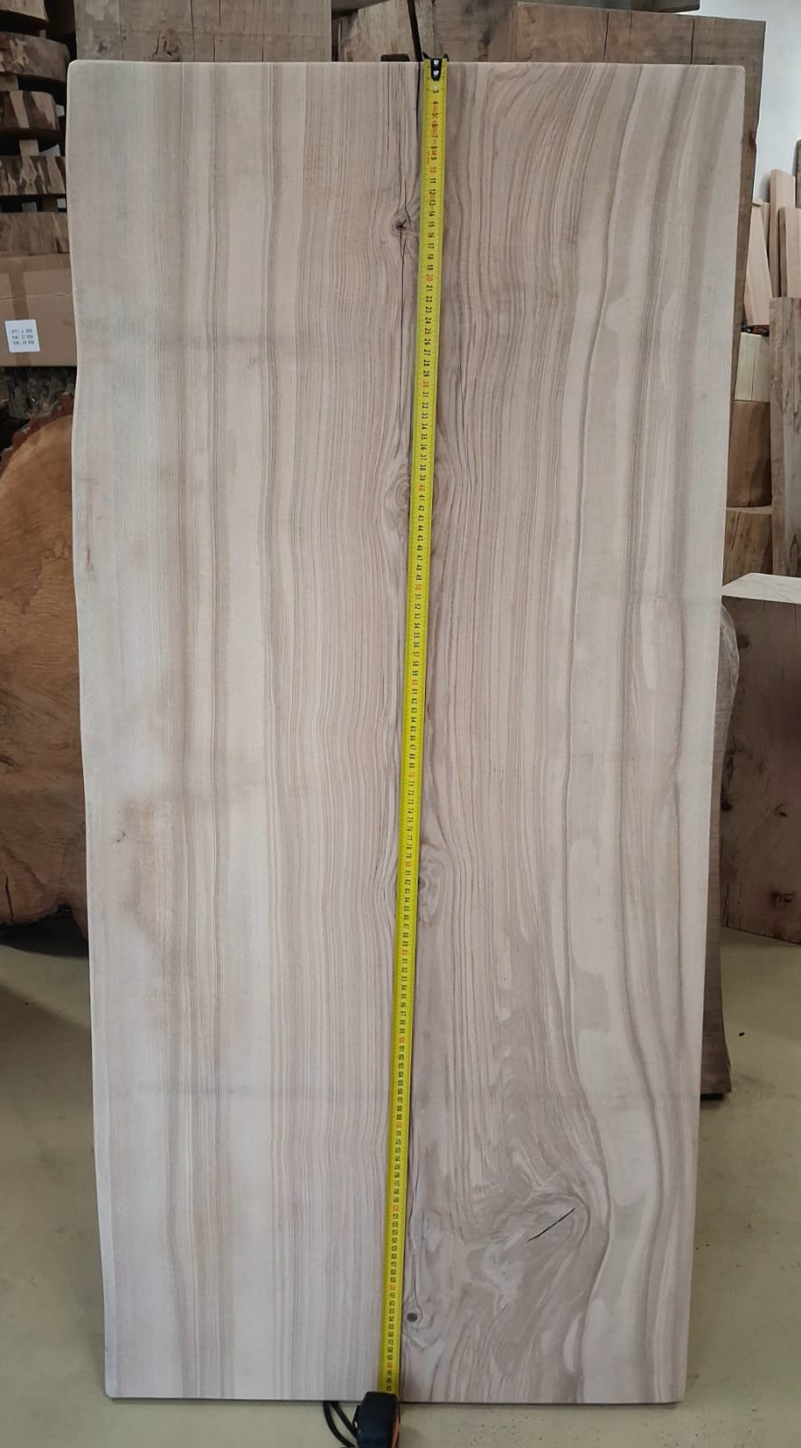 Fošna z jasanu suchá, obroušená. Masivní fošna s přírodními hranami připravená na další využití.