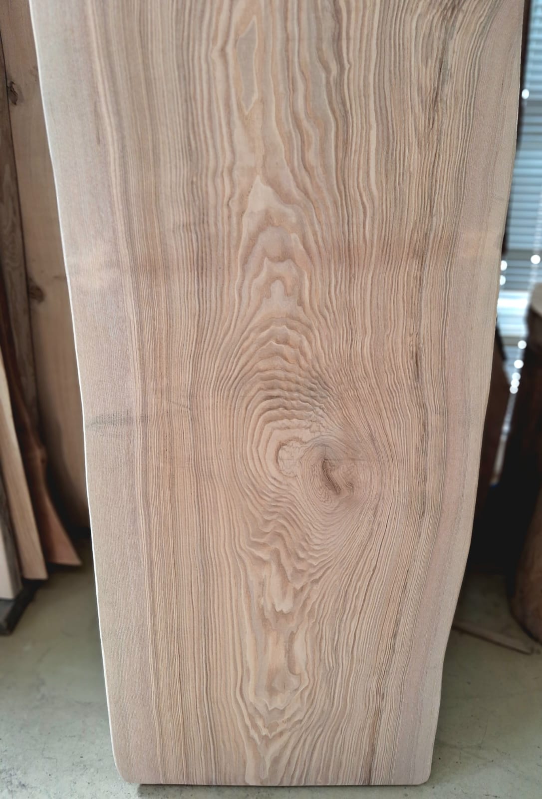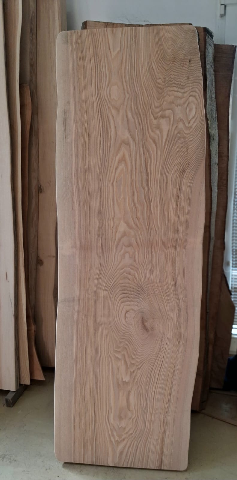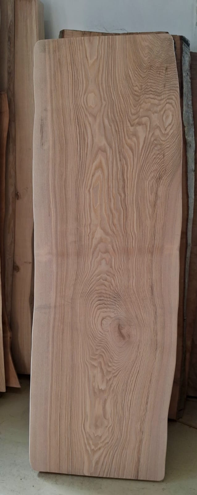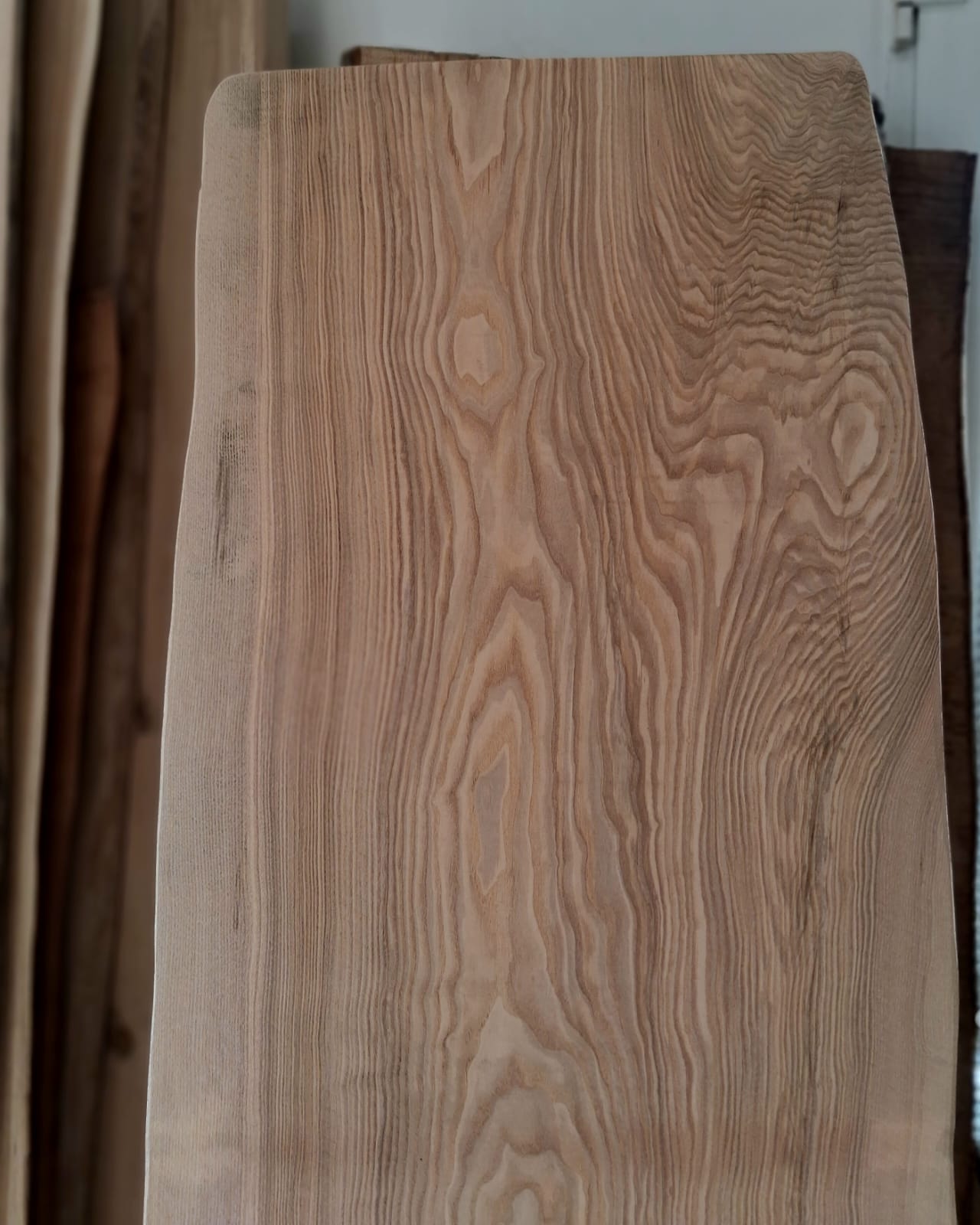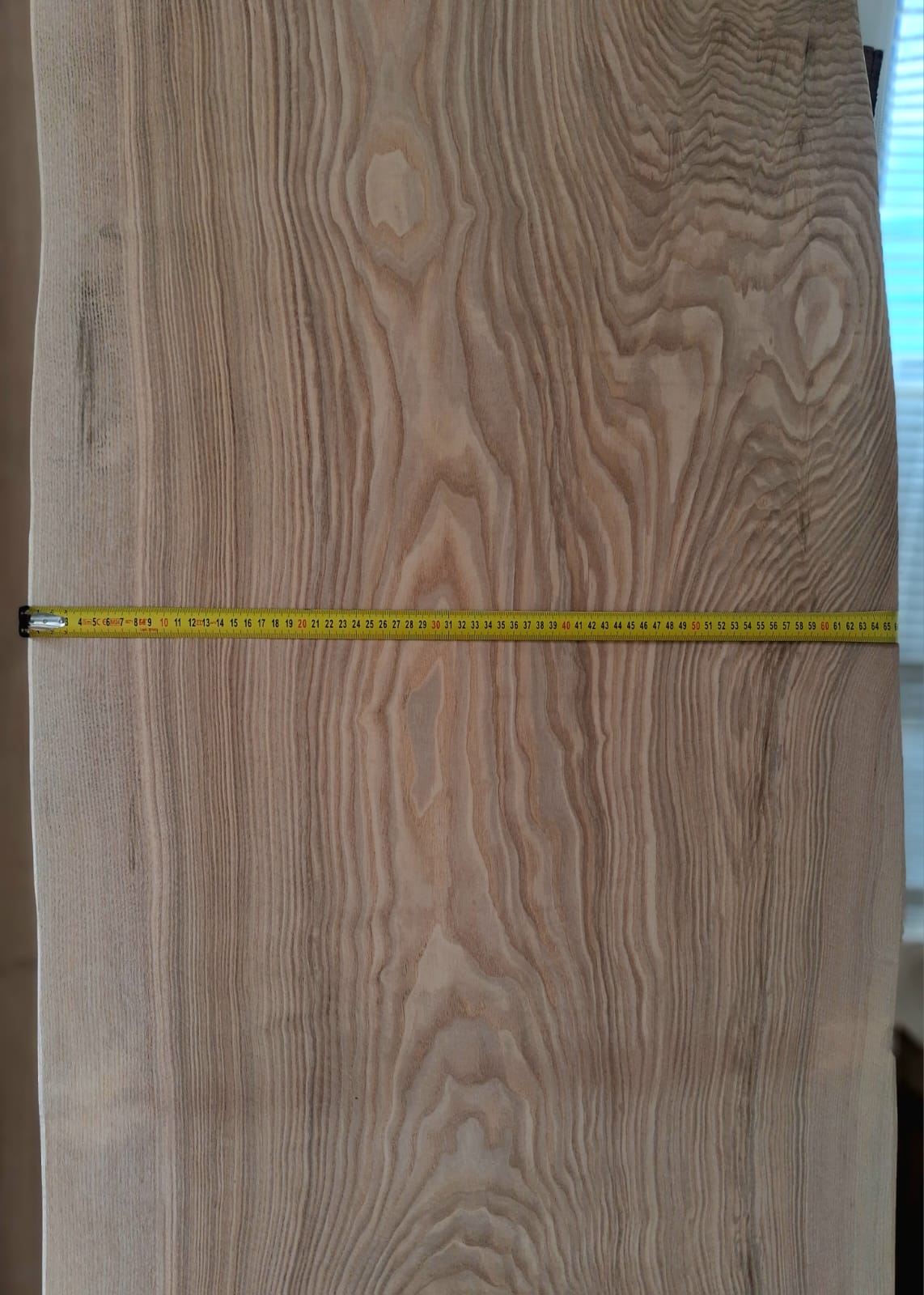 Fošna z jasanu suchá, obroušená. Masivní fošna s přírodními hranami připravená na další využití.