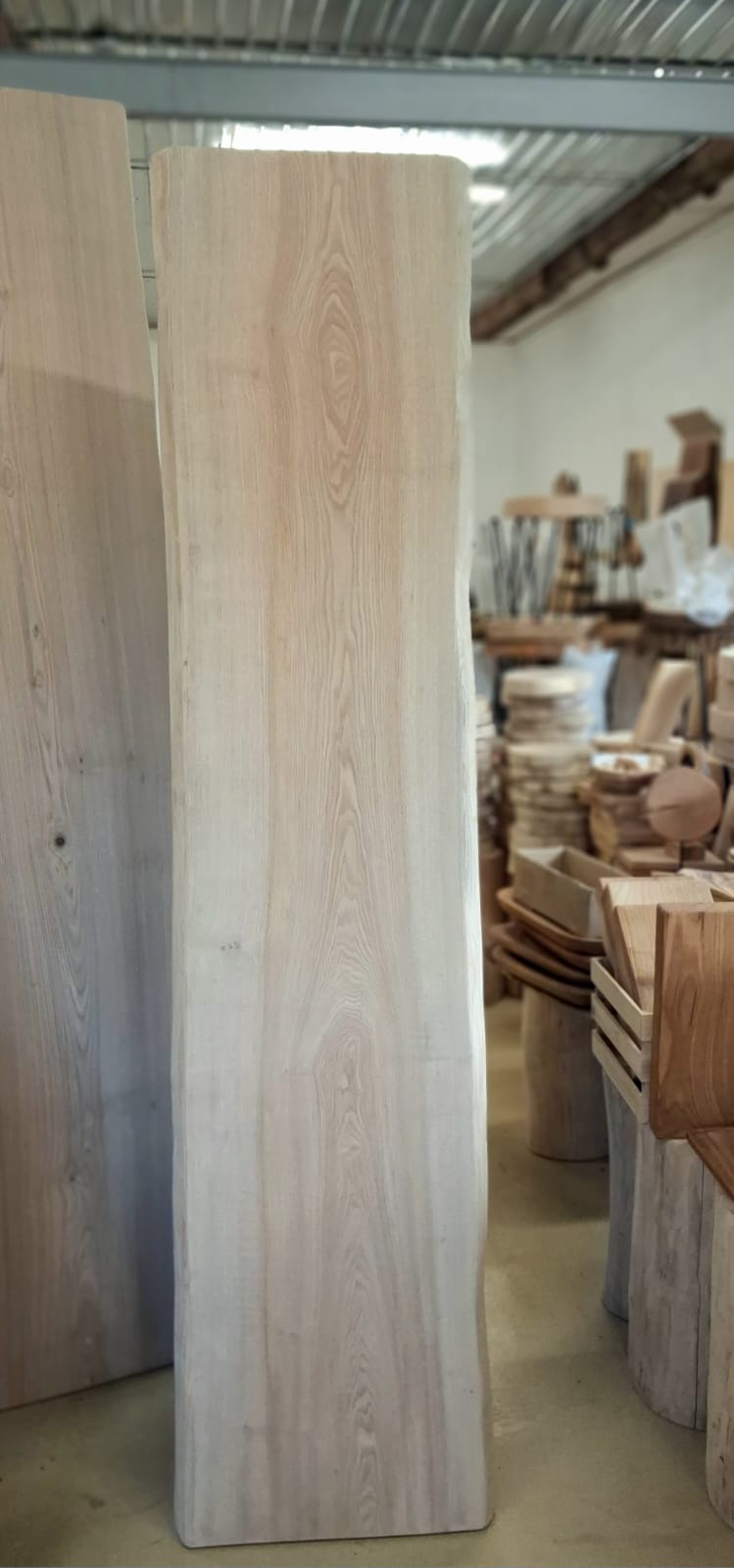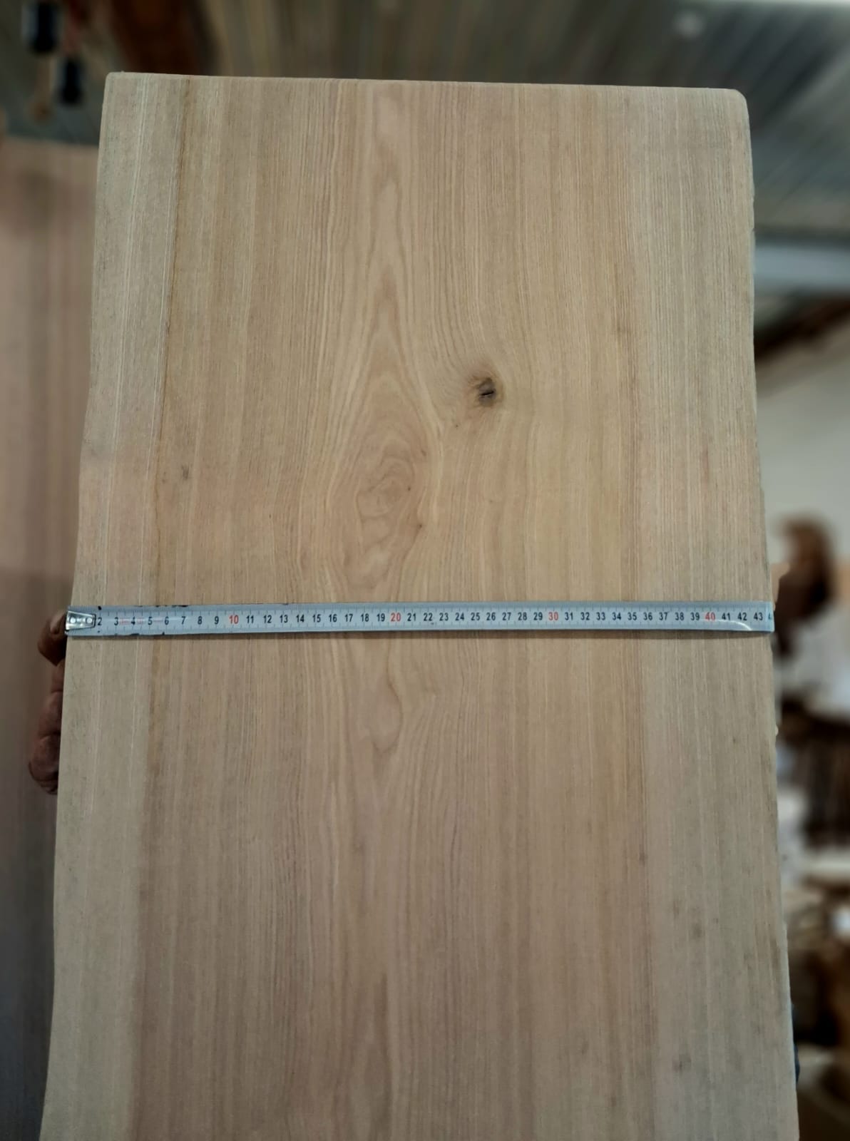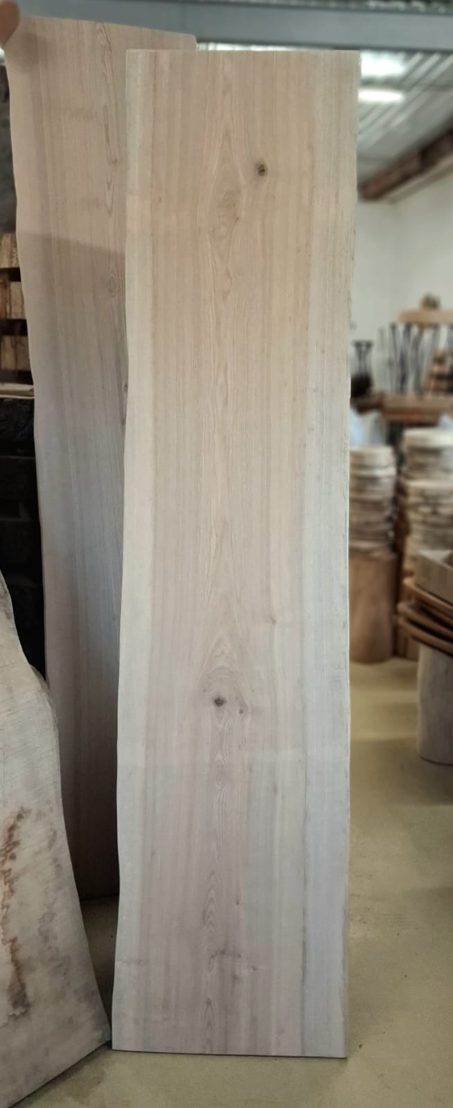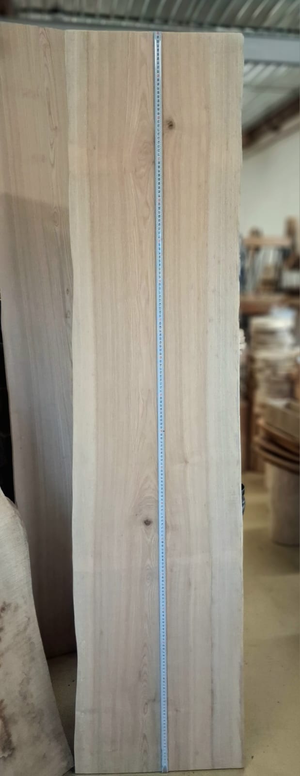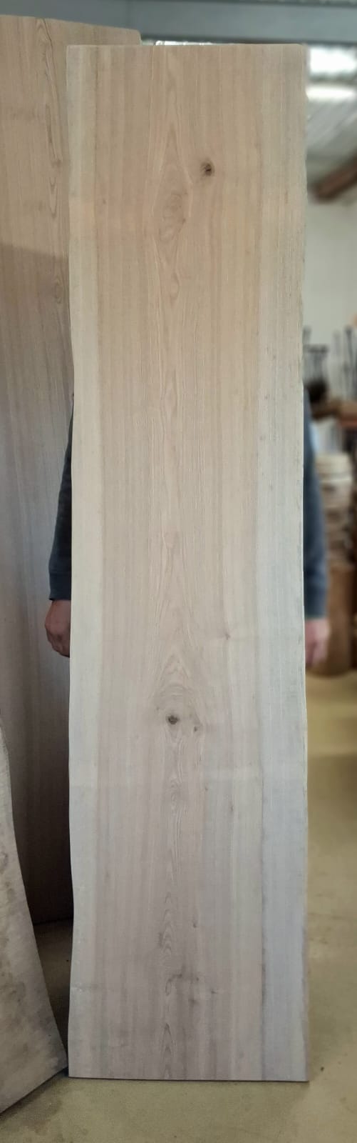 Fošna z jasanu suchá, obroušená. Masivní fošna s přírodními hranami připravená na další využití.