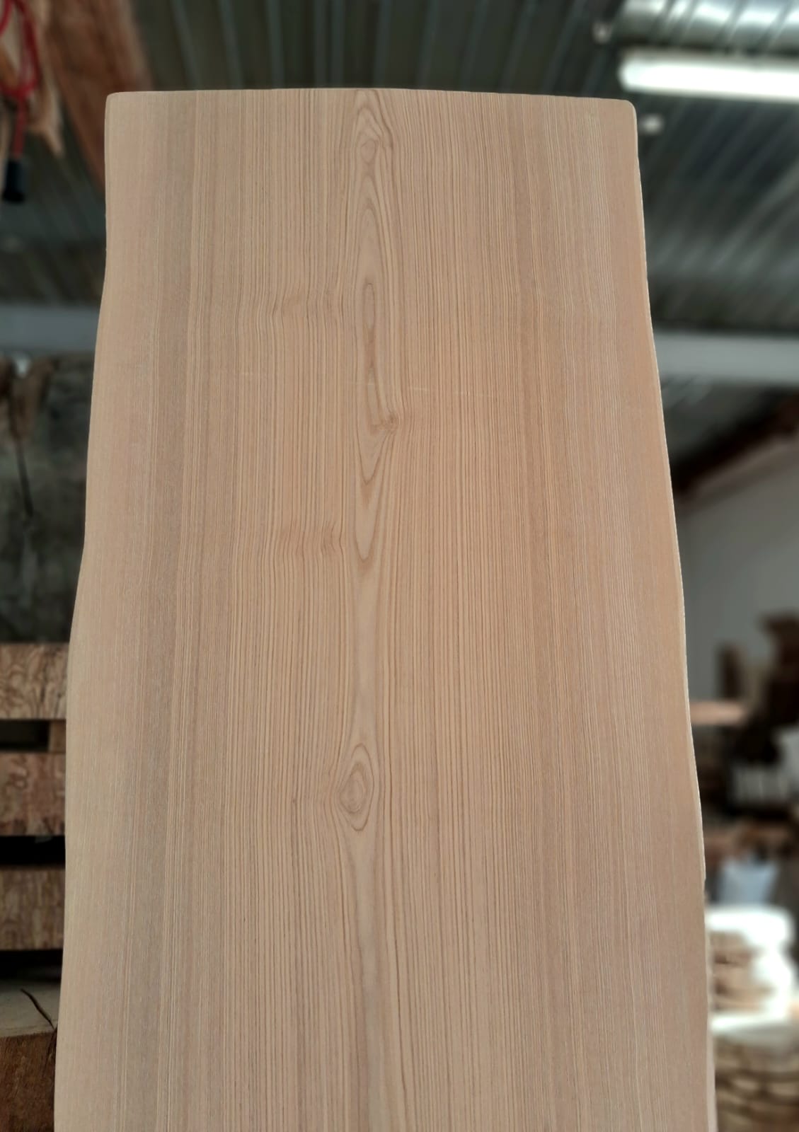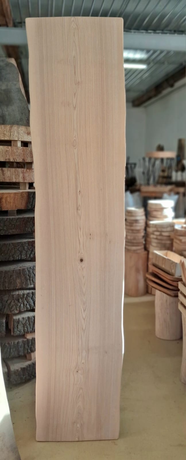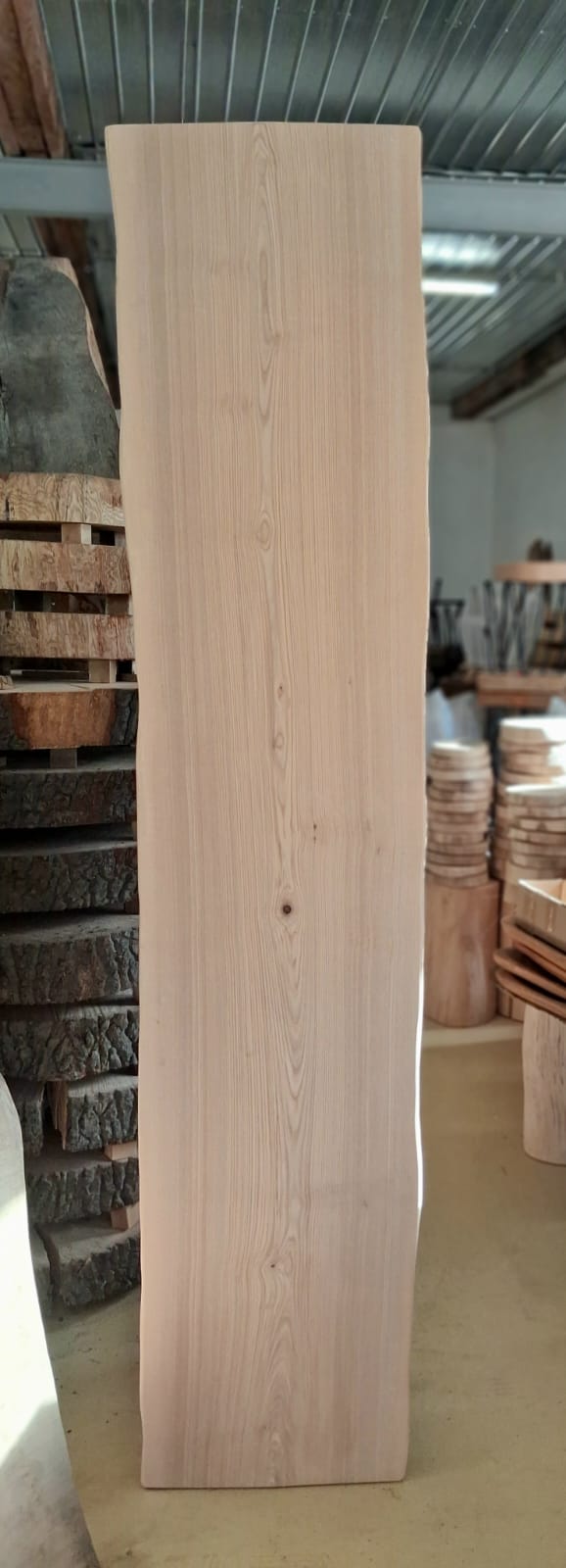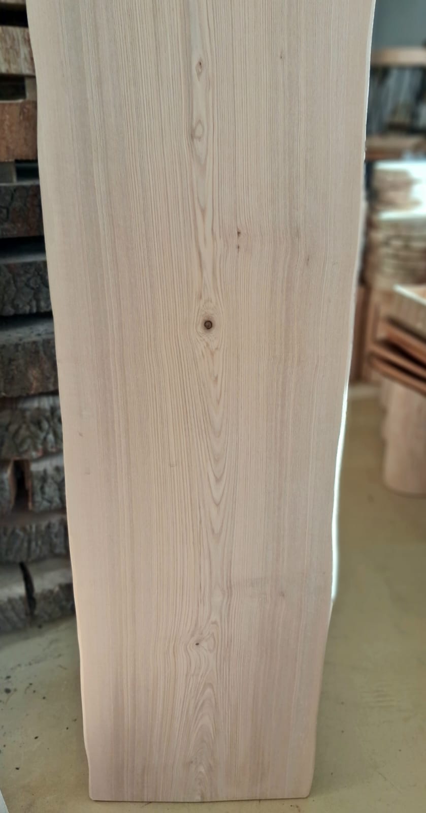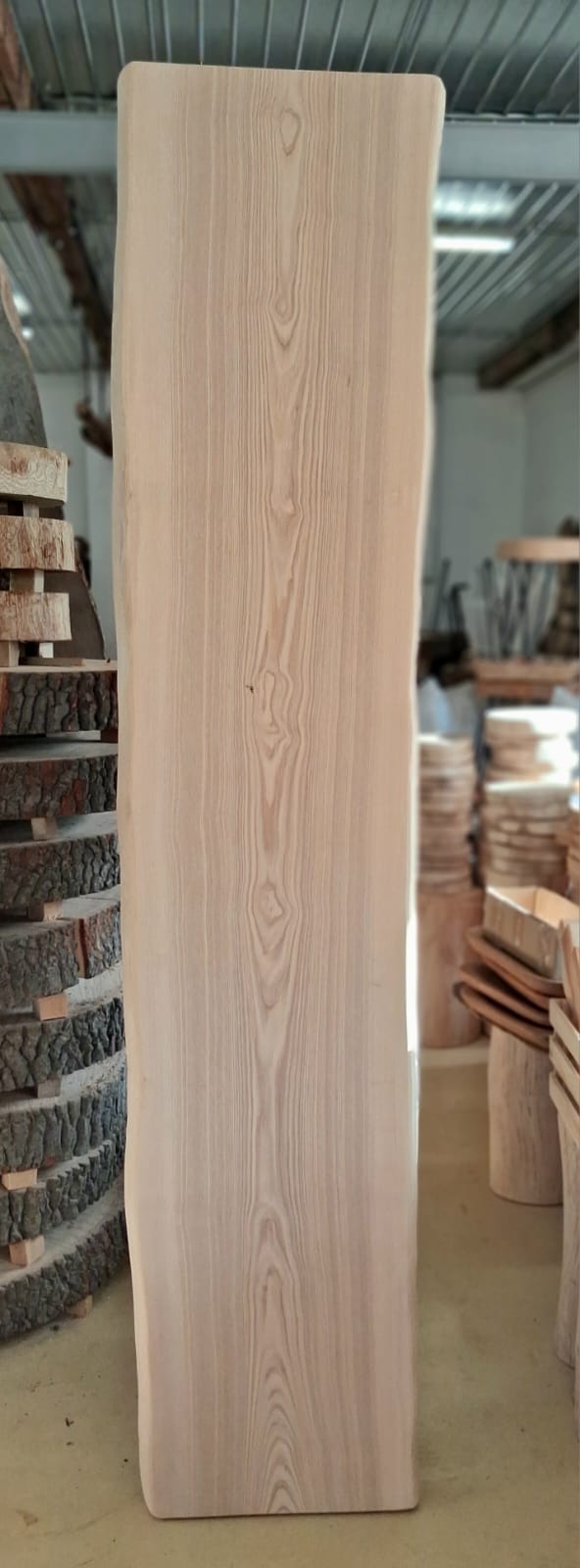Fošna z jasanu suchá, obroušená. Masivní fošna s přírodními hranami připravená na další využití.