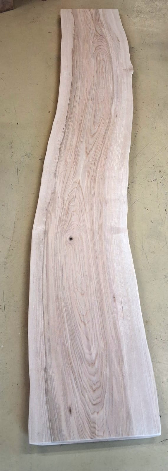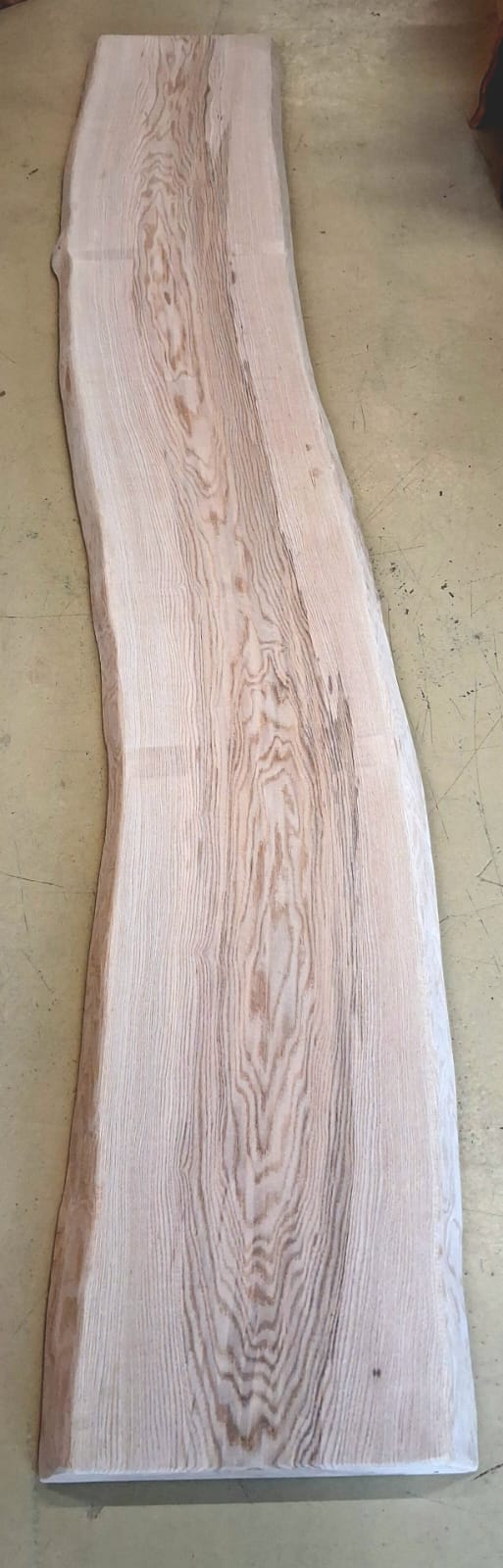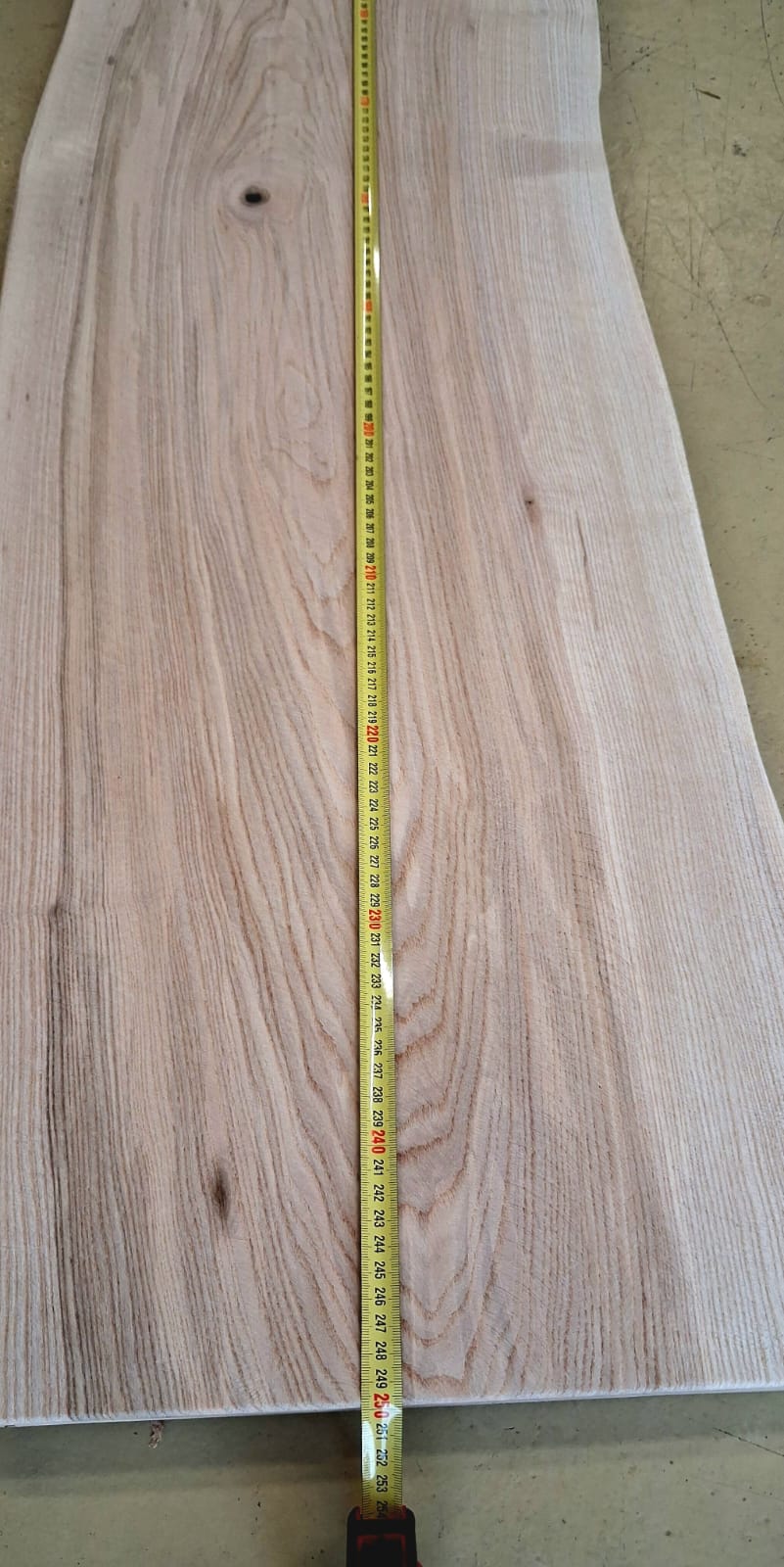 Fošna z jasanu suchá, obroušená. Masivní fošna s přírodními hranami připravená na další využití.