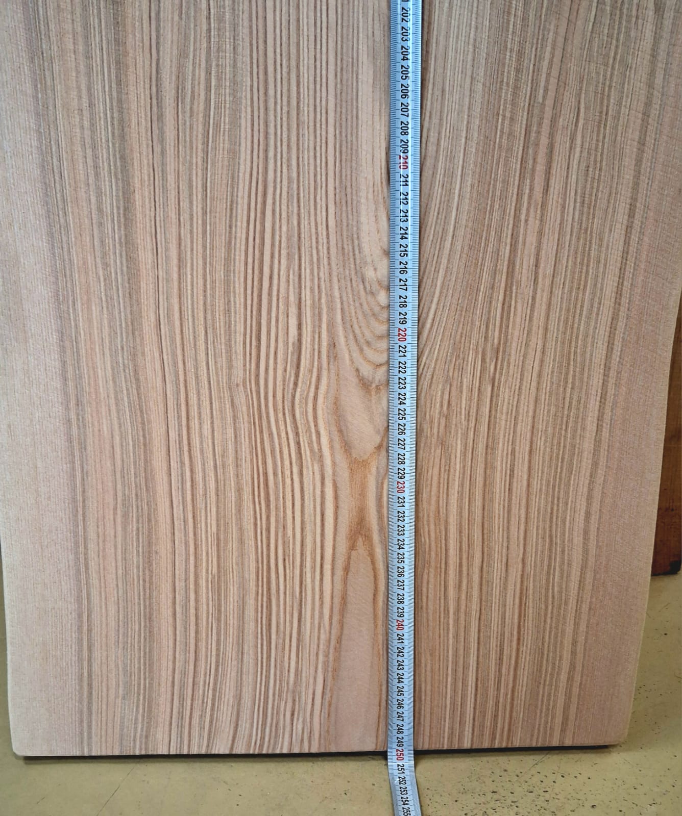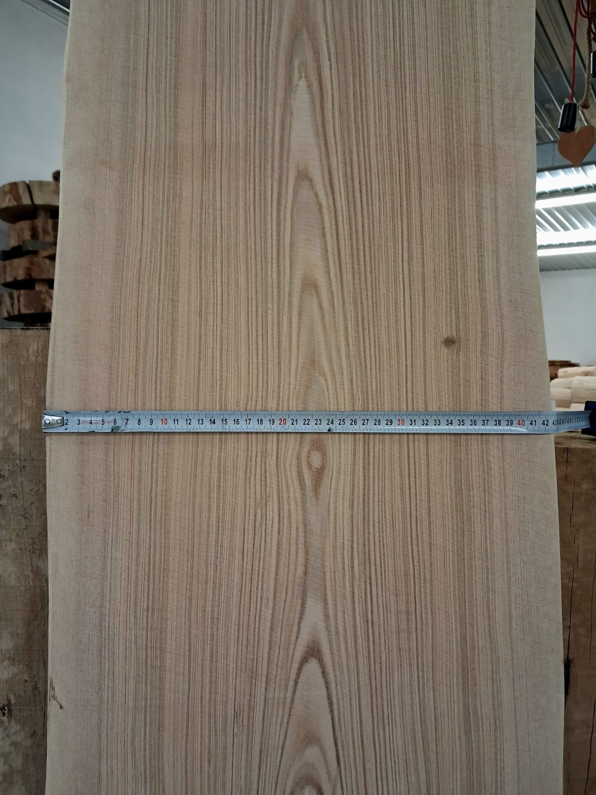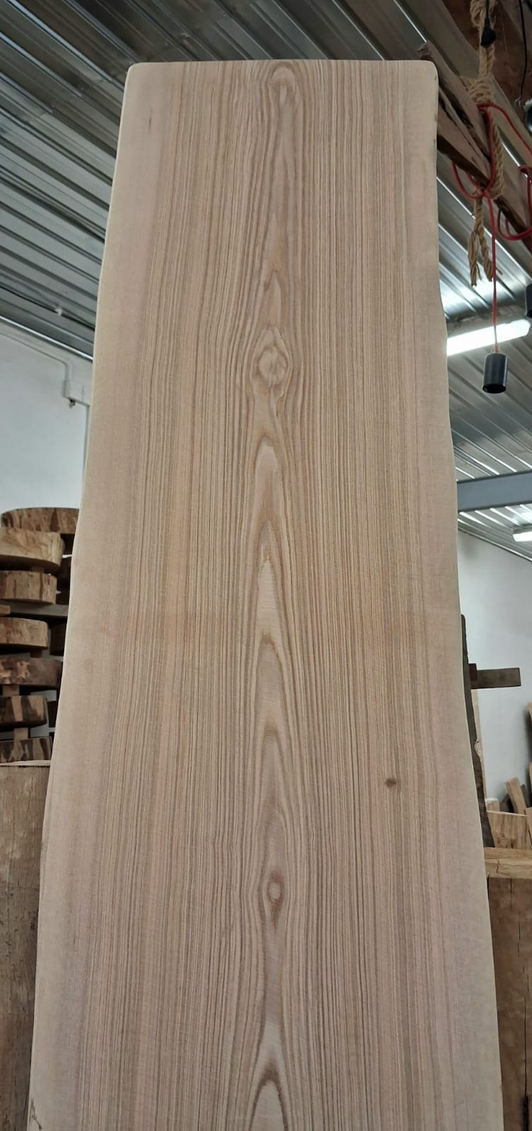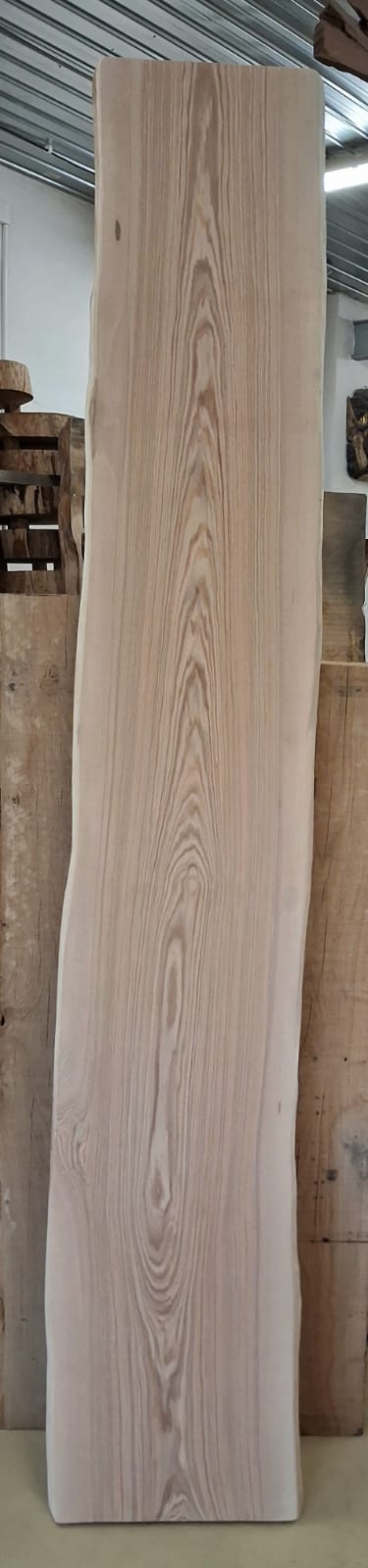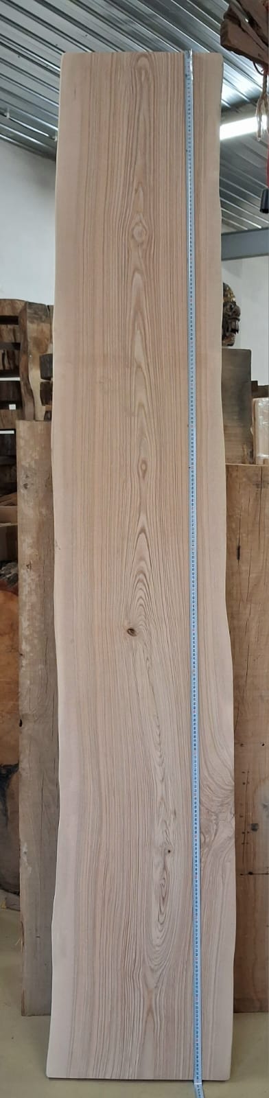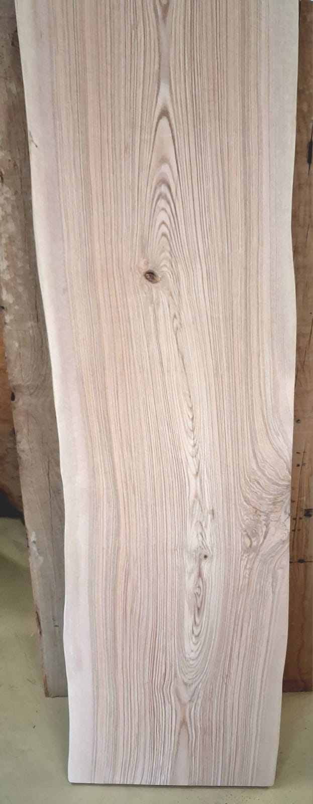 Fošna z jasanu suchá, obroušená. Masivní fošna s přírodními hranami připravená na další využití.
