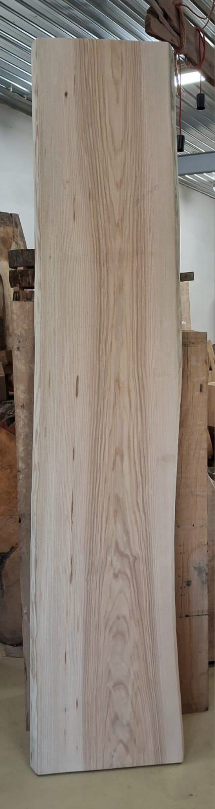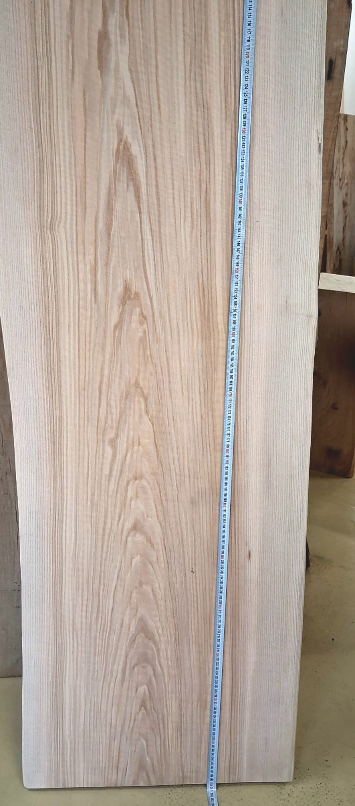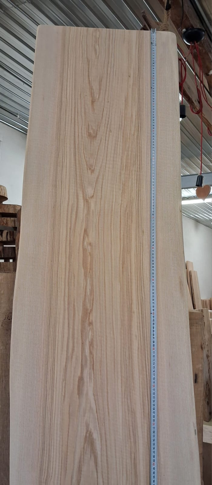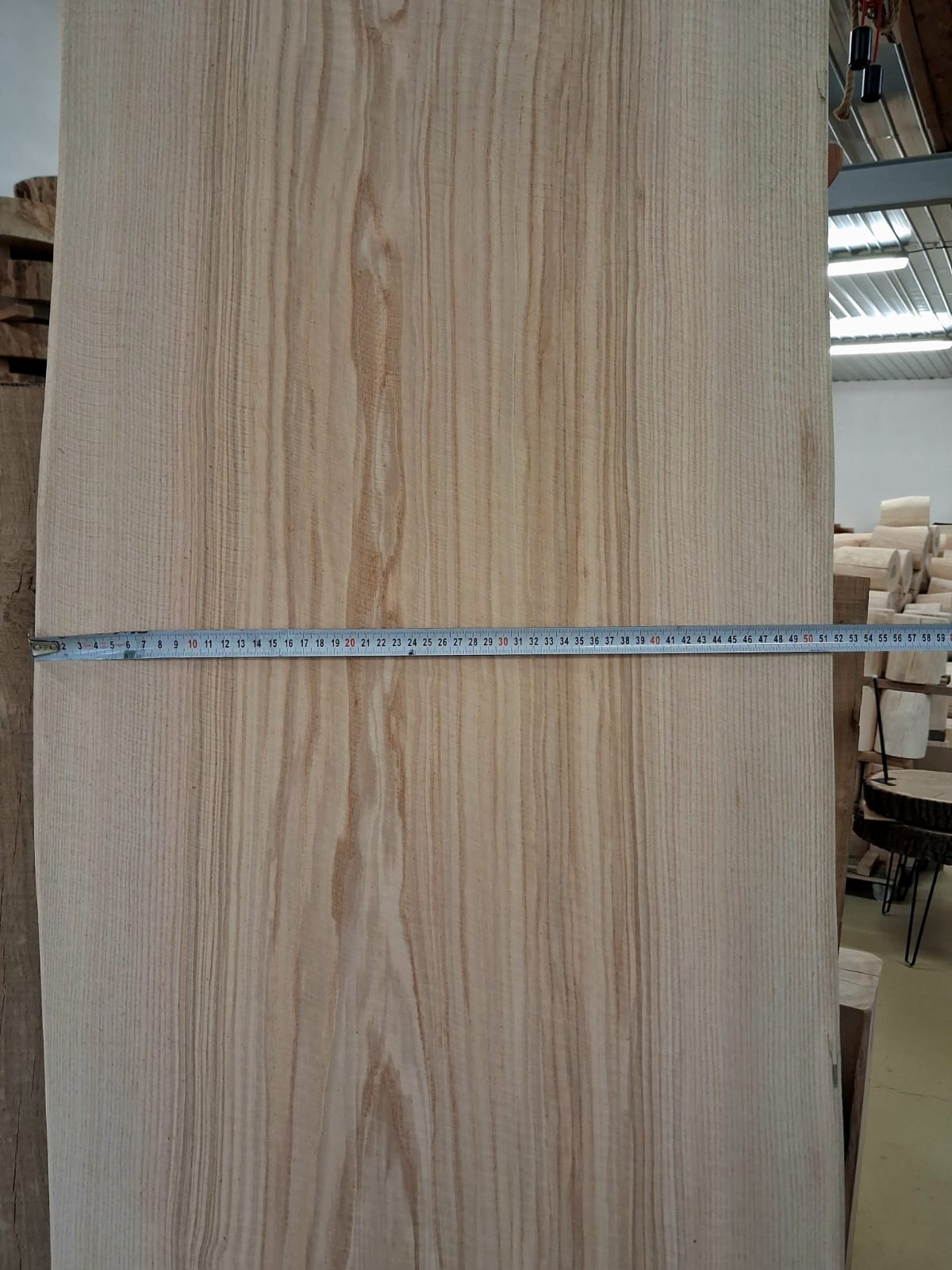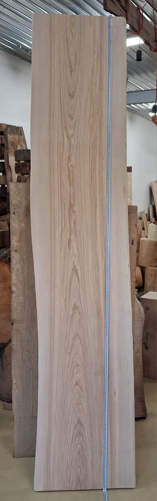 Fošna z jasanu suchá, obroušená. Masivní fošna s přírodními hranami připravená na další využití.