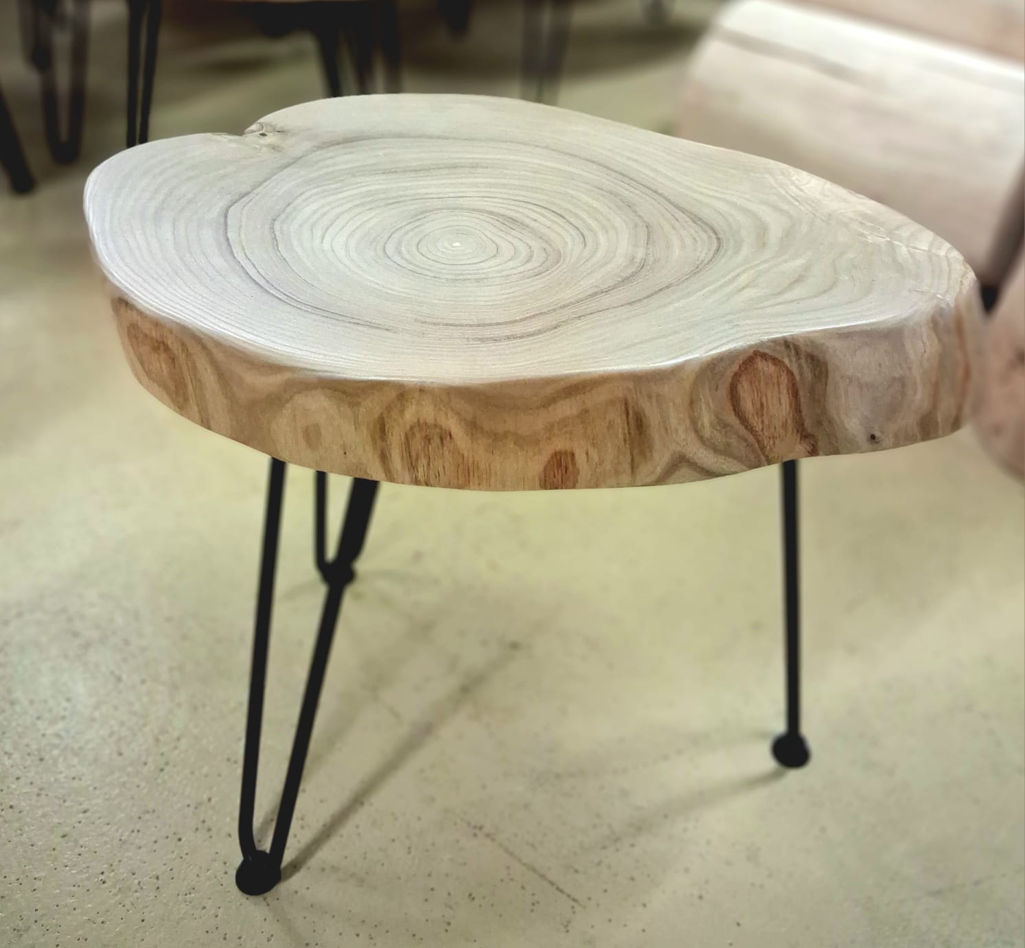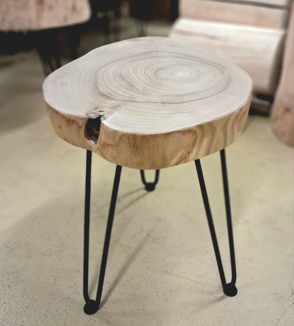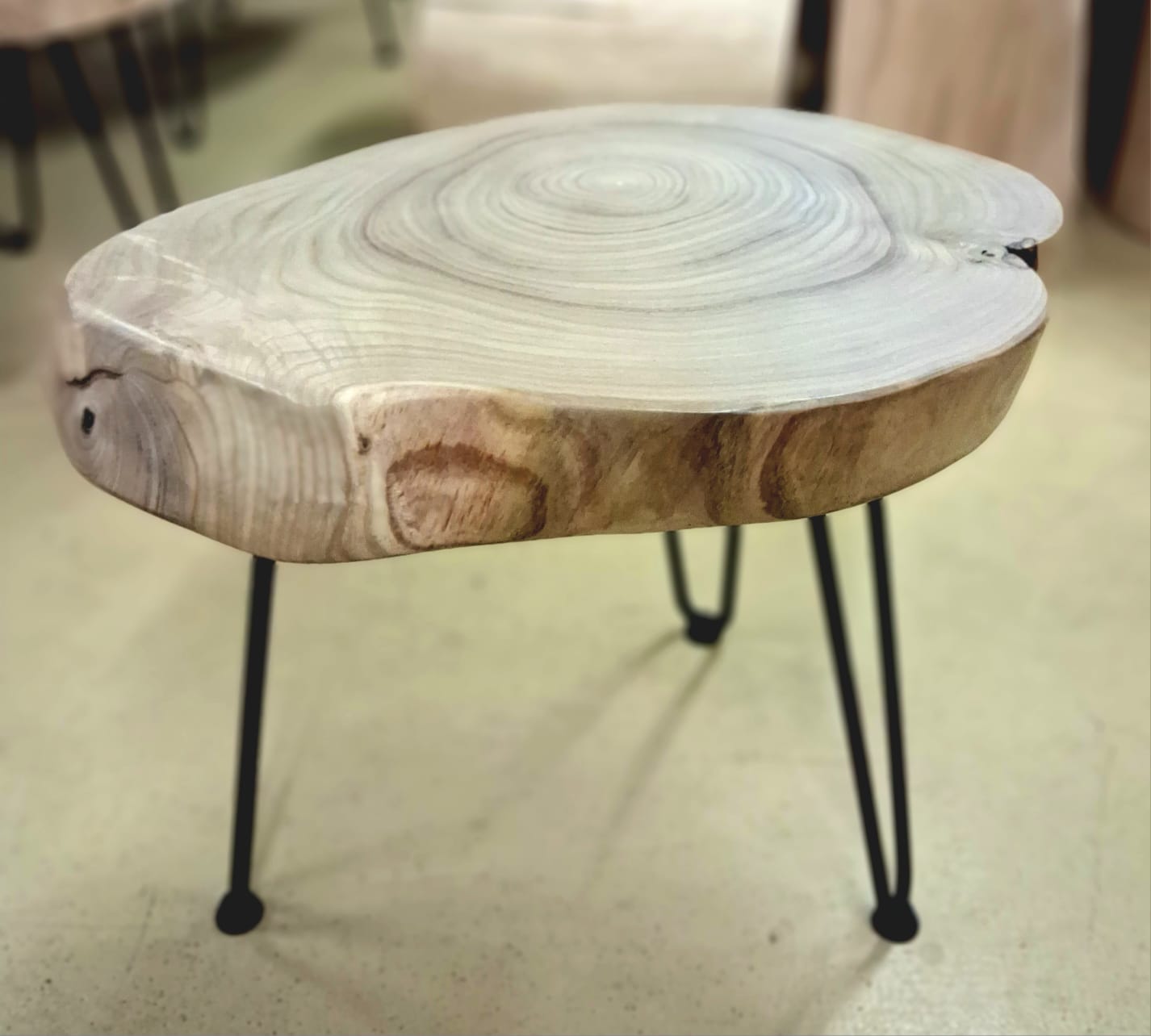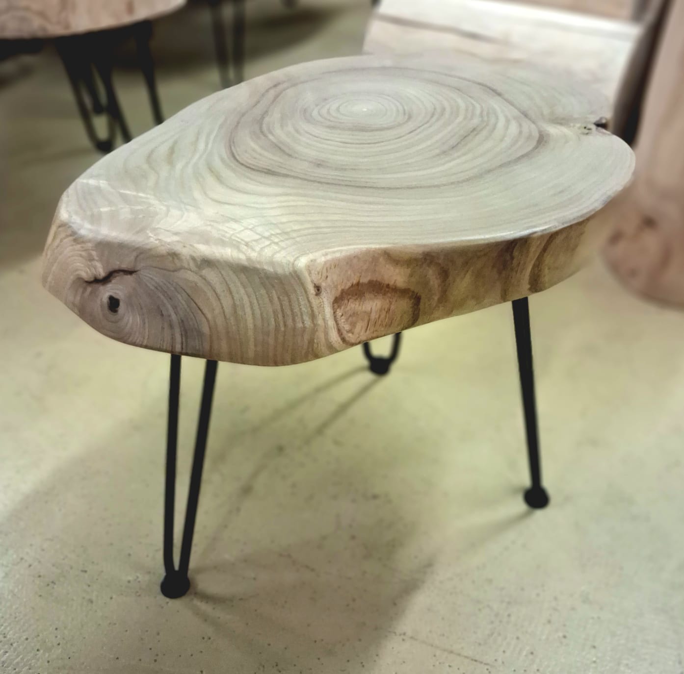 Stolek vyrobený z výjimečného katalpového dřeva. Jedná se o příčný řez katalpou trubačovitou. Ručně broušený koláč je ponechaný v originálním tvaru původního stromu včetně pečlivě zafixované kůry. Dřevo katalpy má netradiční hypnotickou kresbu a je v Evropě naprosto unikátní. V ČR lze katalpu nalézt pouze v parcích. Domovem této dřeviny je především Hawai, kde se její dřevo používá na stavbu lodí.