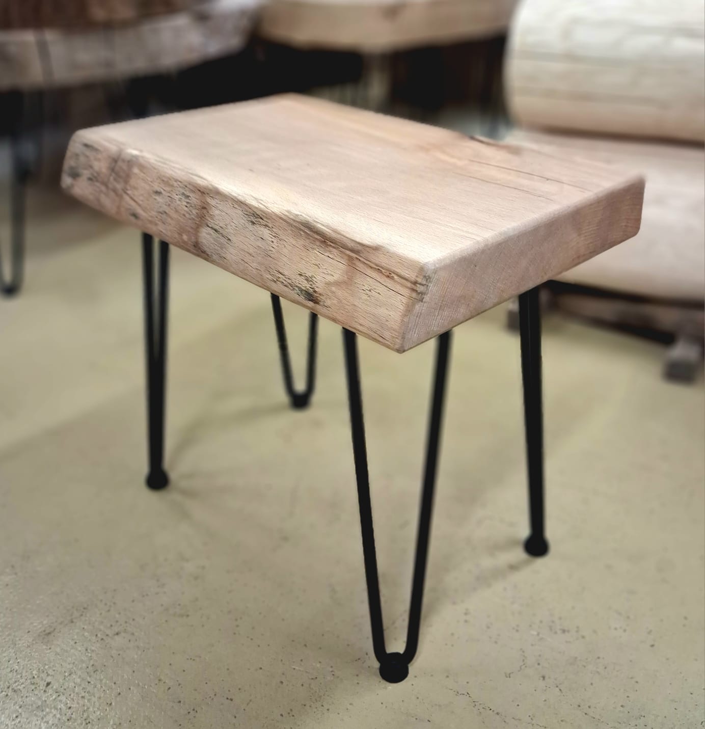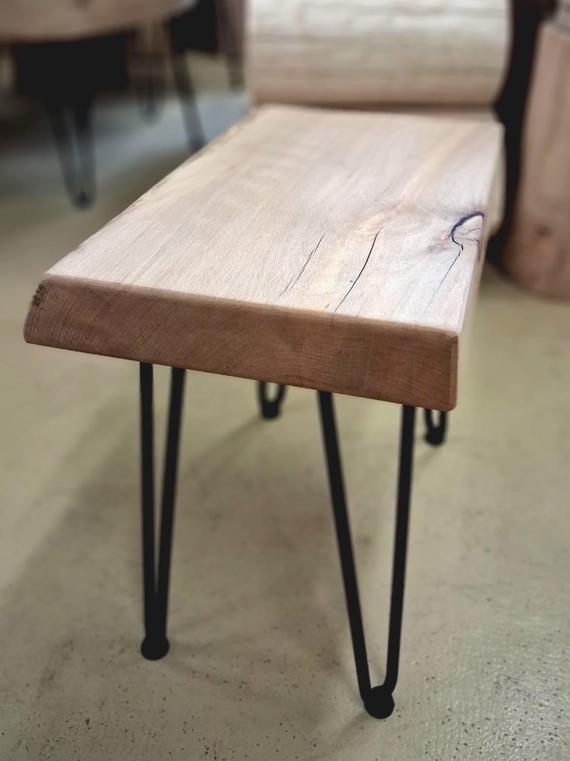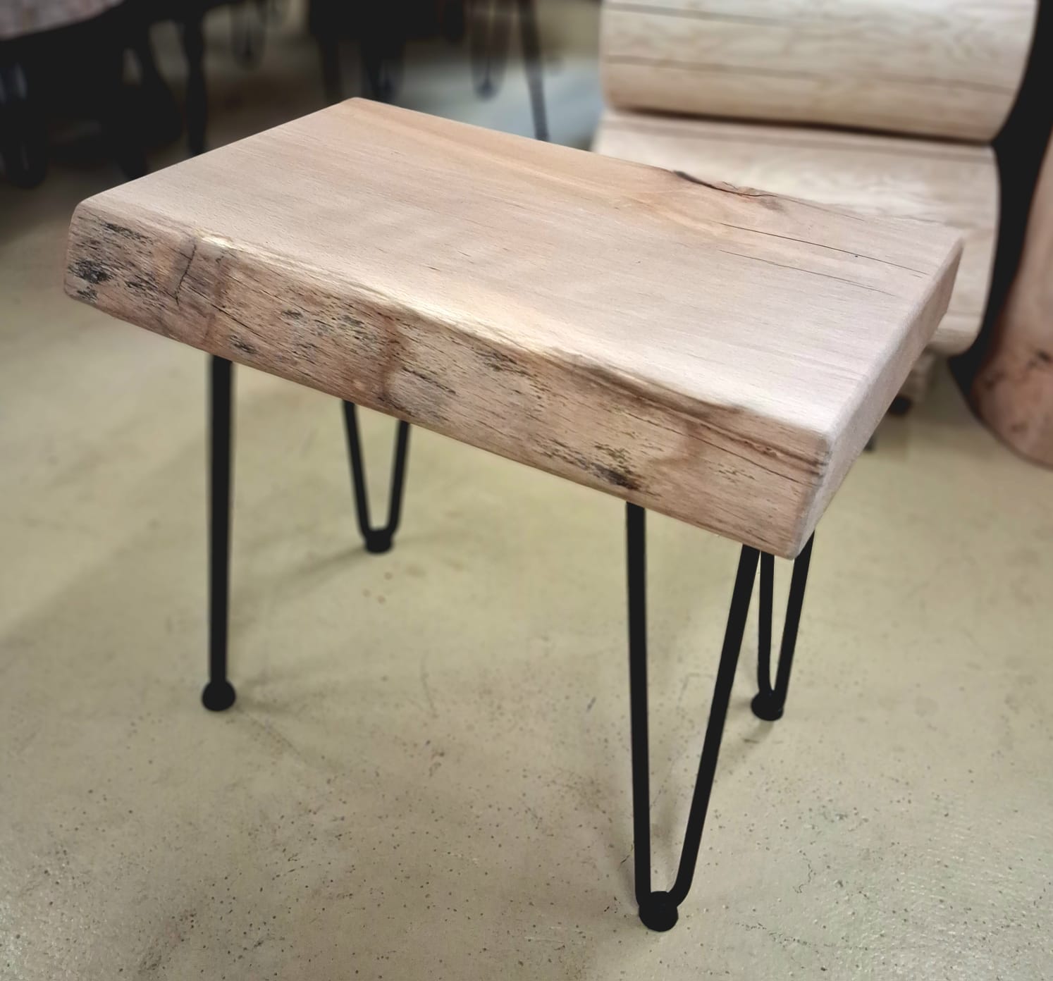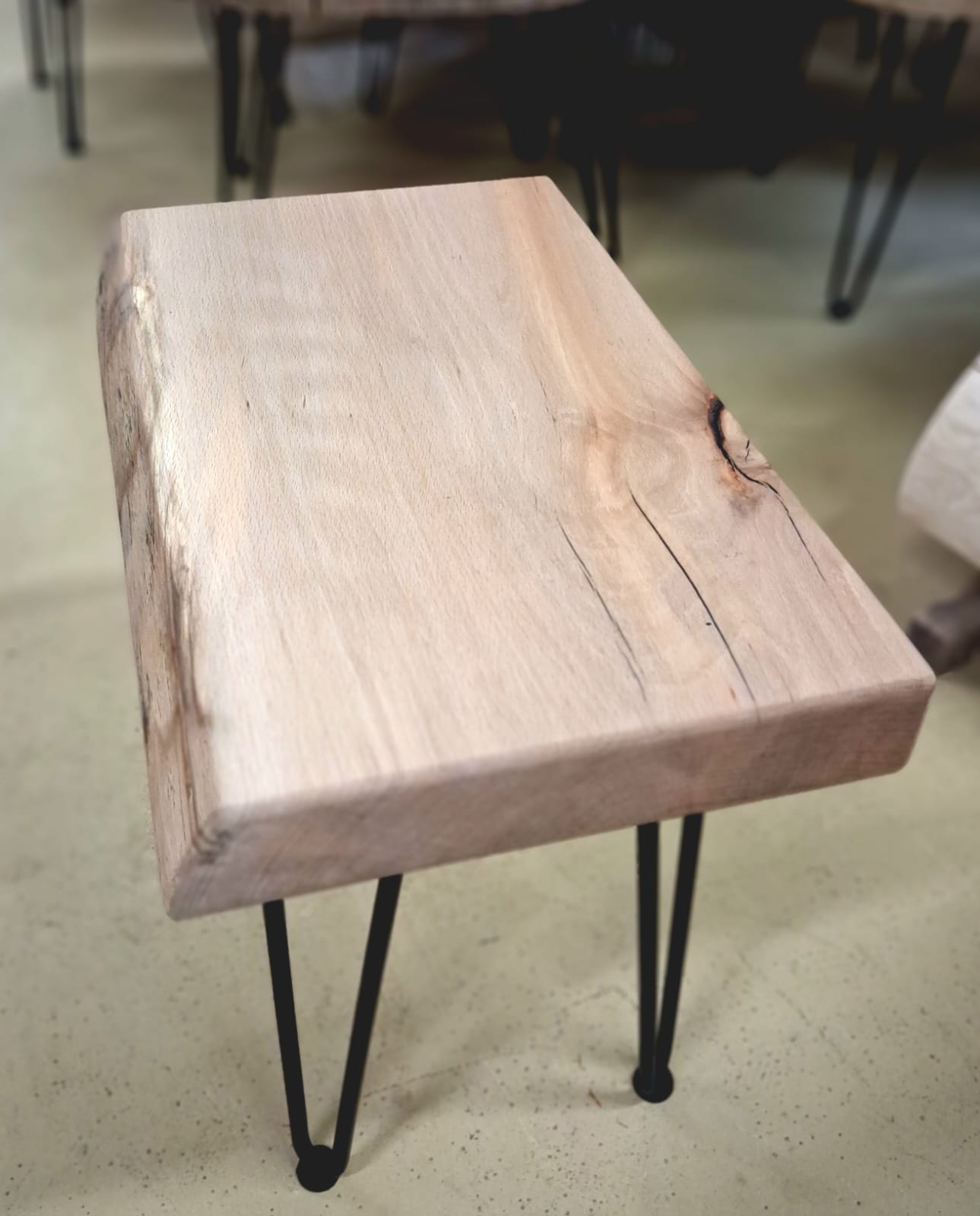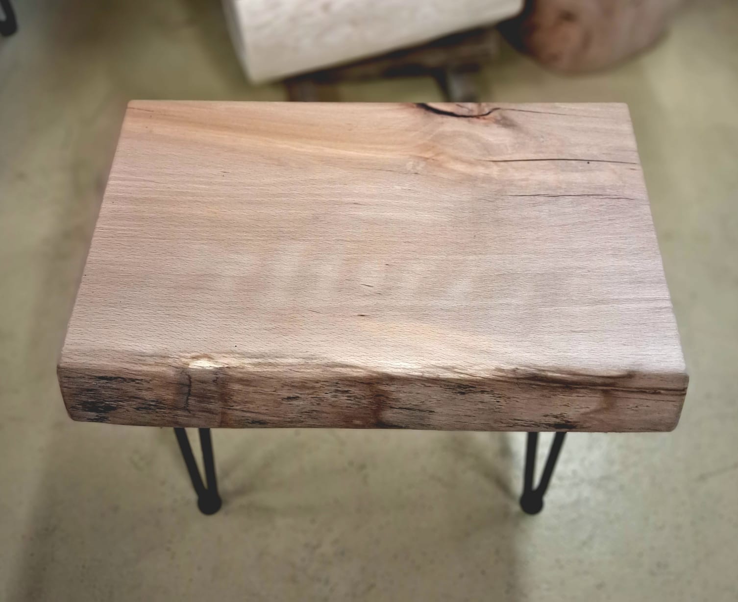 Bukový stolek s kovovými nohami