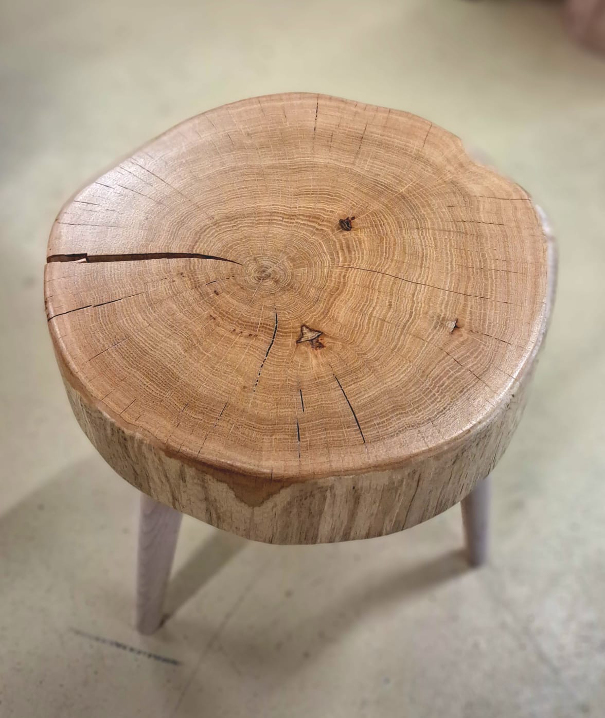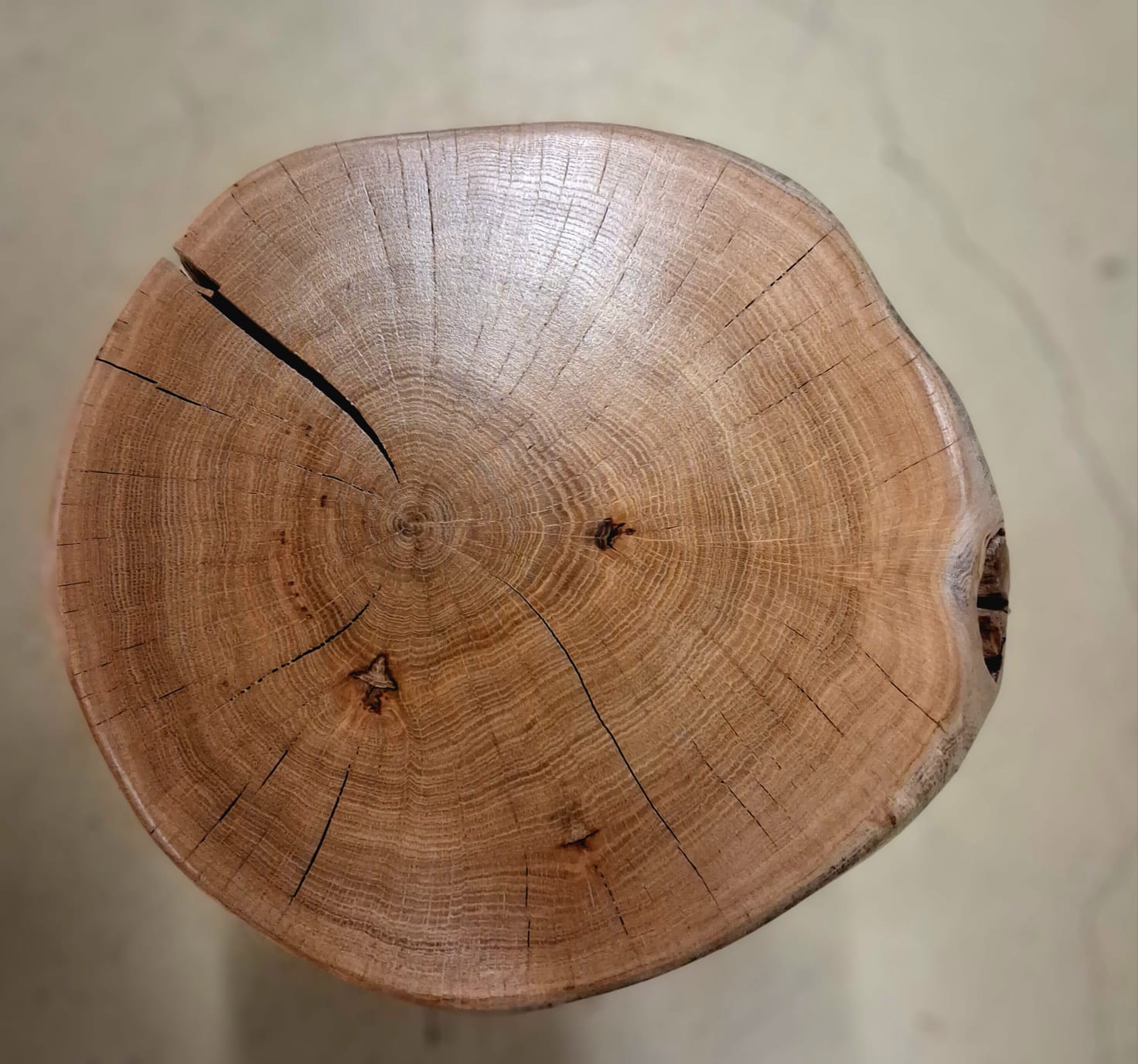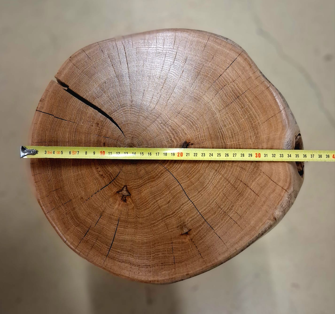 Stolek vyrobený z vybraného dubového dřeva. Jedná se o klasický příčný řez českým dubem zimním. Ručně broušený koláč je ponechaný v původním přírodním tvaru stromu. Dřevo je pečlivě ošetřené ekologickým ochranným nátěrem pro dlouhou životnost a zvýraznění kresby.