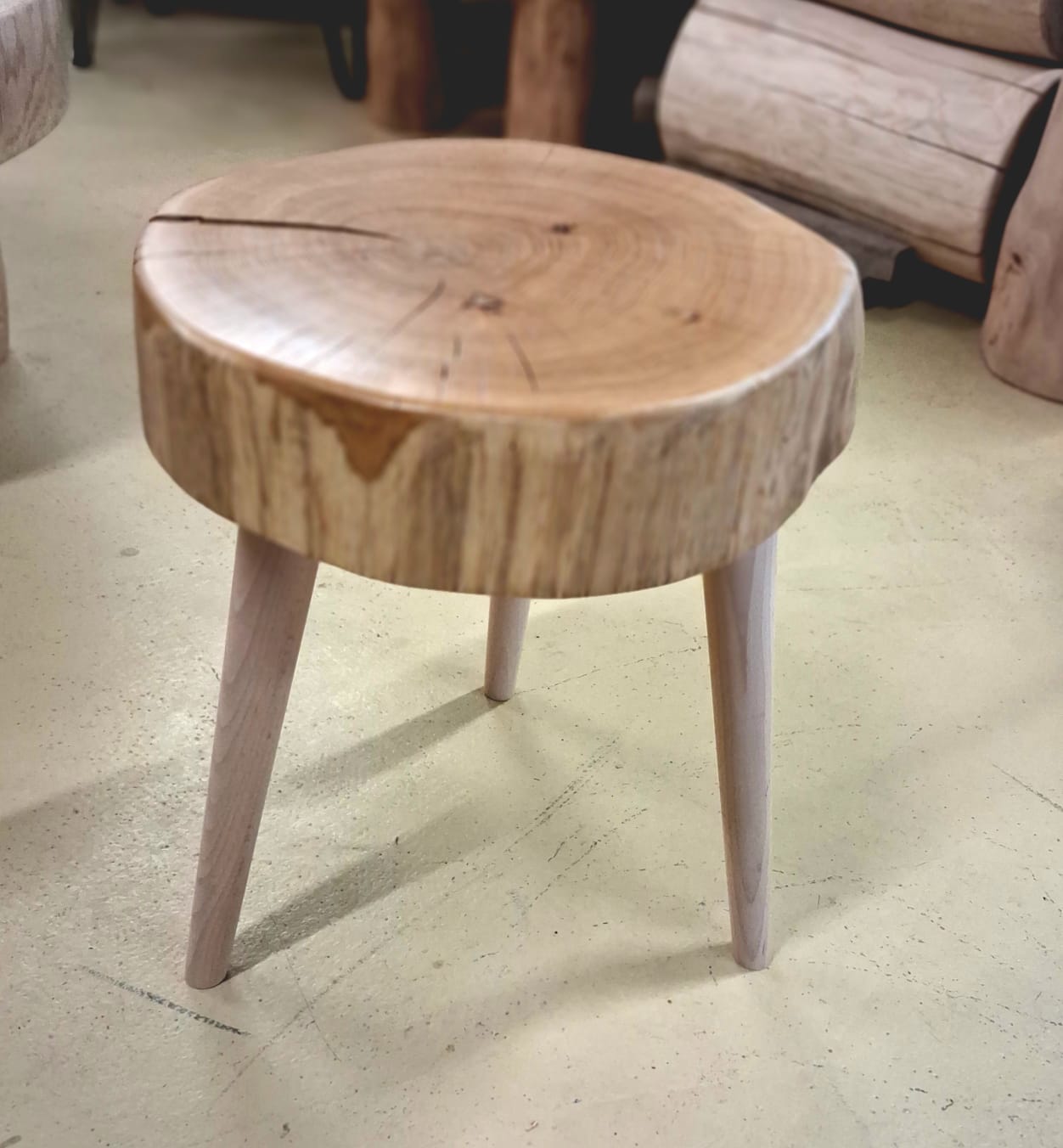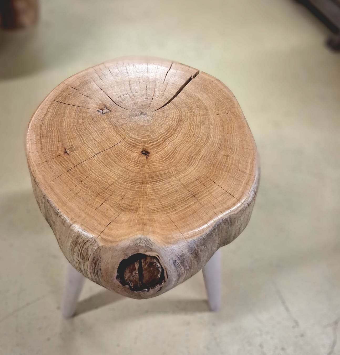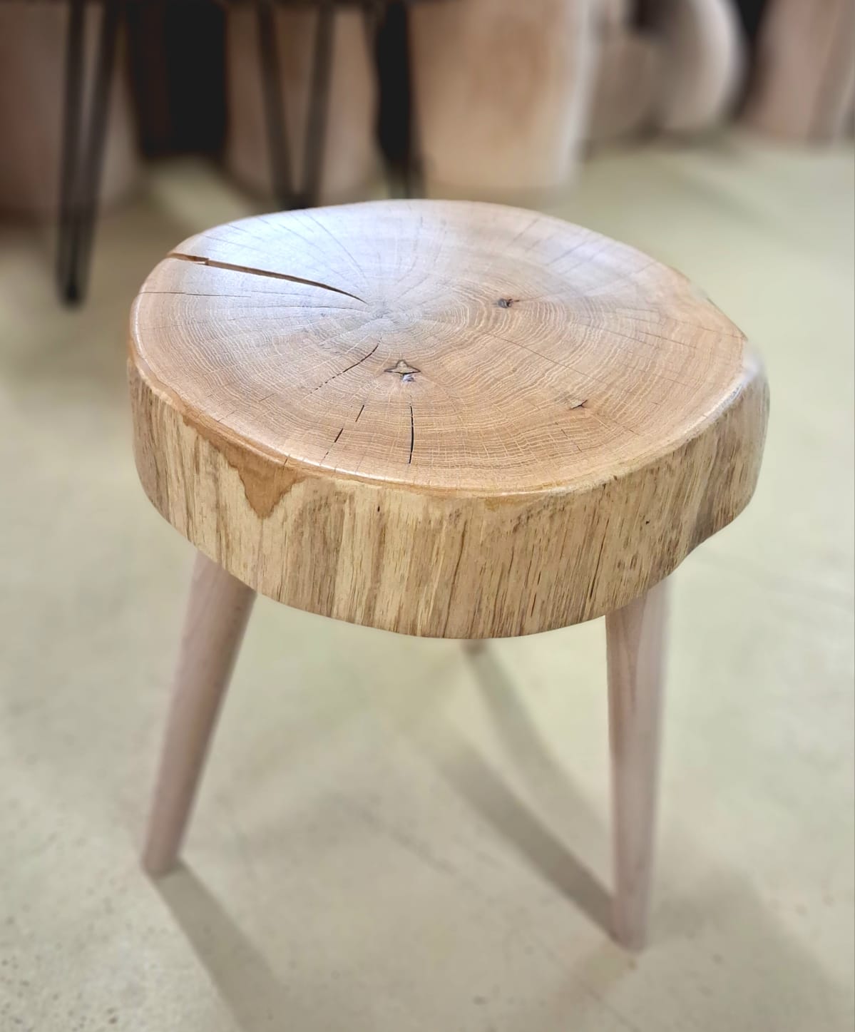 Stolek vyrobený z vybraného dubového dřeva. Jedná se o klasický příčný řez českým dubem zimním. Ručně broušený koláč je ponechaný v původním přírodním tvaru stromu. Dřevo je pečlivě ošetřené ekologickým ochranným nátěrem pro dlouhou životnost a zvýraznění kresby.