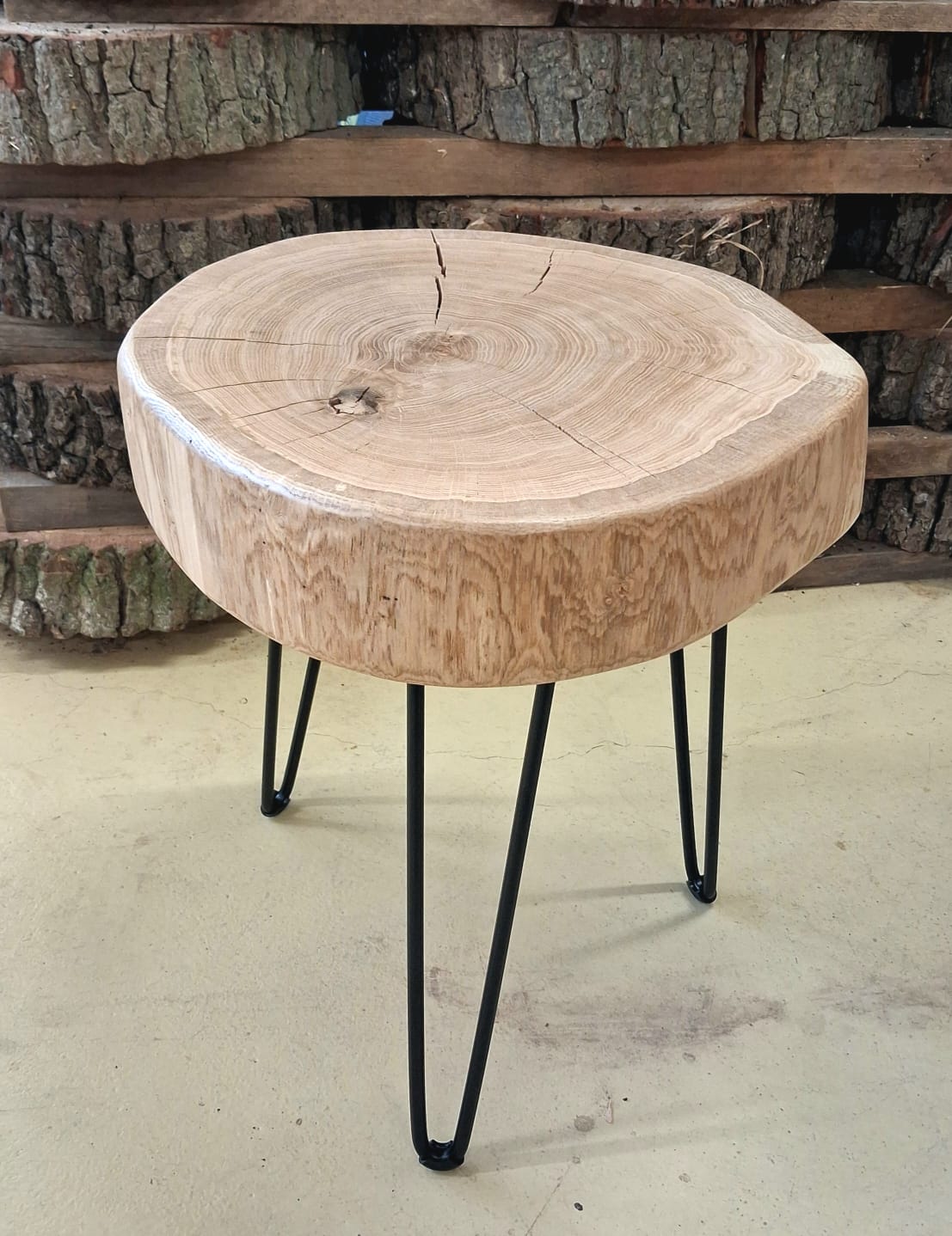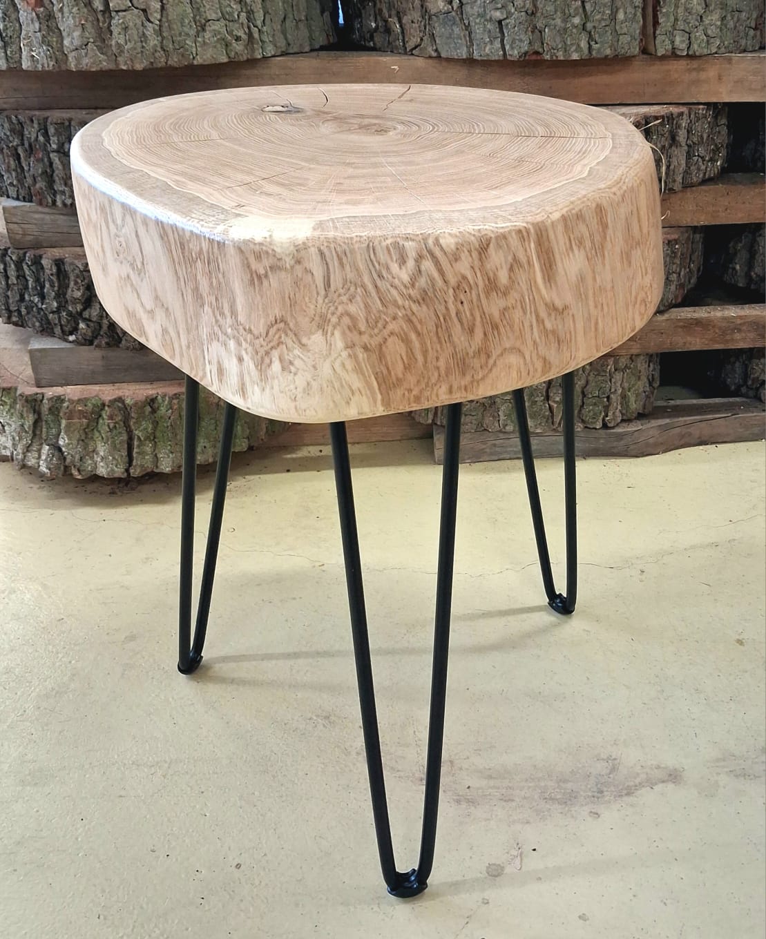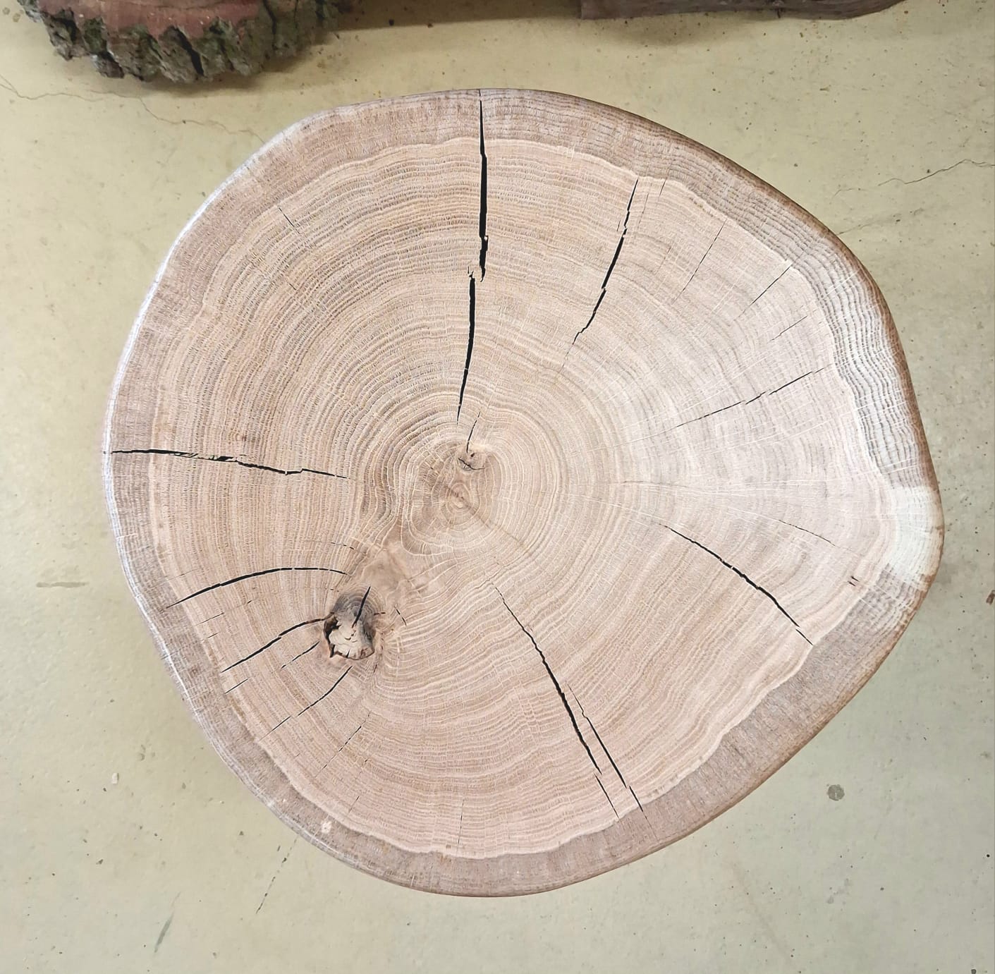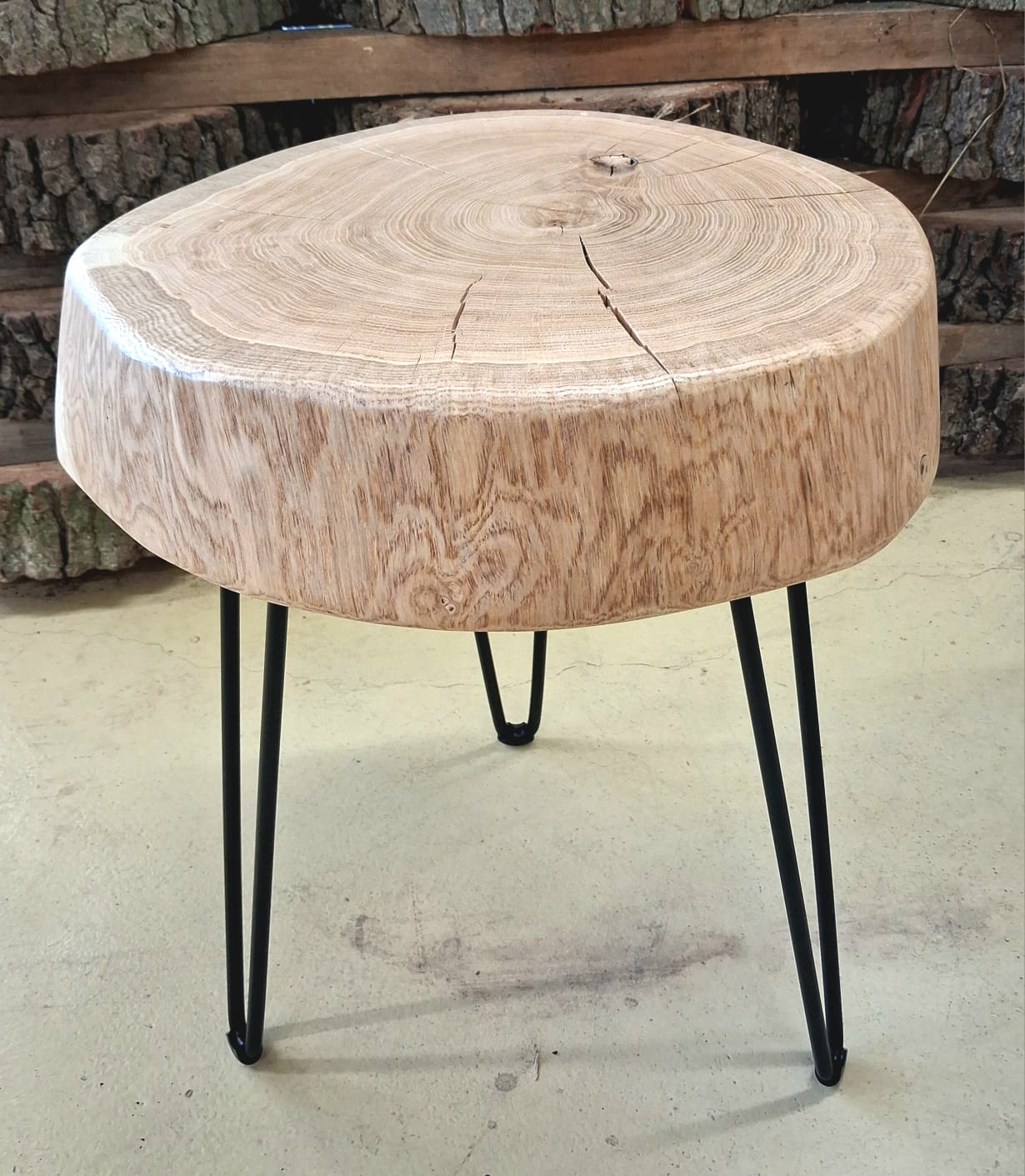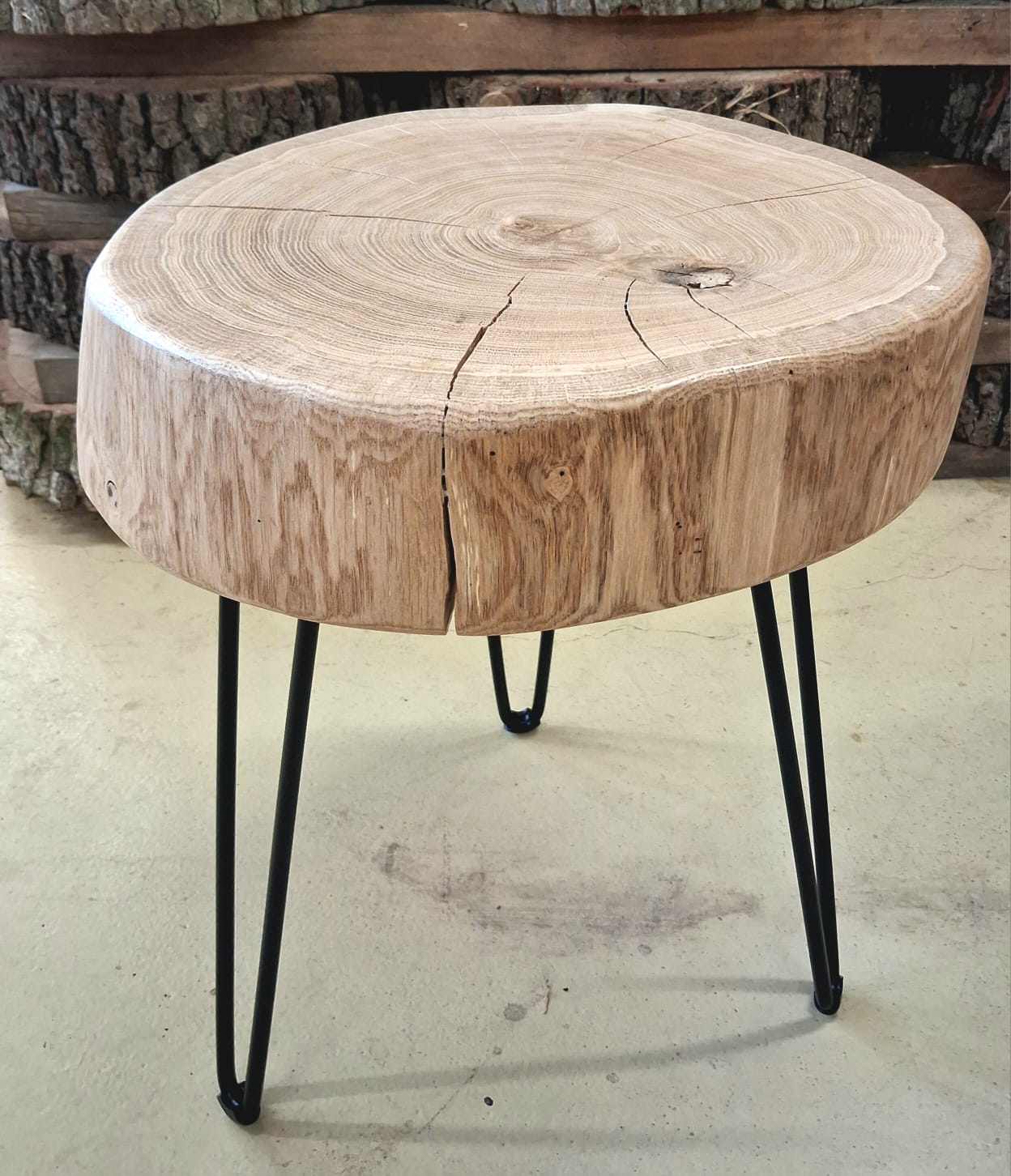 Elegantní a poctivý kousek přírody. Tento stolek je vyrobený z masivního dubu zimního a zpracován formou příčného řezu, díky kterému vyniká kresba letokruhů i přirozený tvar stromu. Povrch je ručně broušený a je chráněn ekologickým nátěrem, který zvýrazňuje barvu i strukturu dřeva.
