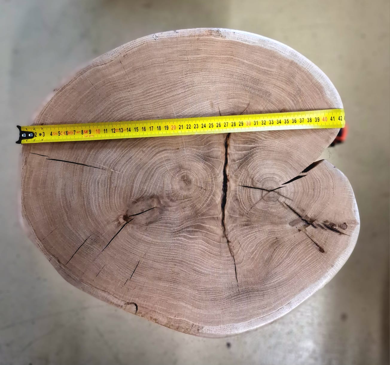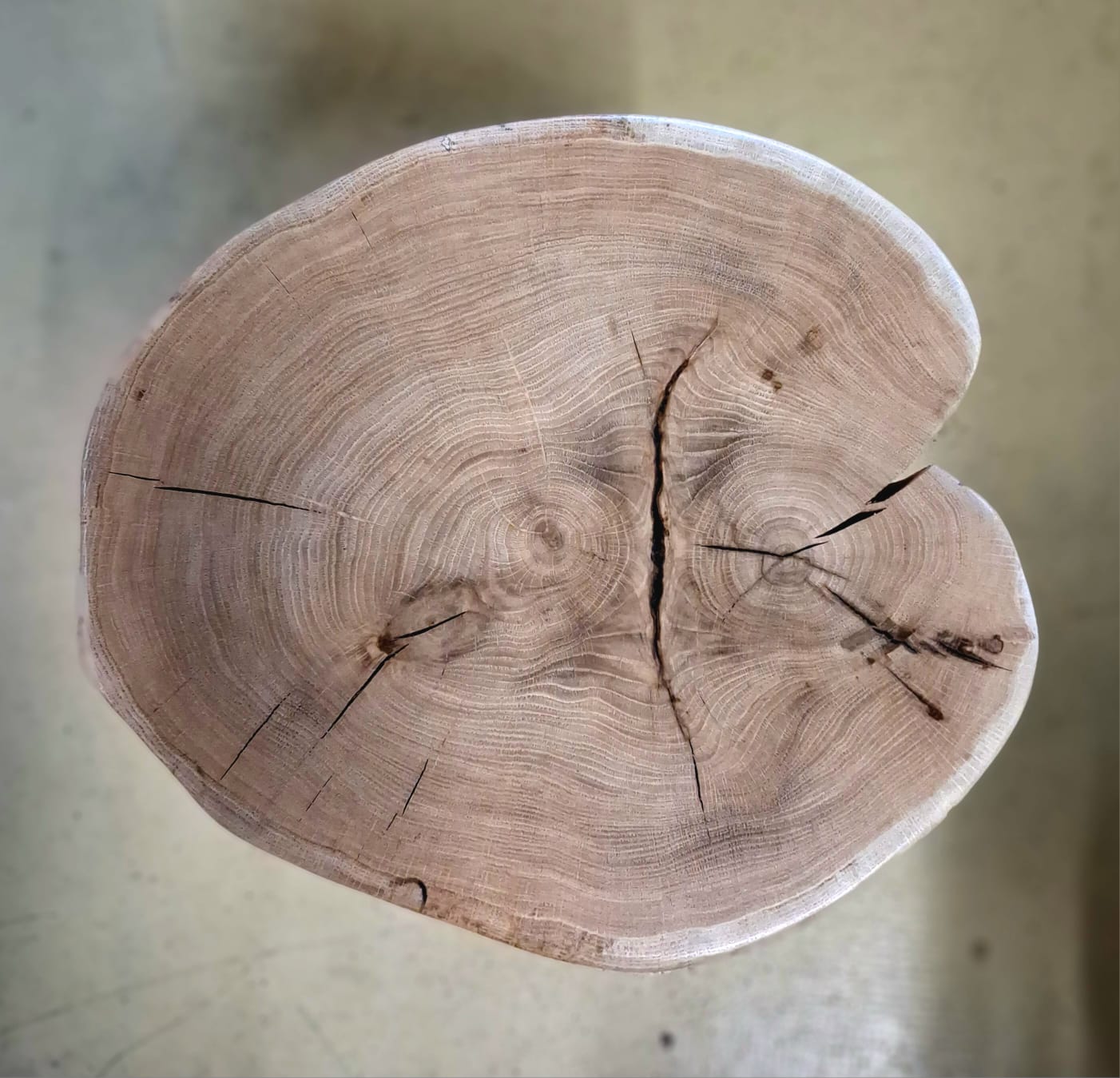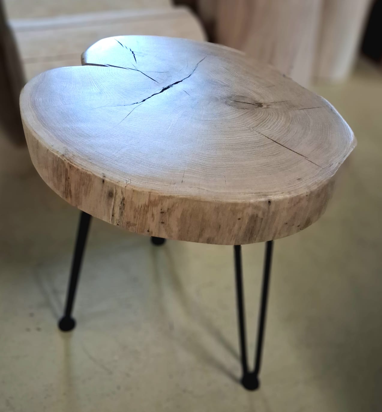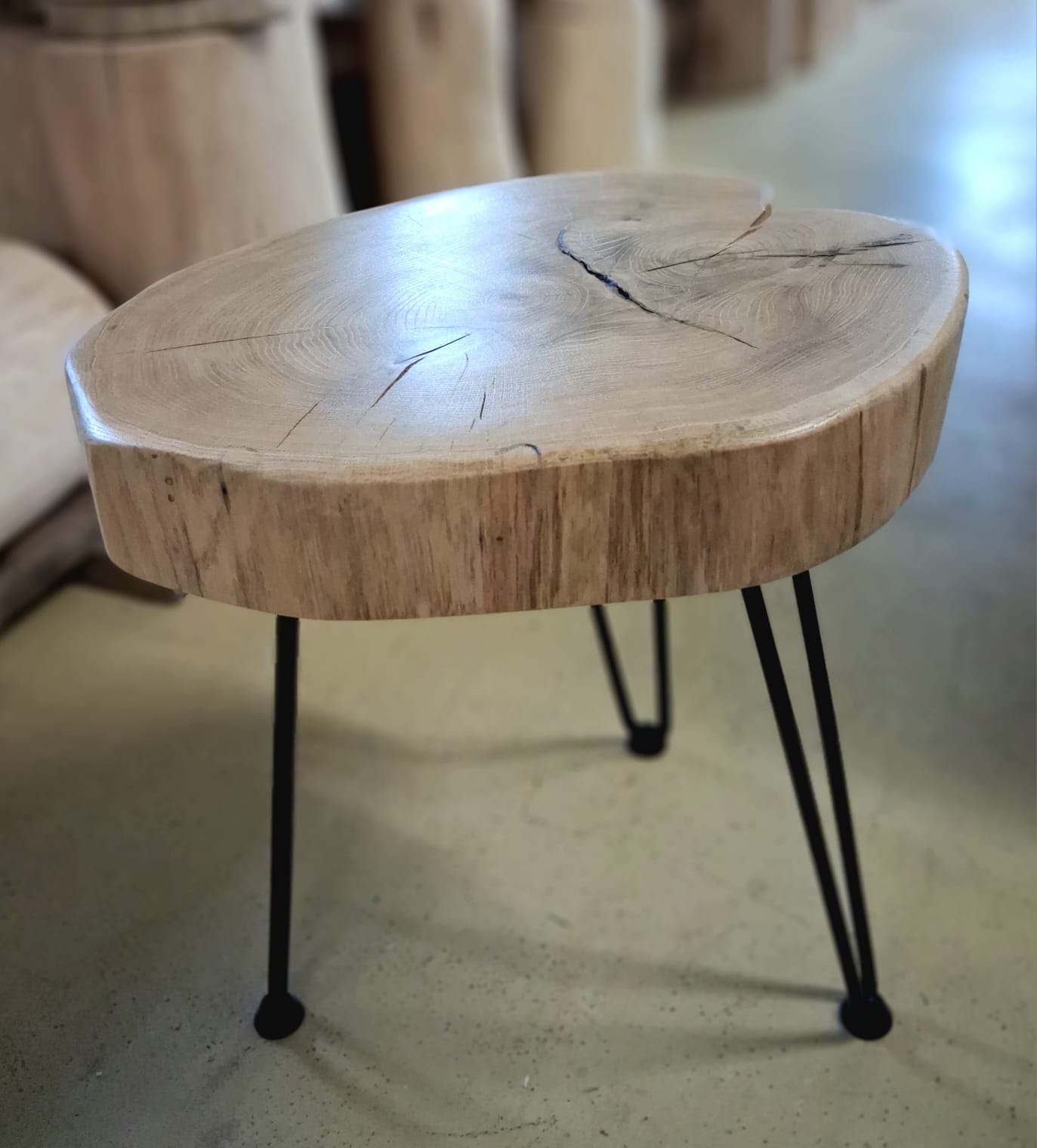 Elegantní a poctivý kousek přírody. Tento stolek je vyrobený z masivního dubu zimního a zpracován formou příčného řezu, díky kterému vyniká kresba letokruhů i přirozený tvar stromu. Povrch je ručně broušený a je chráněn ekologickým nátěrem, který zvýrazňuje barvu i strukturu dřeva.