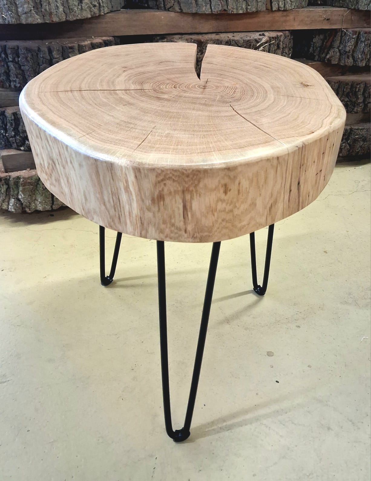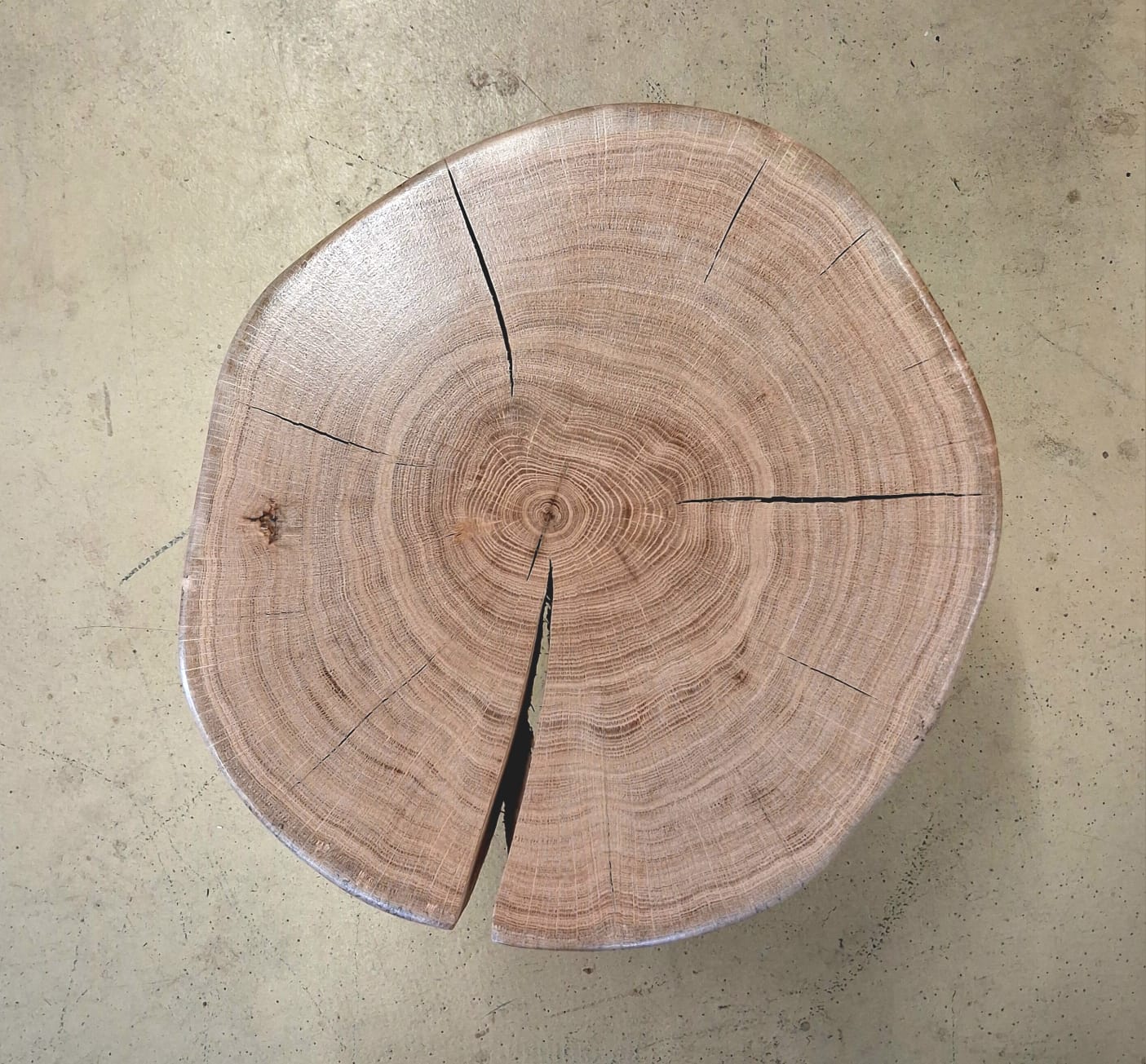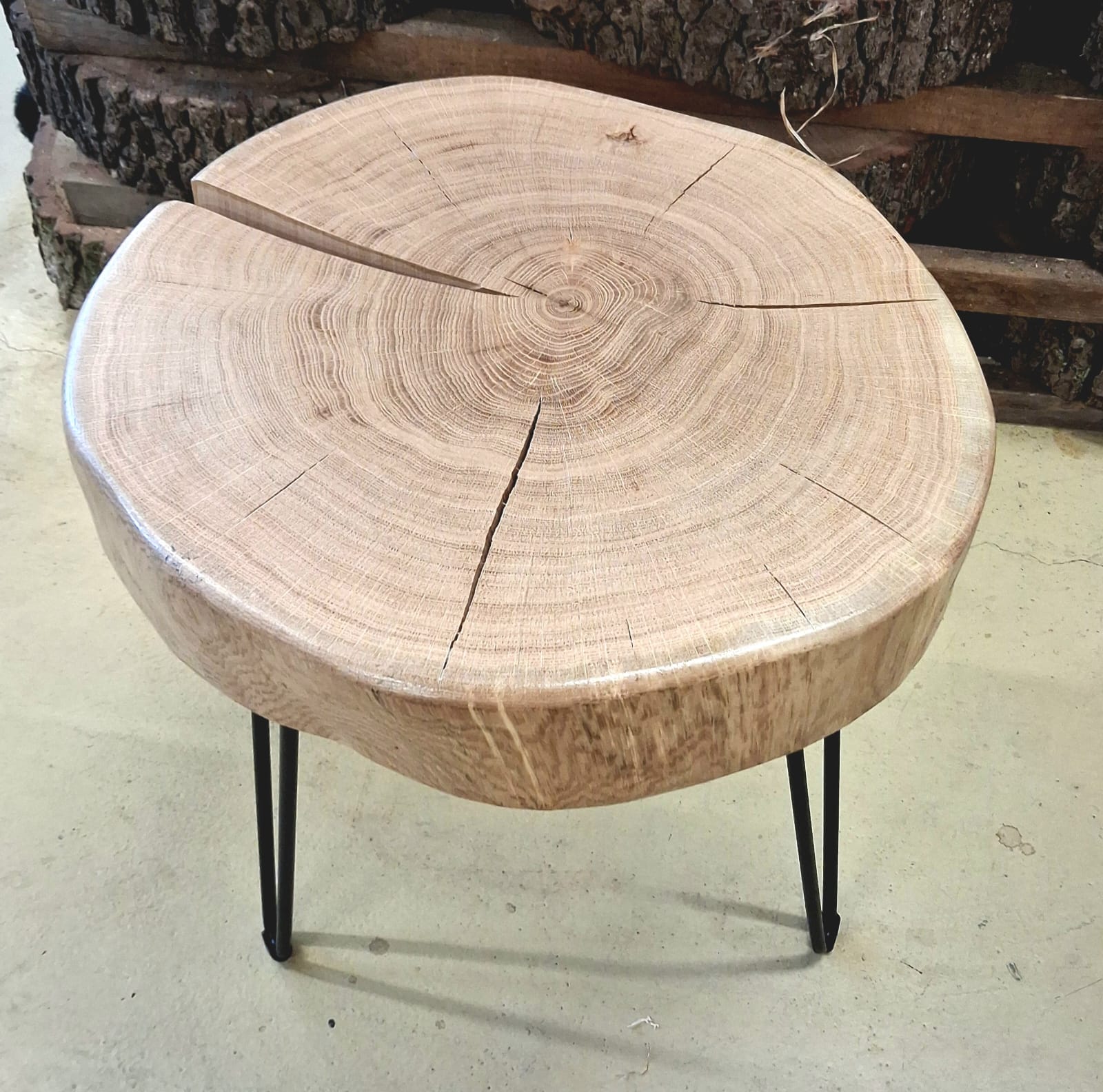 Elegantní a poctivý kousek přírody. Tento stolek je vyrobený z masivního dubu zimního a zpracován formou příčného řezu, díky kterému vyniká kresba letokruhů i přirozený tvar stromu. Povrch je ručně broušený a je chráněn ekologickým nátěrem, který zvýrazňuje barvu i strukturu dřeva.