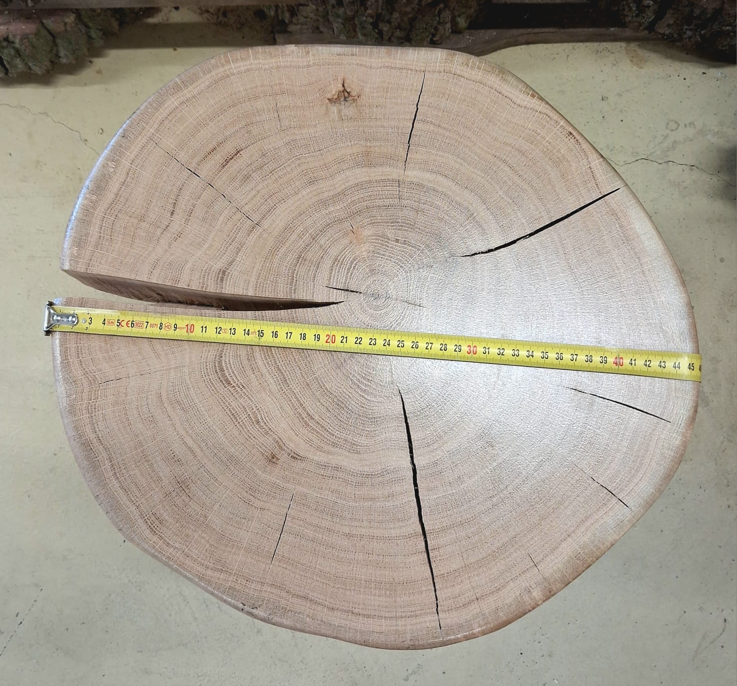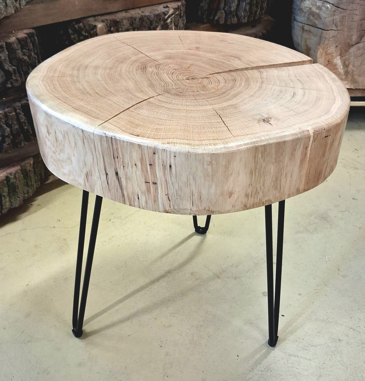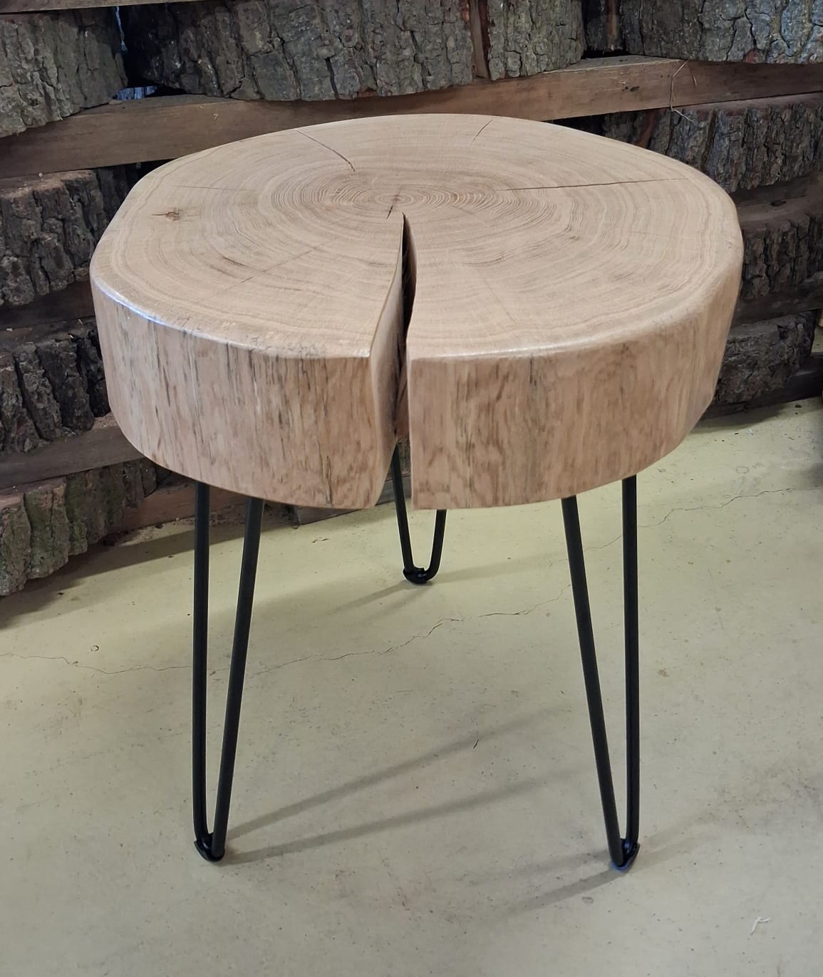 Elegantní a poctivý kousek přírody. Tento stolek je vyrobený z masivního dubu zimního a zpracován formou příčného řezu, díky kterému vyniká kresba letokruhů i přirozený tvar stromu. Povrch je ručně broušený a je chráněn ekologickým nátěrem, který zvýrazňuje barvu i strukturu dřeva.
