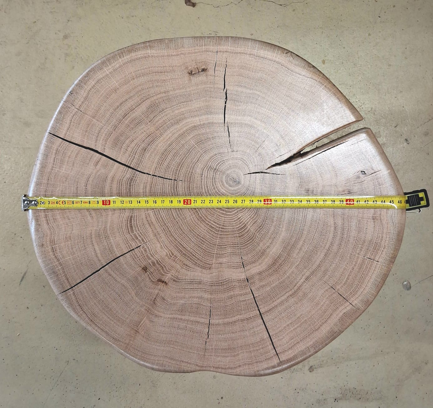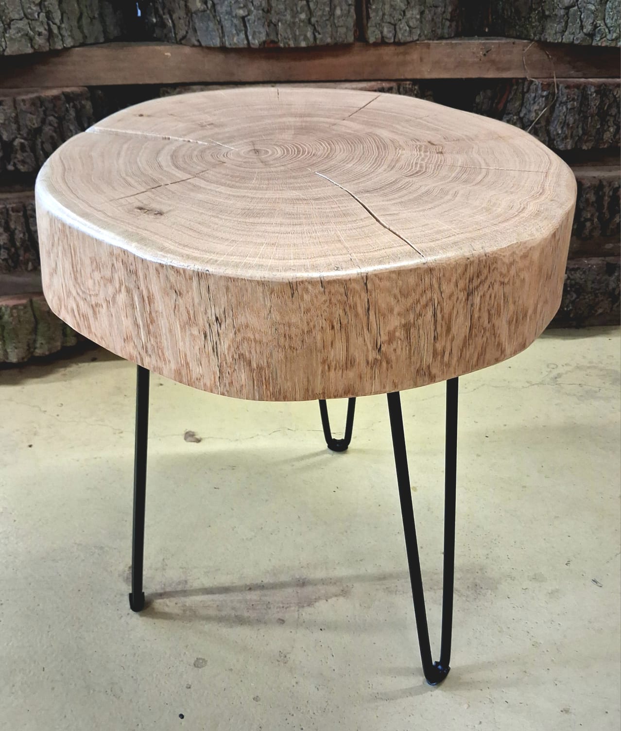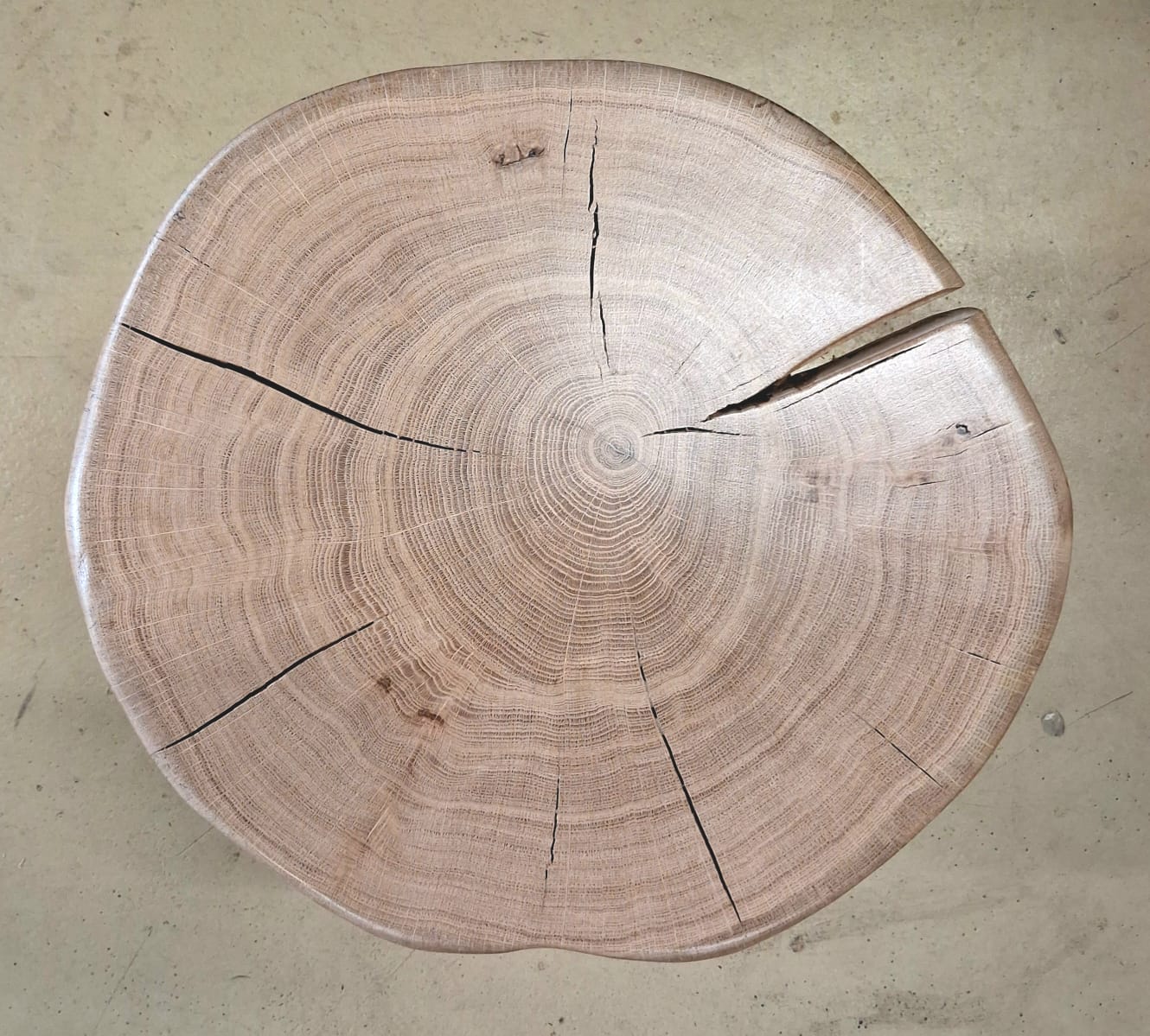 Elegantní a poctivý kousek přírody. Tento stolek je vyrobený z masivního dubu zimního a zpracován formou příčného řezu, díky kterému vyniká kresba letokruhů i přirozený tvar stromu. Povrch je ručně broušený a je chráněn ekologickým nátěrem, který zvýrazňuje barvu i strukturu dřeva.