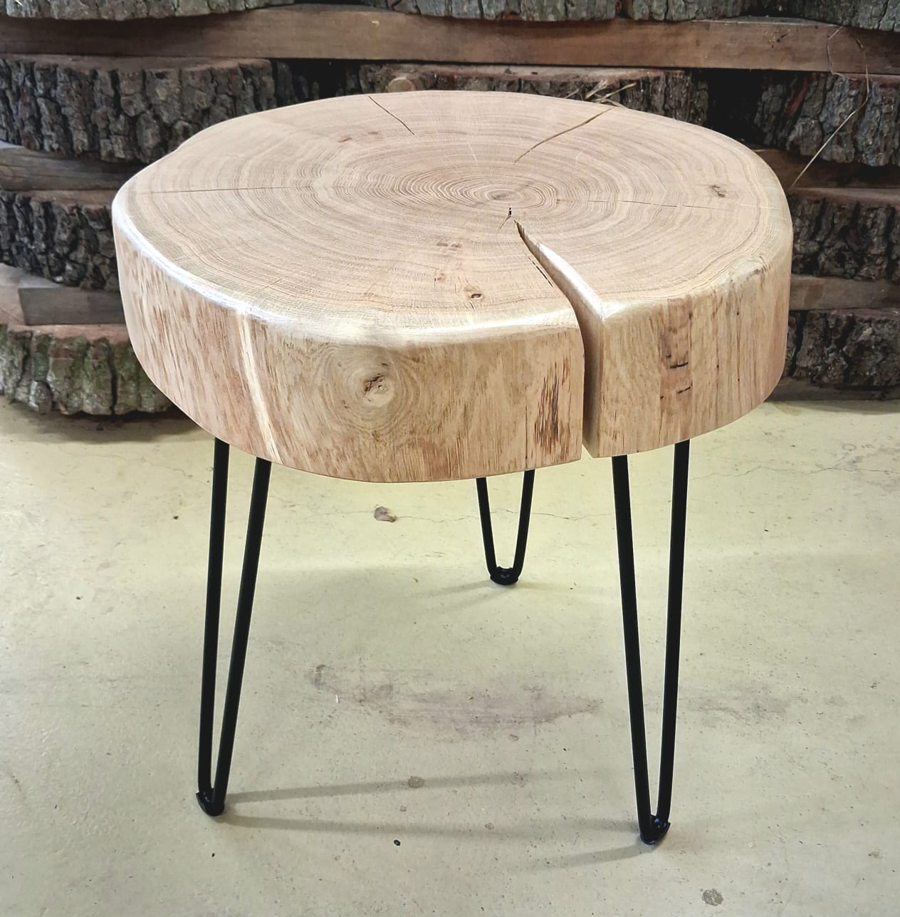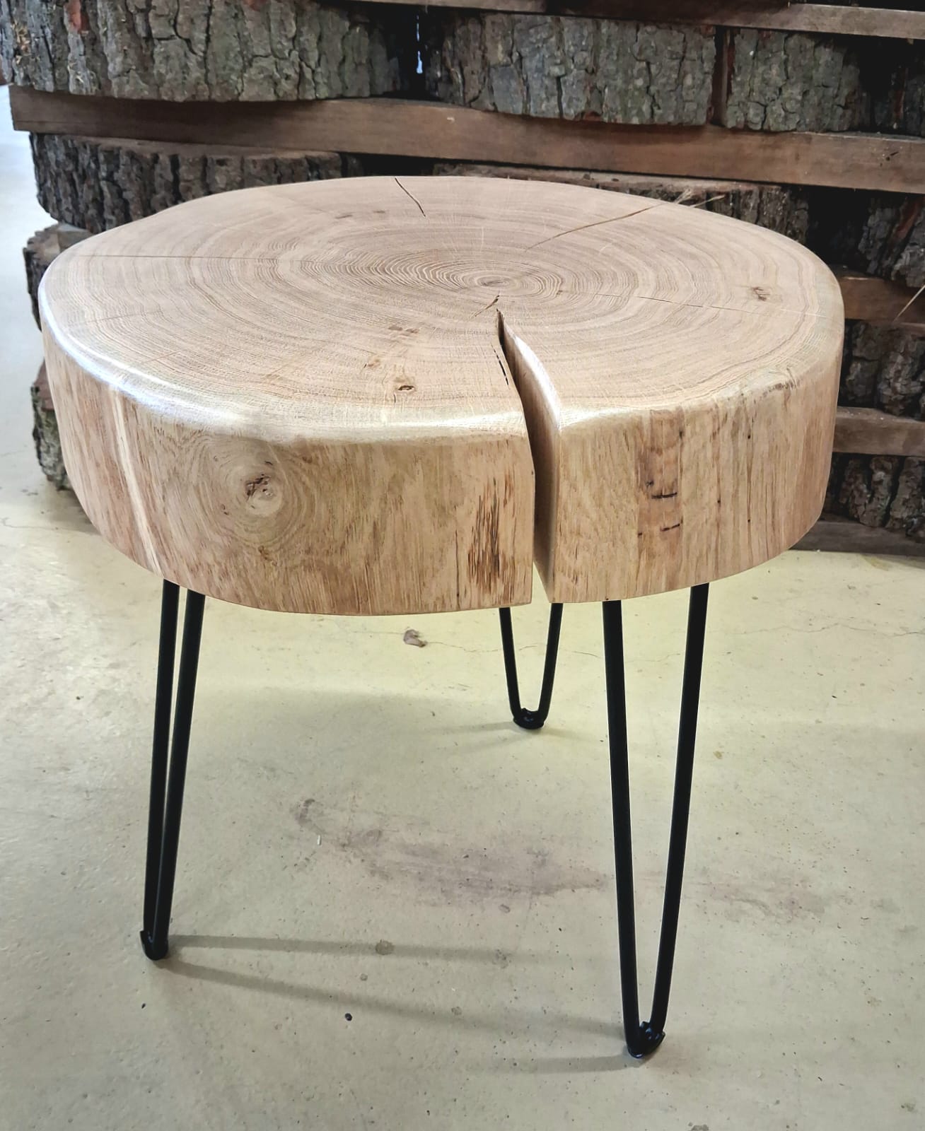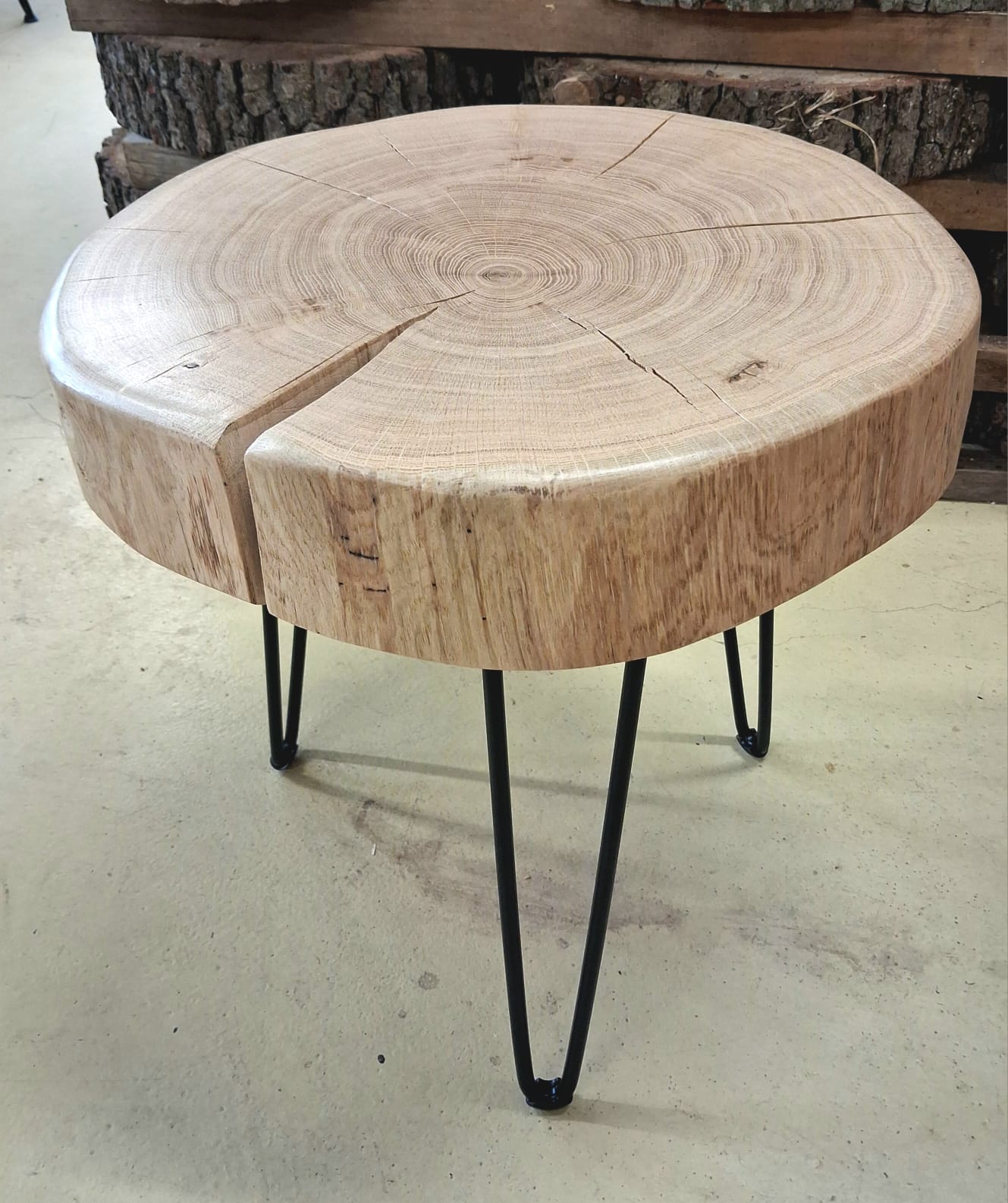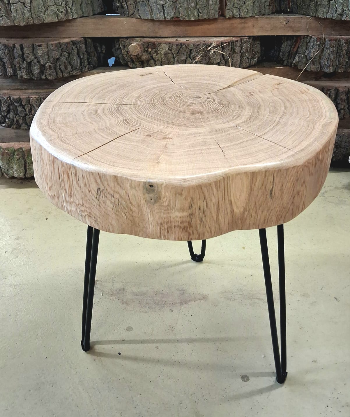 Elegantní a poctivý kousek přírody. Tento stolek je vyrobený z masivního dubu zimního a zpracován formou příčného řezu, díky kterému vyniká kresba letokruhů i přirozený tvar stromu. Povrch je ručně broušený a je chráněn ekologickým nátěrem, který zvýrazňuje barvu i strukturu dřeva.