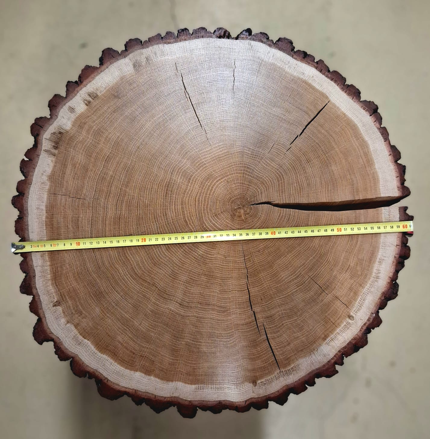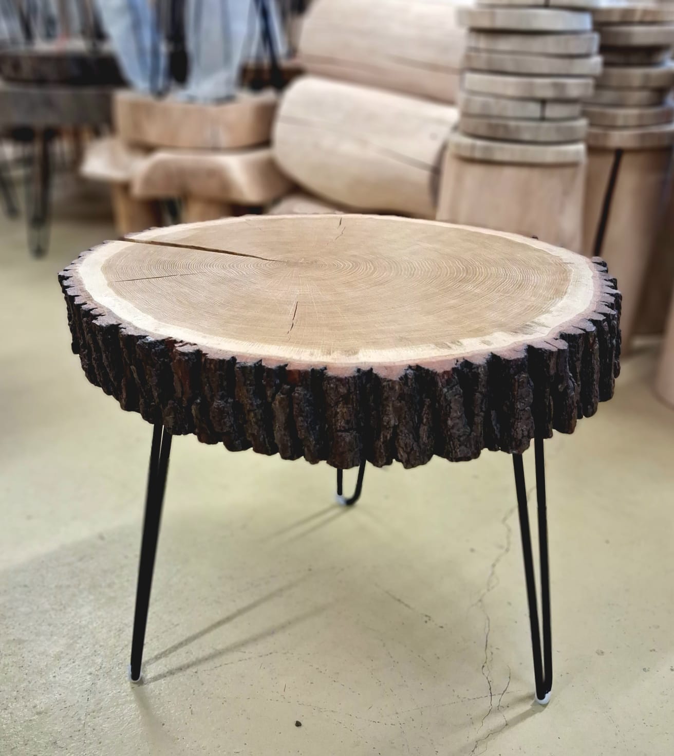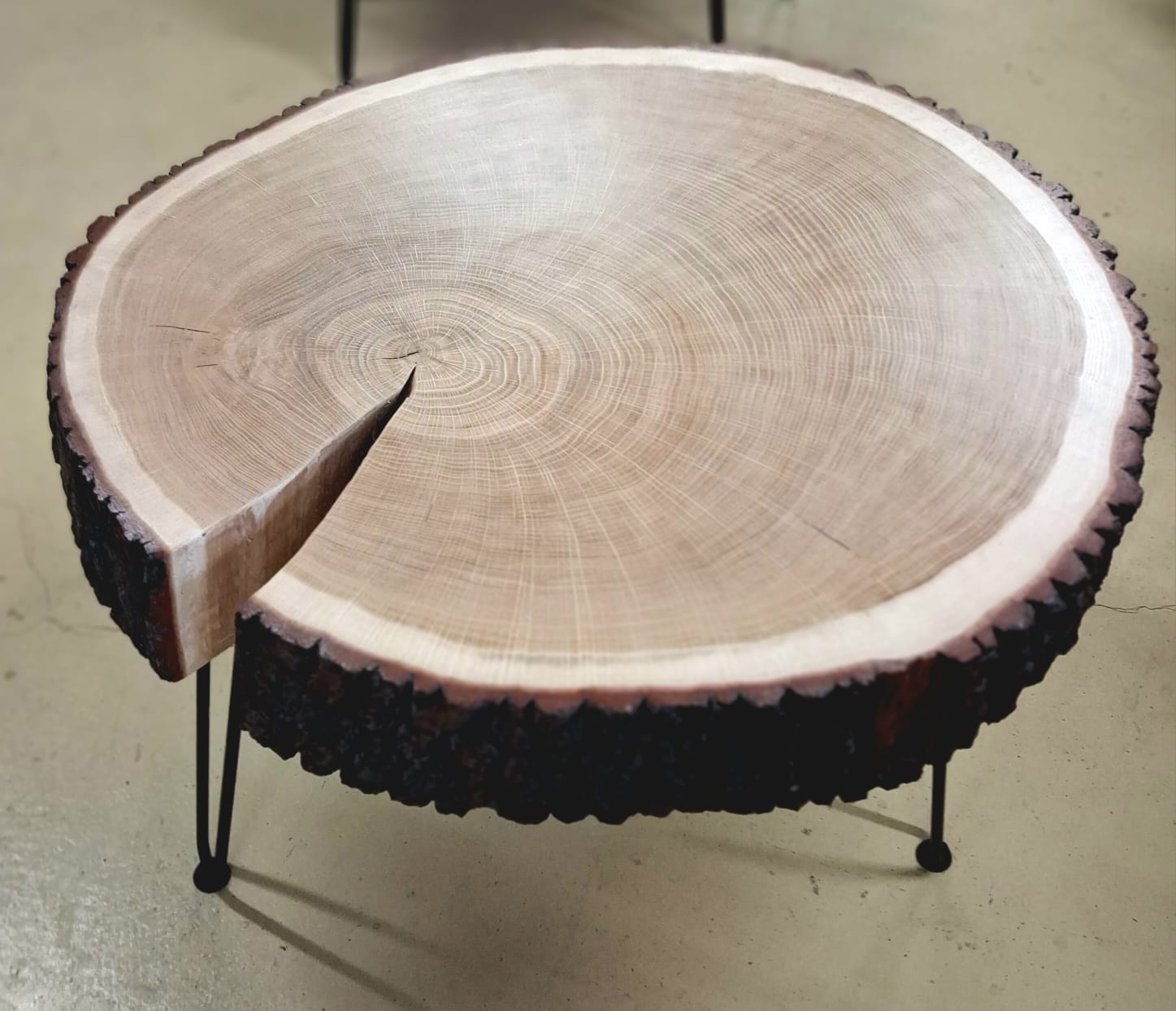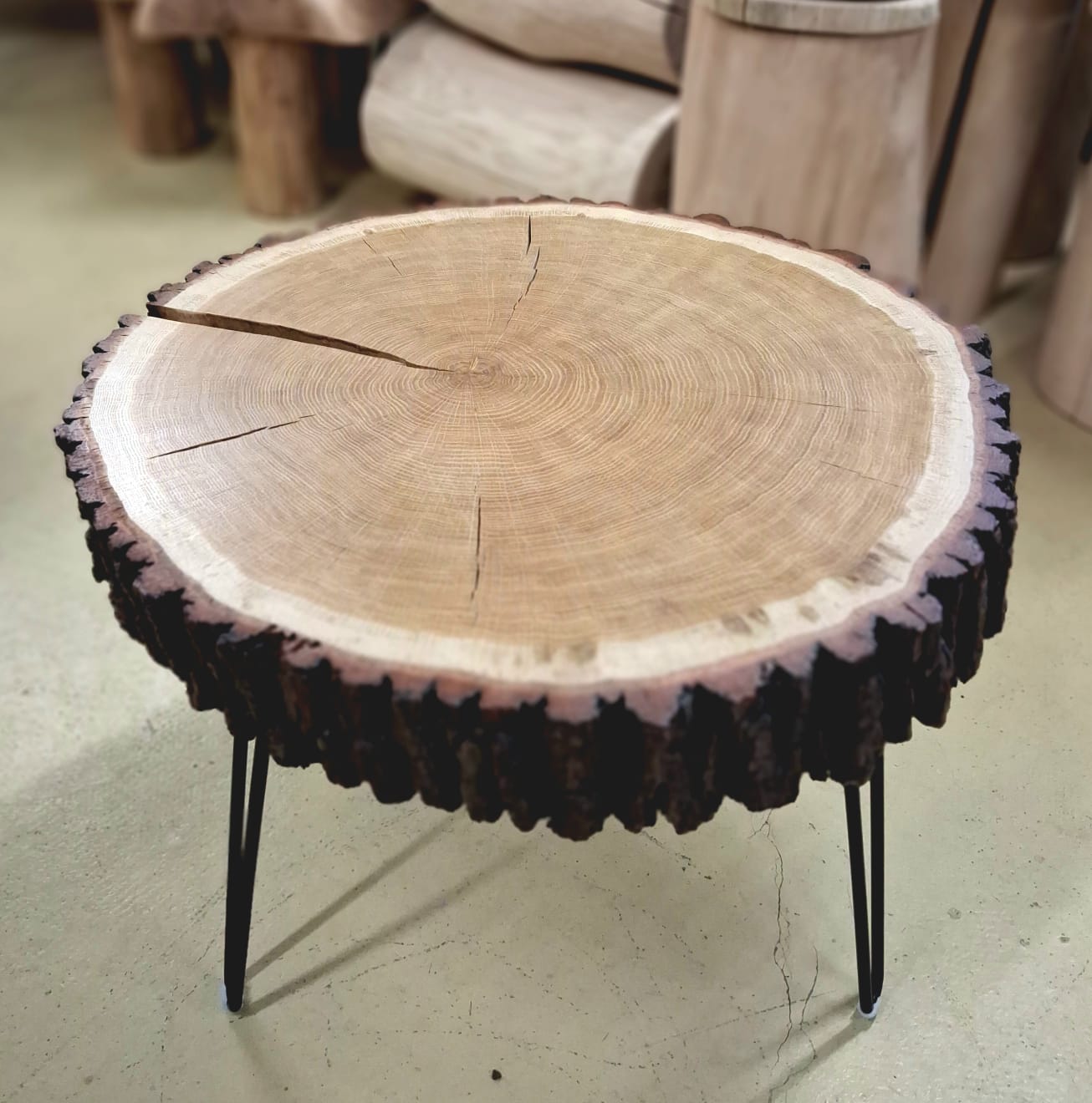Elegantní a poctivý kousek přírody. Tento stolek je vyrobený z masivního dubu zimního a zpracován formou příčného řezu, díky kterému vyniká kresba letokruhů i přirozený tvar stromu. Povrch je ručně broušený a je chráněn ekologickým nátěrem, který zvýrazňuje barvu i strukturu dřeva.