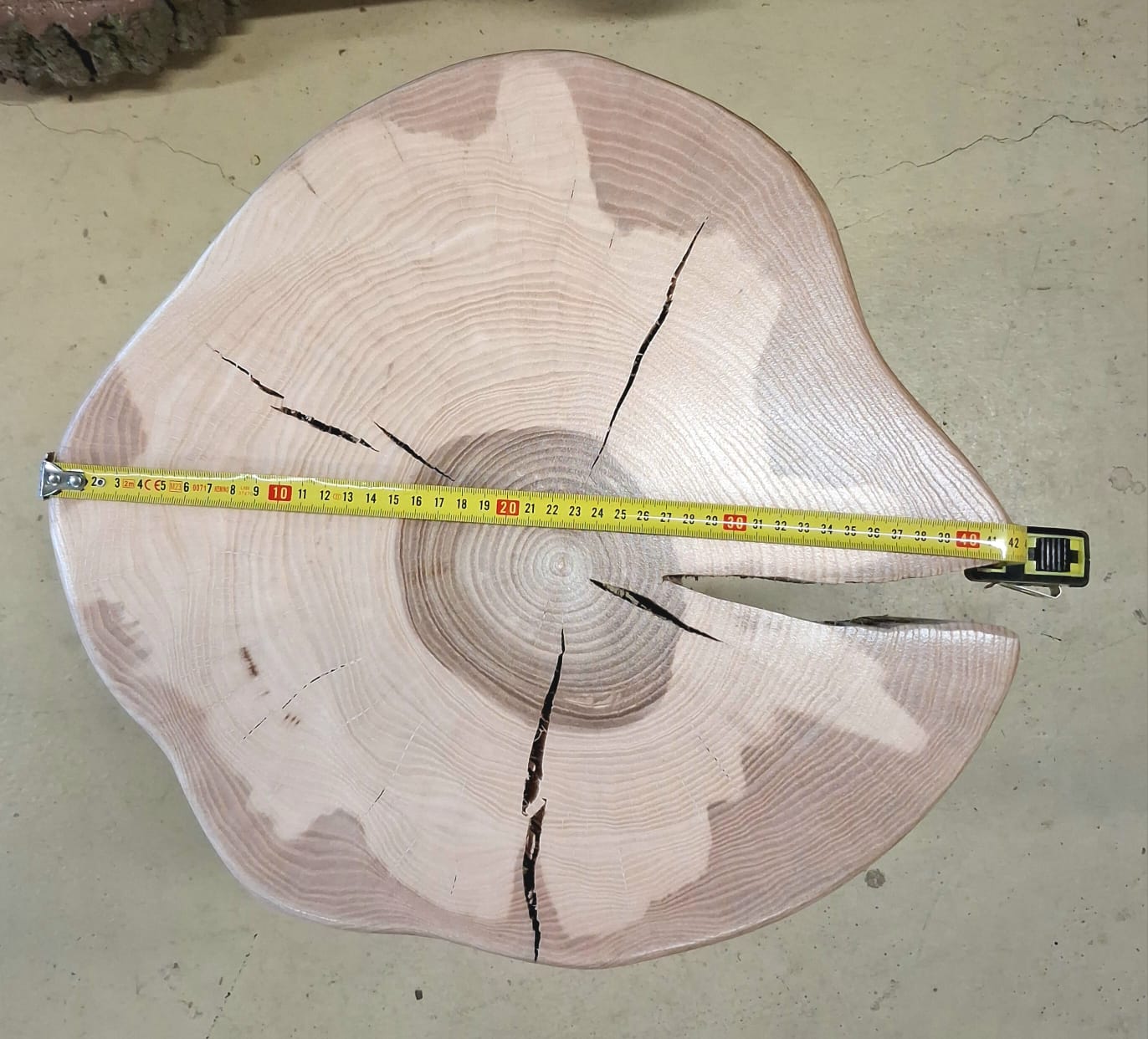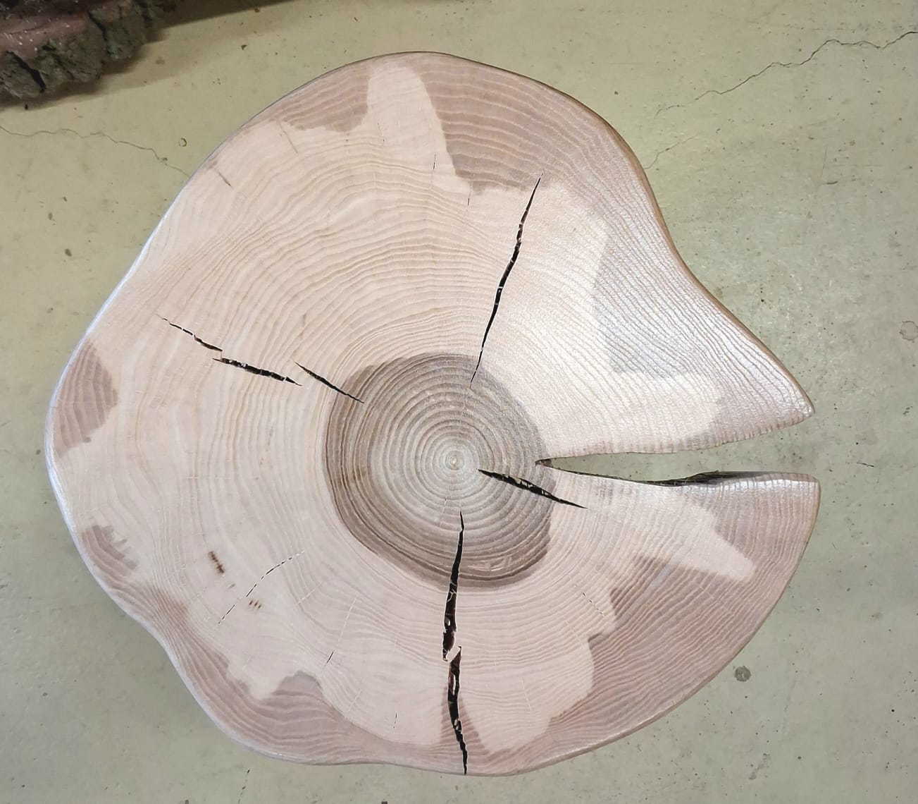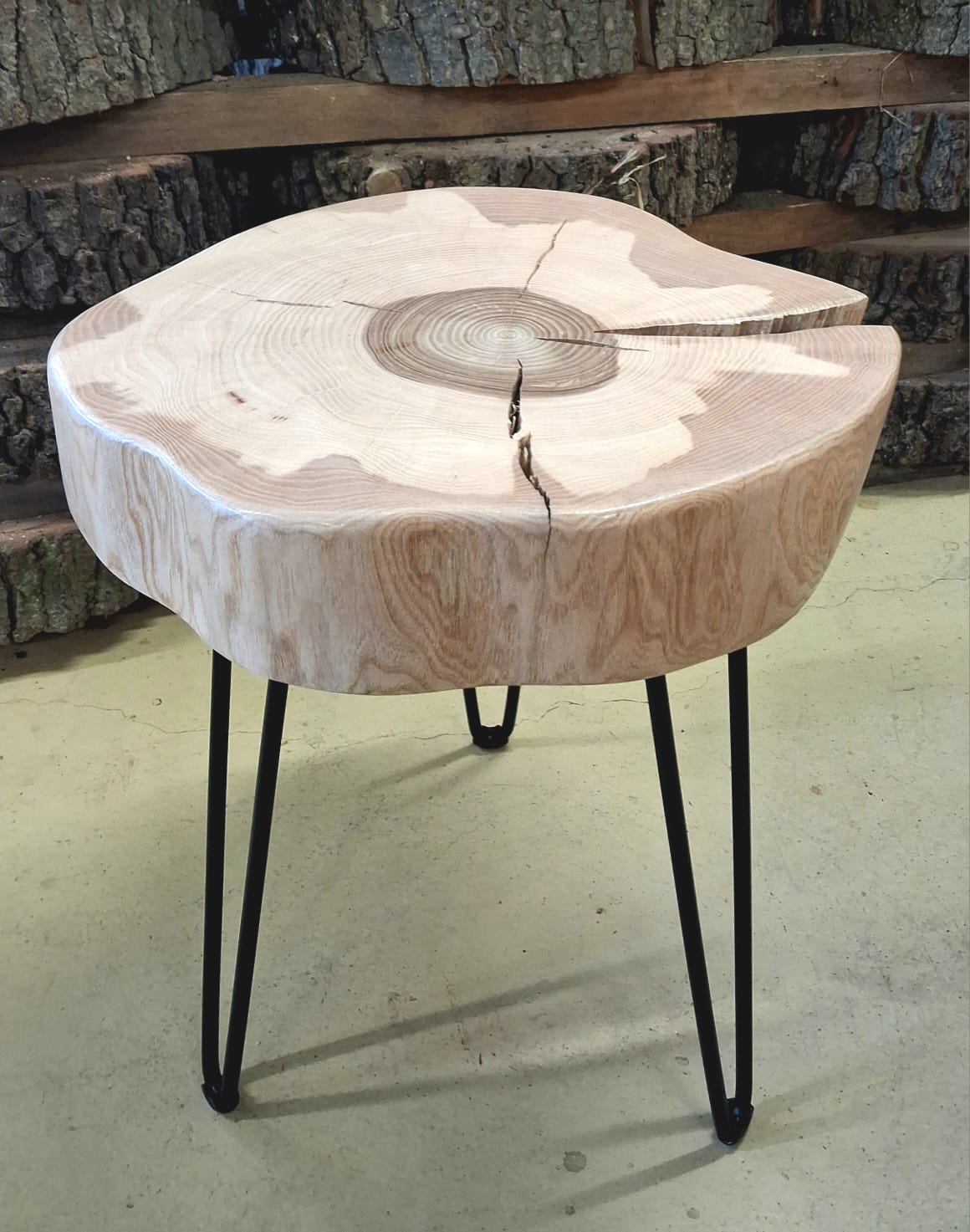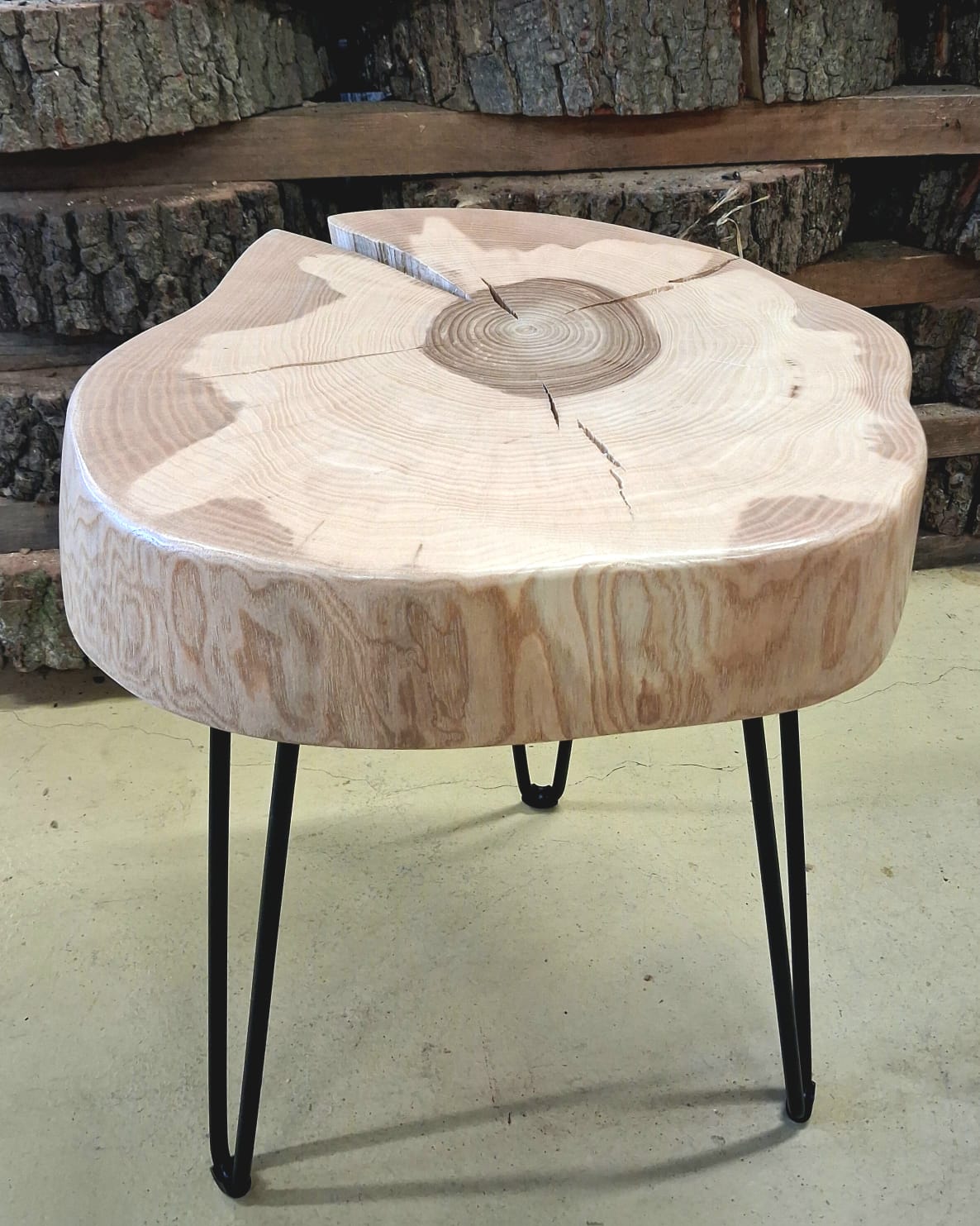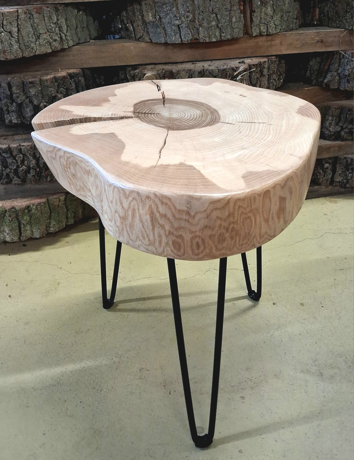 Unikátní stolek vyrobený z vybraného jasanového dřeva. Jedná se o příčný řez českým jasanem ztepilým. Jedinečná ručně broušená deska  je ponechaná v původním přírodním tvaru stromu. Dřevo je pečlivě ošetřené ekologickým ochranným nátěrem pro dlouhou životnost a zvýraznění kresby.
