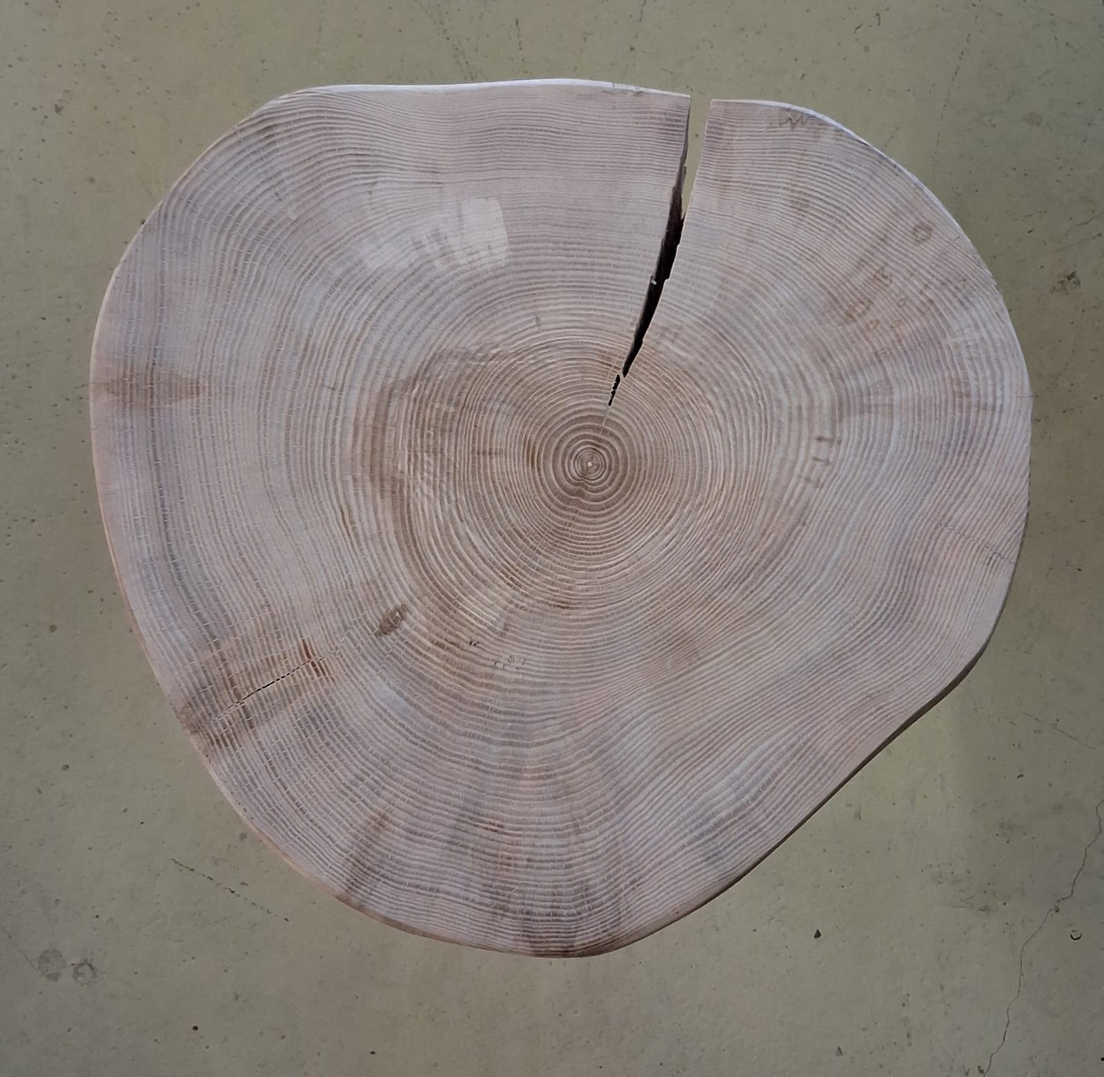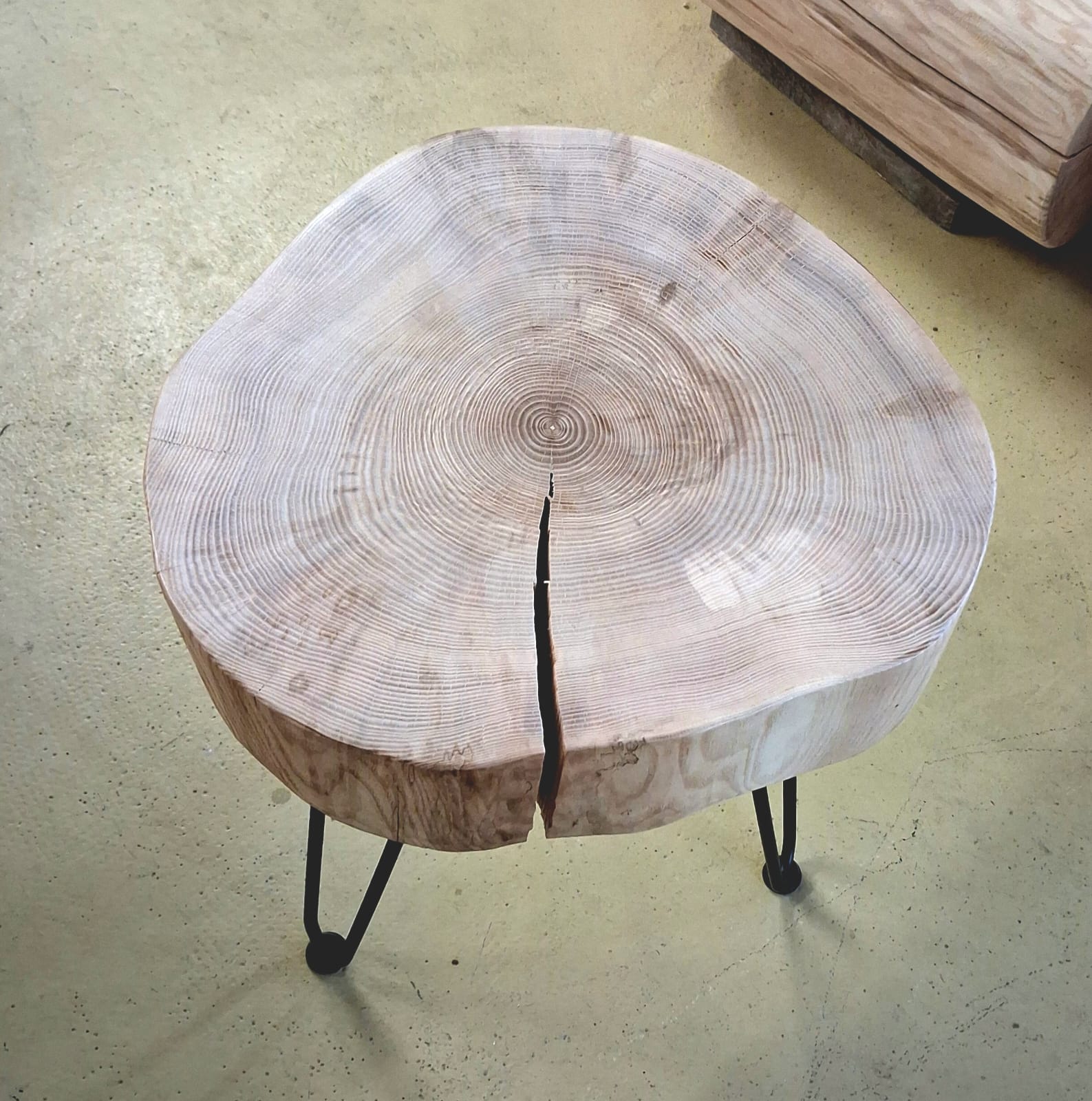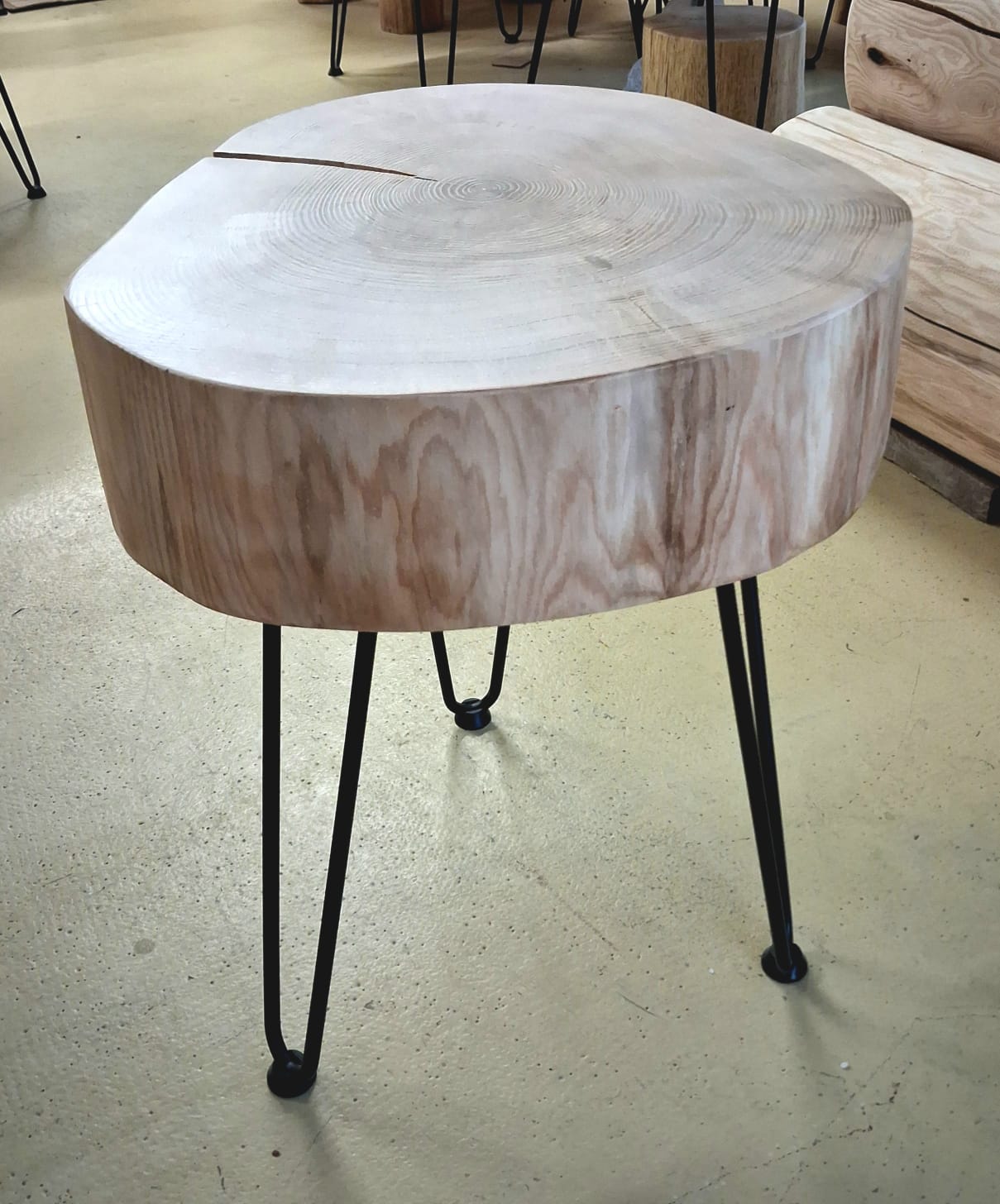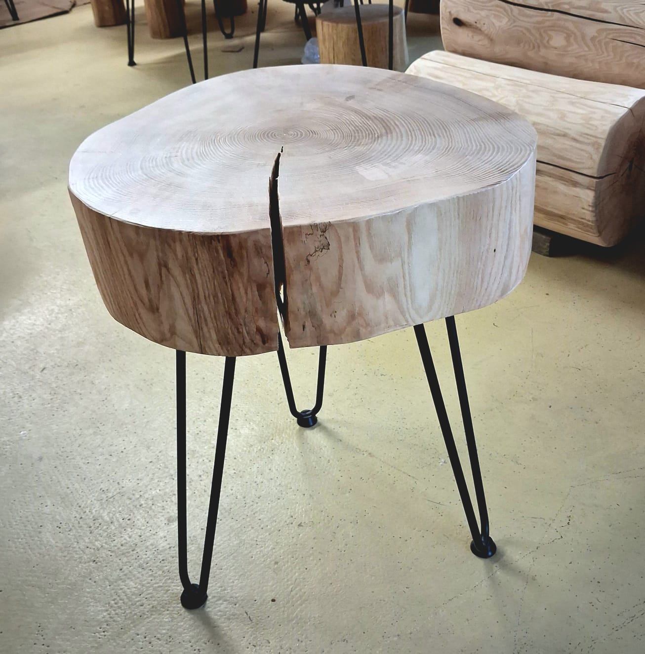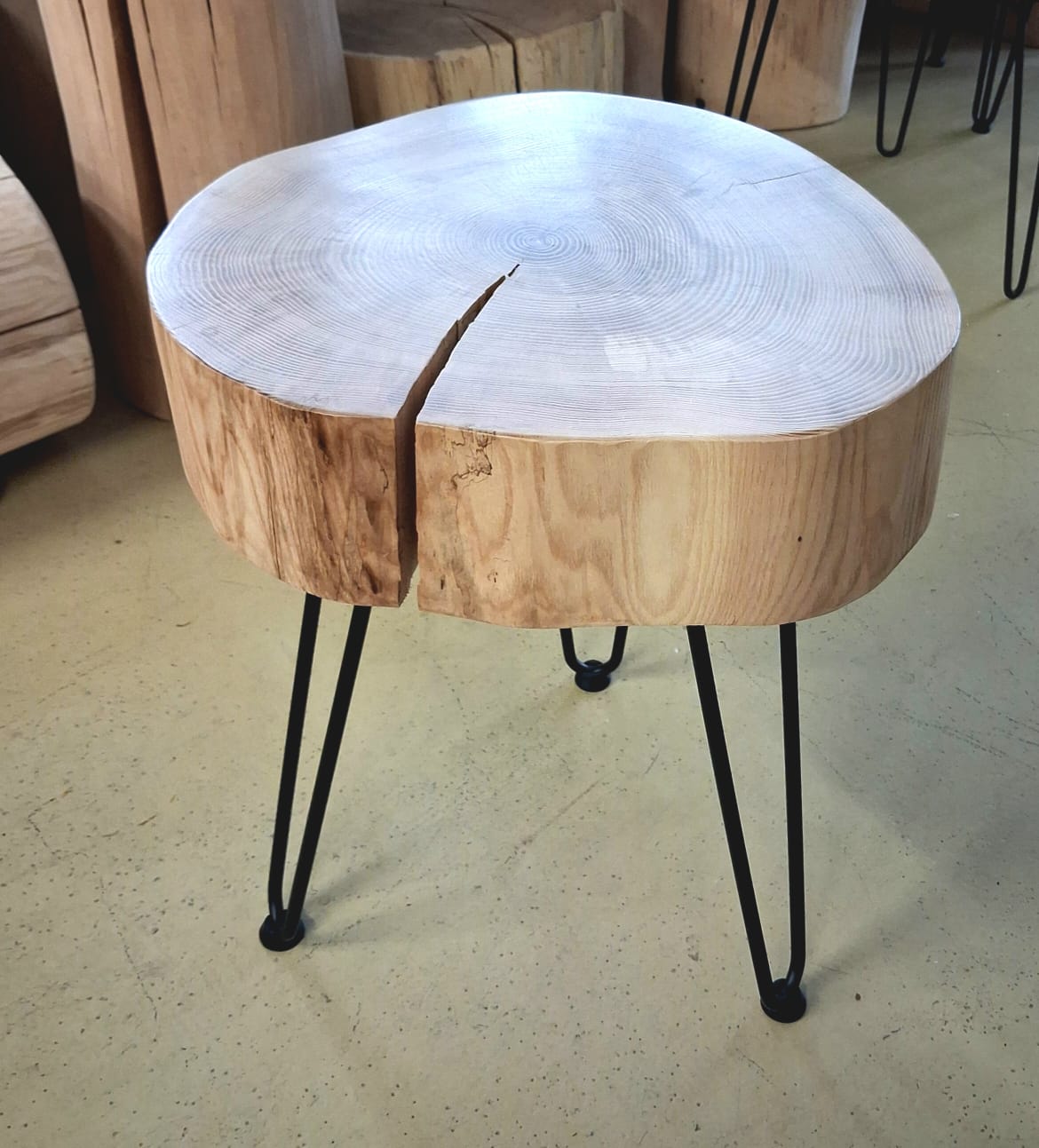 Unikátní stolek vyrobený z vybraného jasanového dřeva. Jedná se o příčný řez českým jasanem ztepilým. Jedinečná ručně broušená deska  je ponechaná v původním přírodním tvaru stromu. Dřevo je pečlivě ošetřené ekologickým ochranným nátěrem pro dlouhou životnost a zvýraznění kresby.