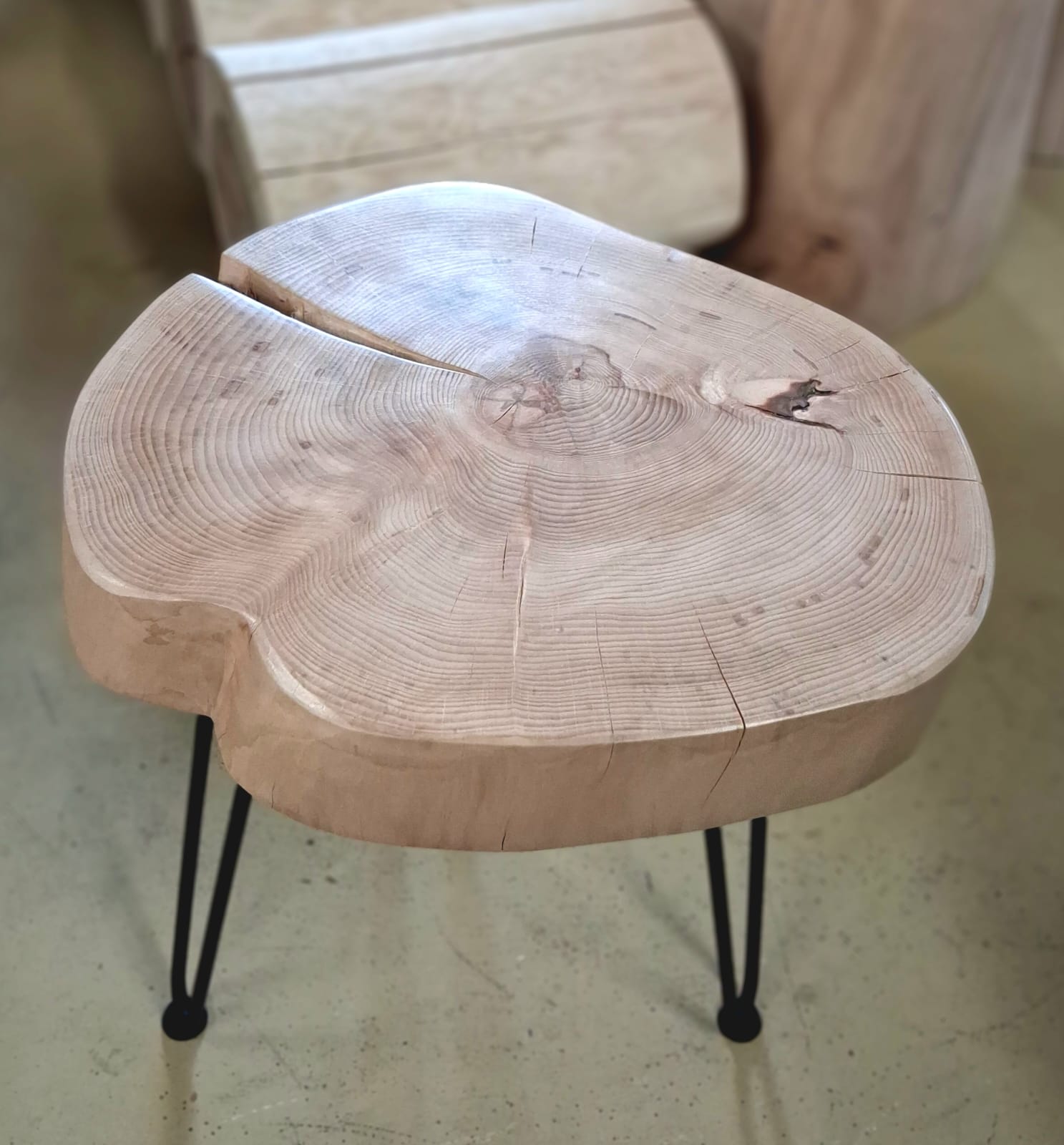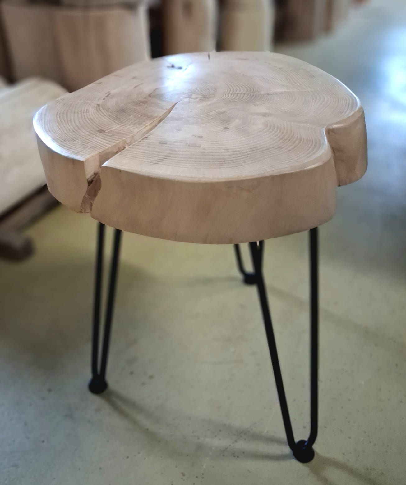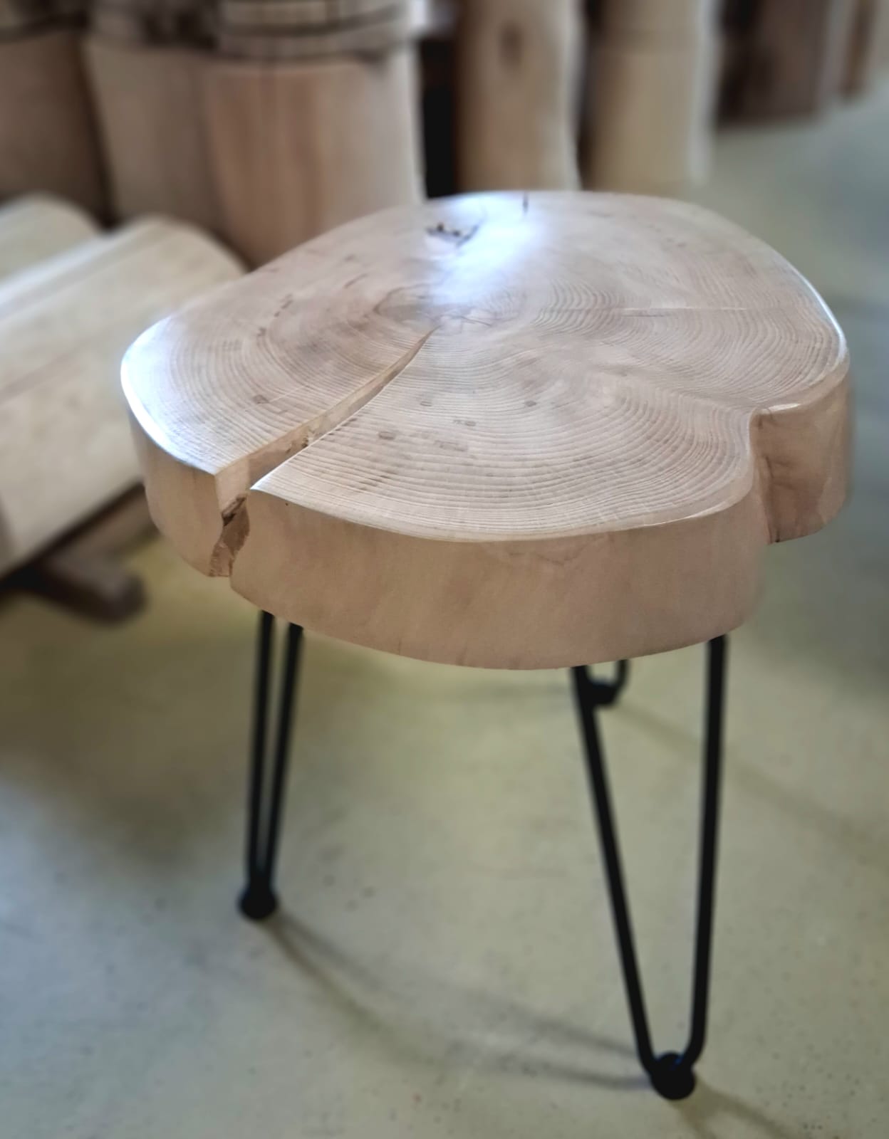 Unikátní Stolek vyrobený z vybraného jasanového dřeva. Jedná se o příčný řez českým jasanem ztepilým. Jedinečný ručně broušený koláč je ponechaný v původním přírodním tvaru stromu. Dřevo je pečlivě ošetřené ekologickým ochranným nátěrem pro dlouhou životnost a zvýraznění kresby.