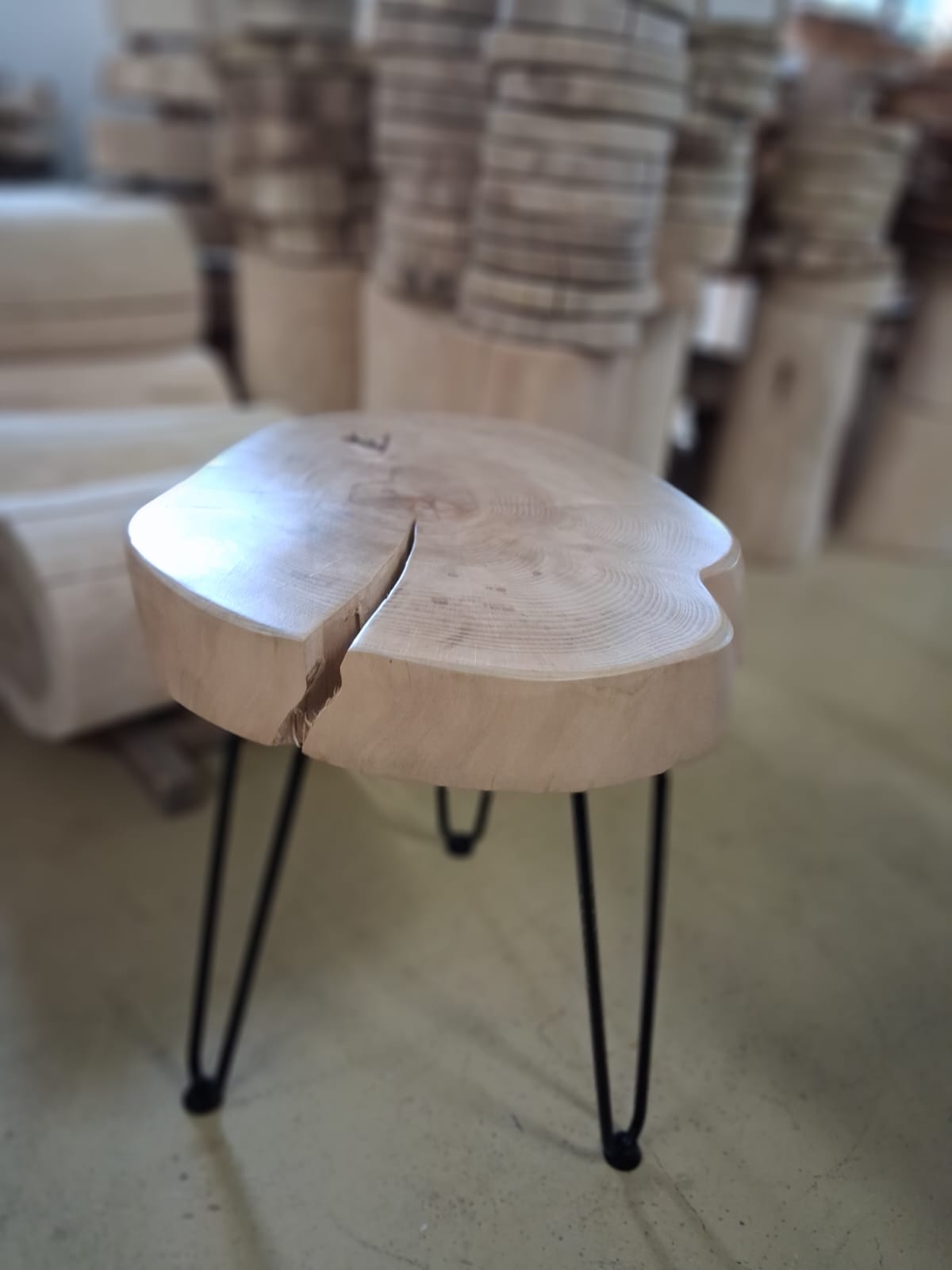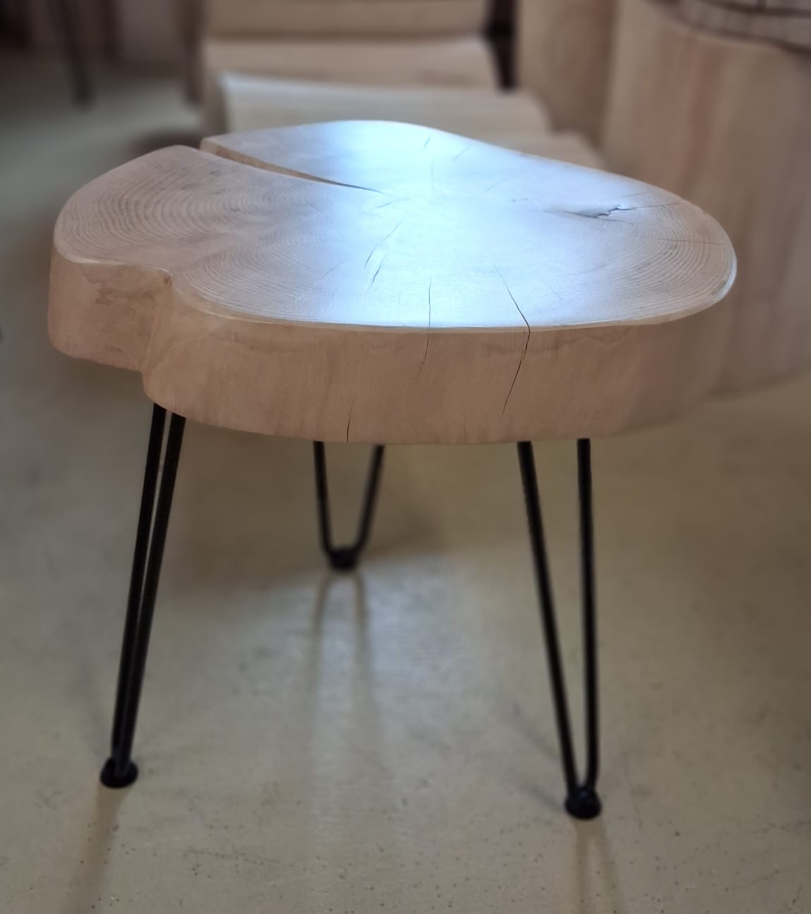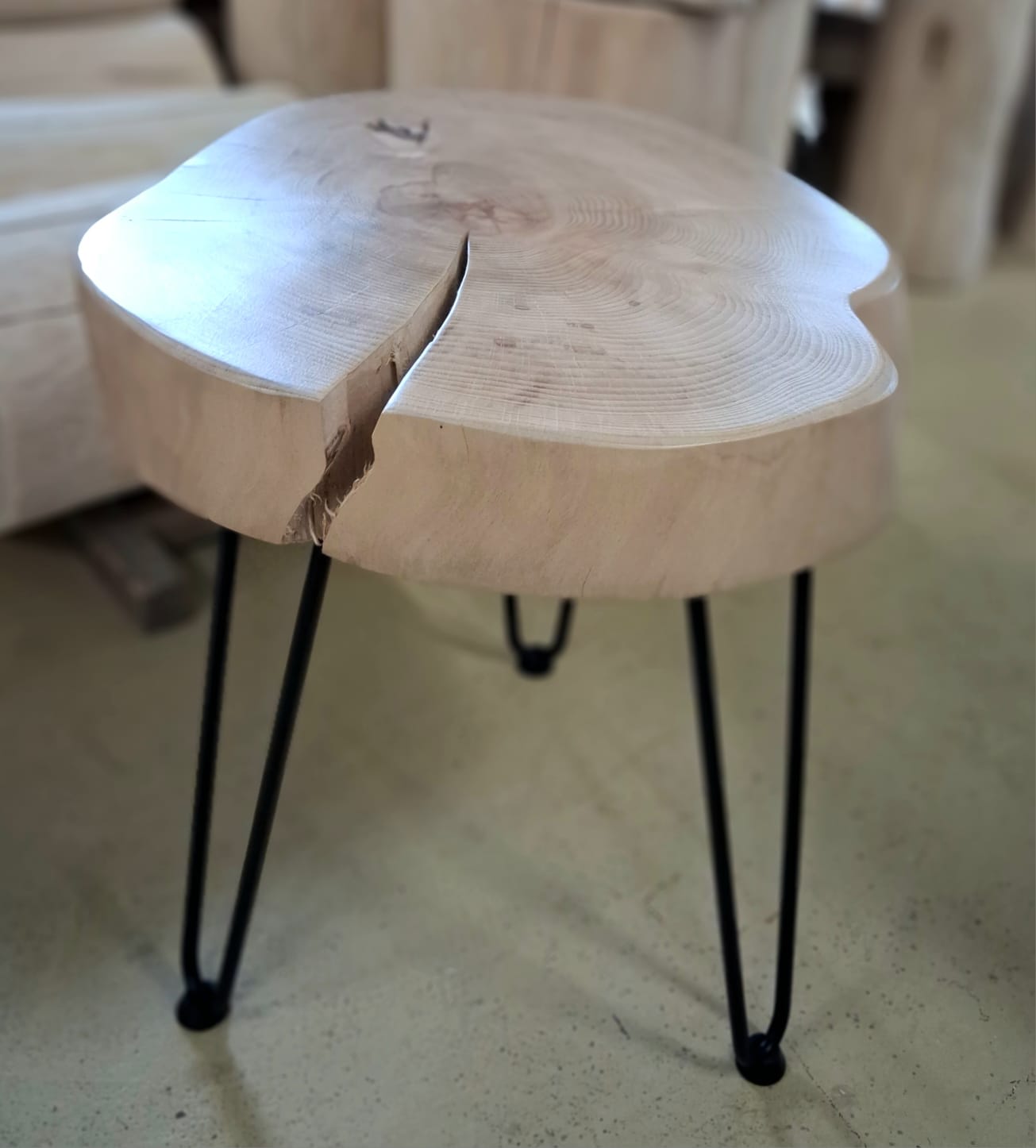 Unikátní Stolek vyrobený z vybraného jasanového dřeva. Jedná se o příčný řez českým jasanem ztepilým. Jedinečný ručně broušený koláč je ponechaný v původním přírodním tvaru stromu. Dřevo je pečlivě ošetřené ekologickým ochranným nátěrem pro dlouhou životnost a zvýraznění kresby.
