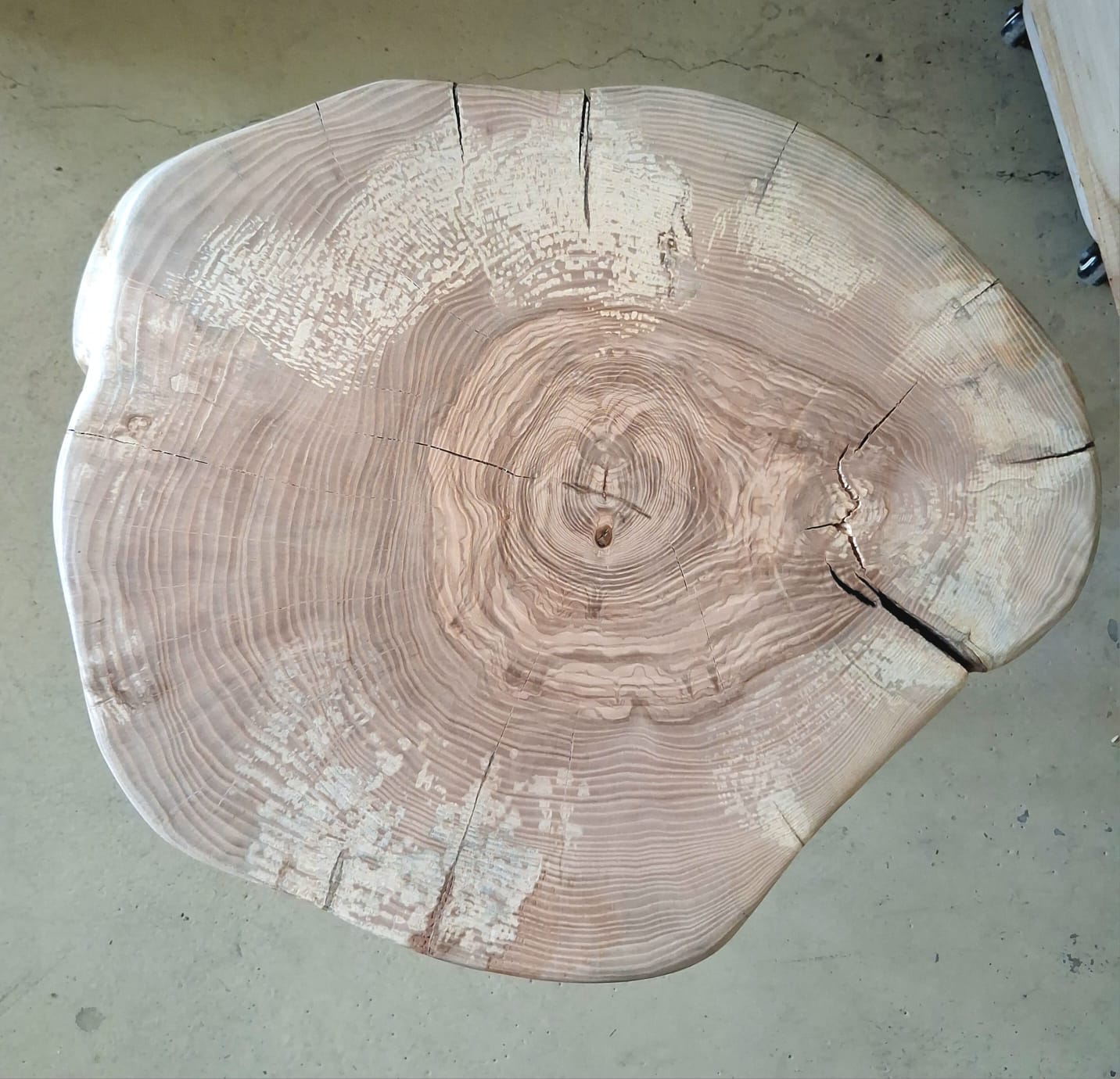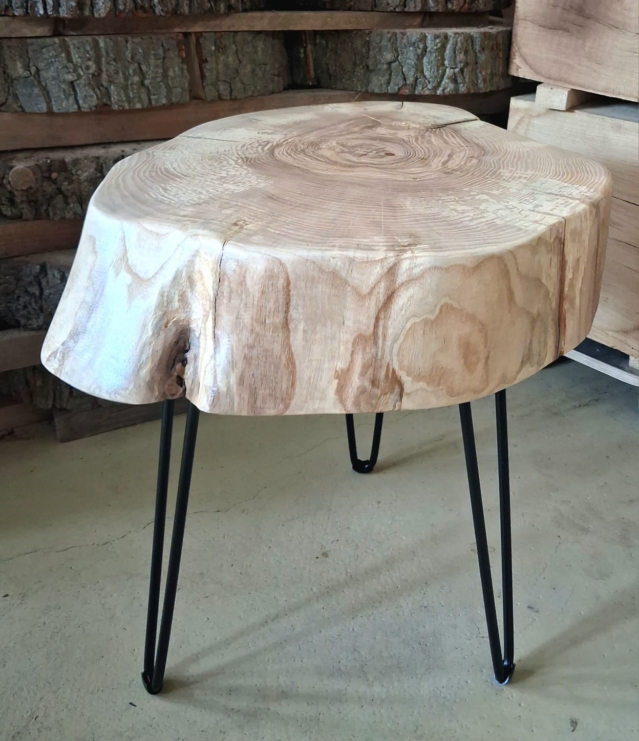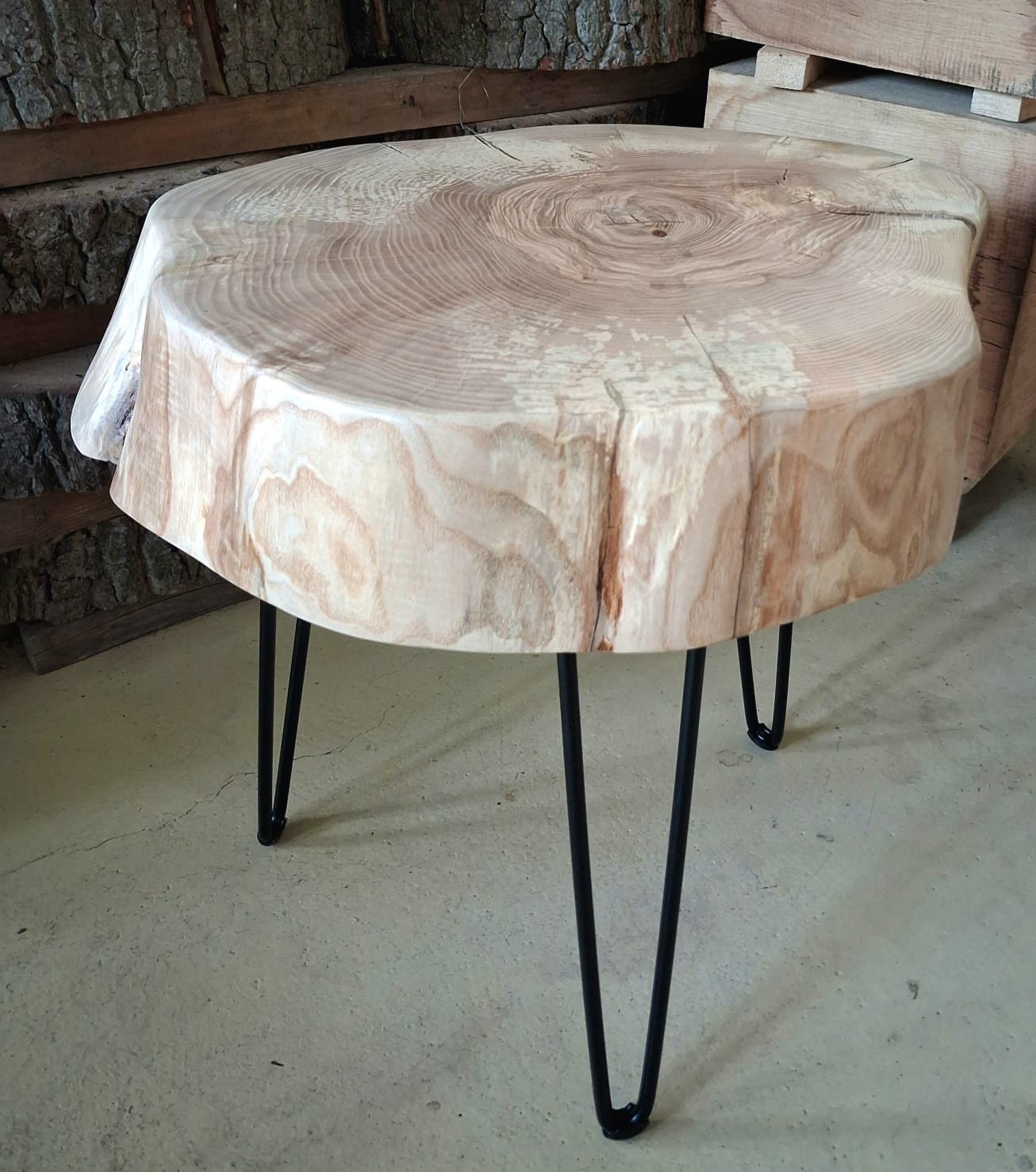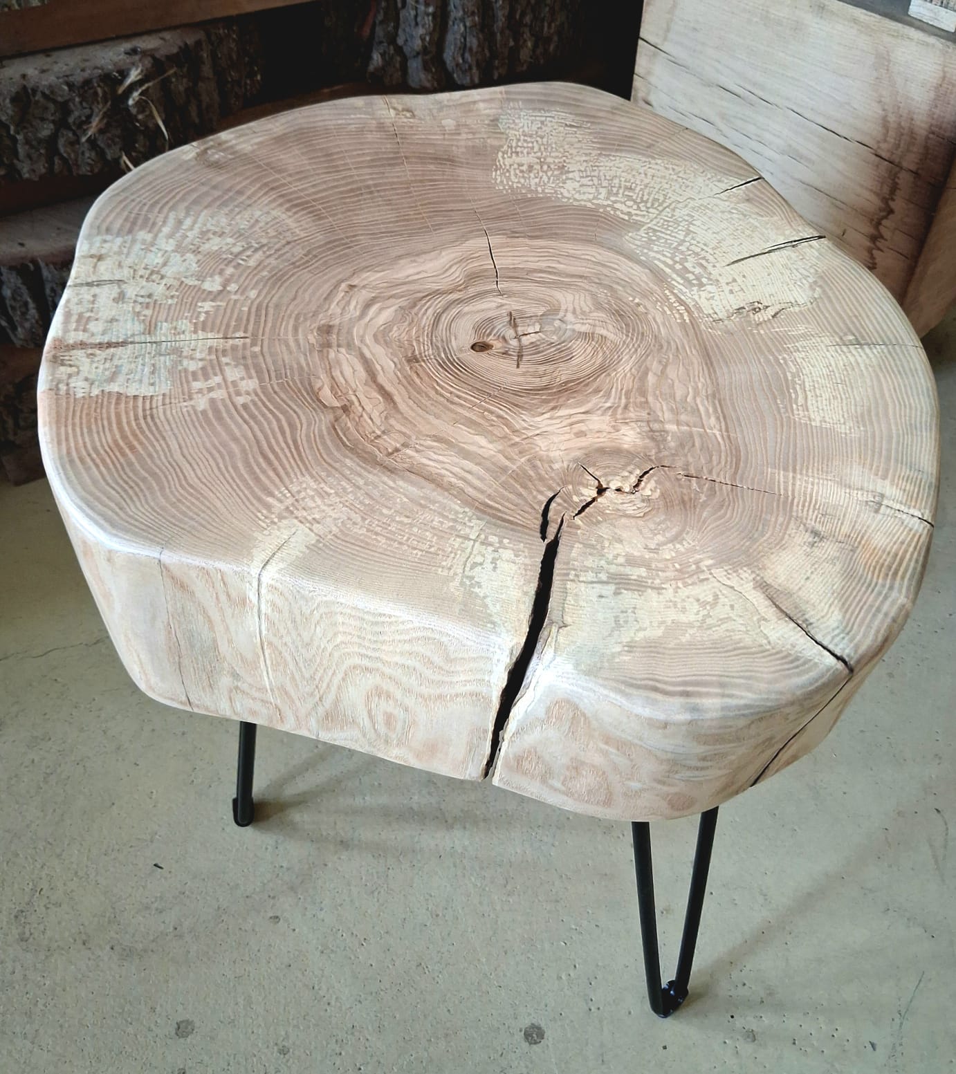 Unikátní stolek vyrobený z vybraného jasanového dřeva. Jedná se o příčný řez českým jasanem ztepilým. Jedinečná ručně broušená deska  je ponechaná v původním přírodním tvaru stromu. Dřevo je pečlivě ošetřené ekologickým ochranným nátěrem pro dlouhou životnost a zvýraznění kresby.