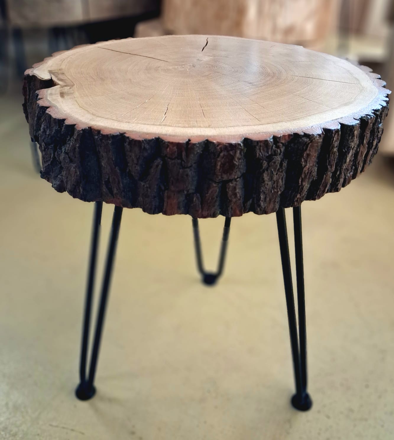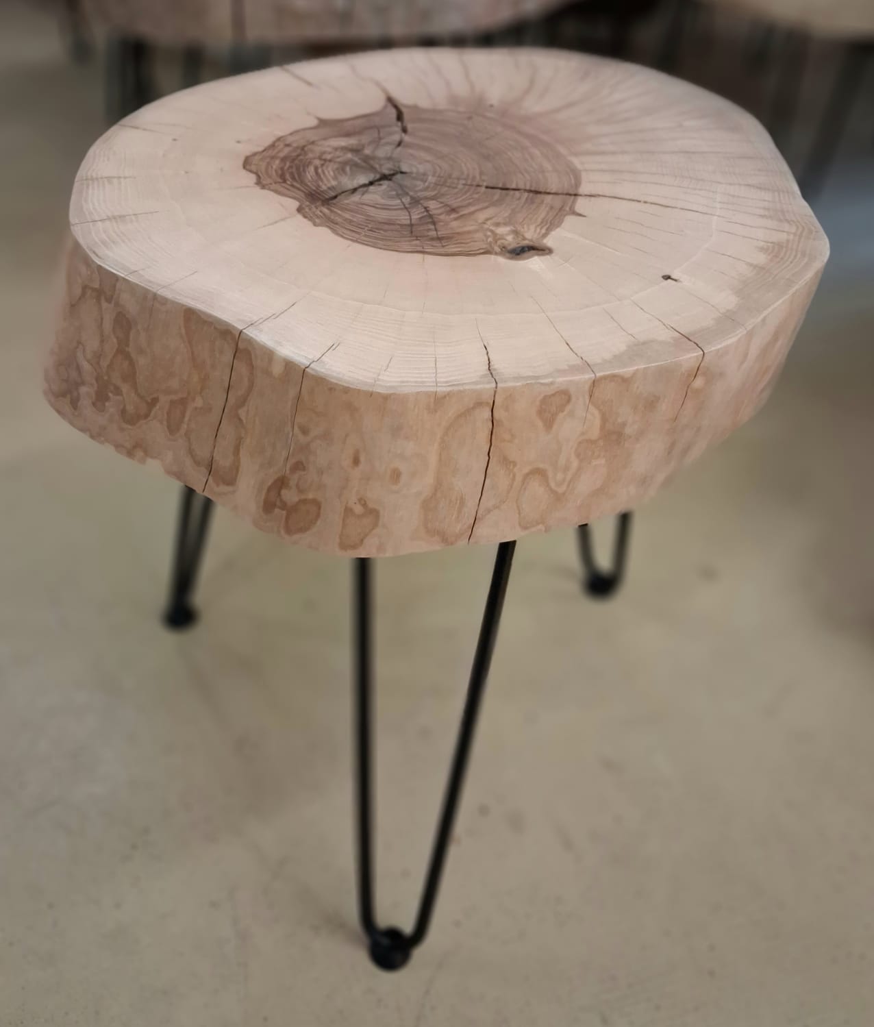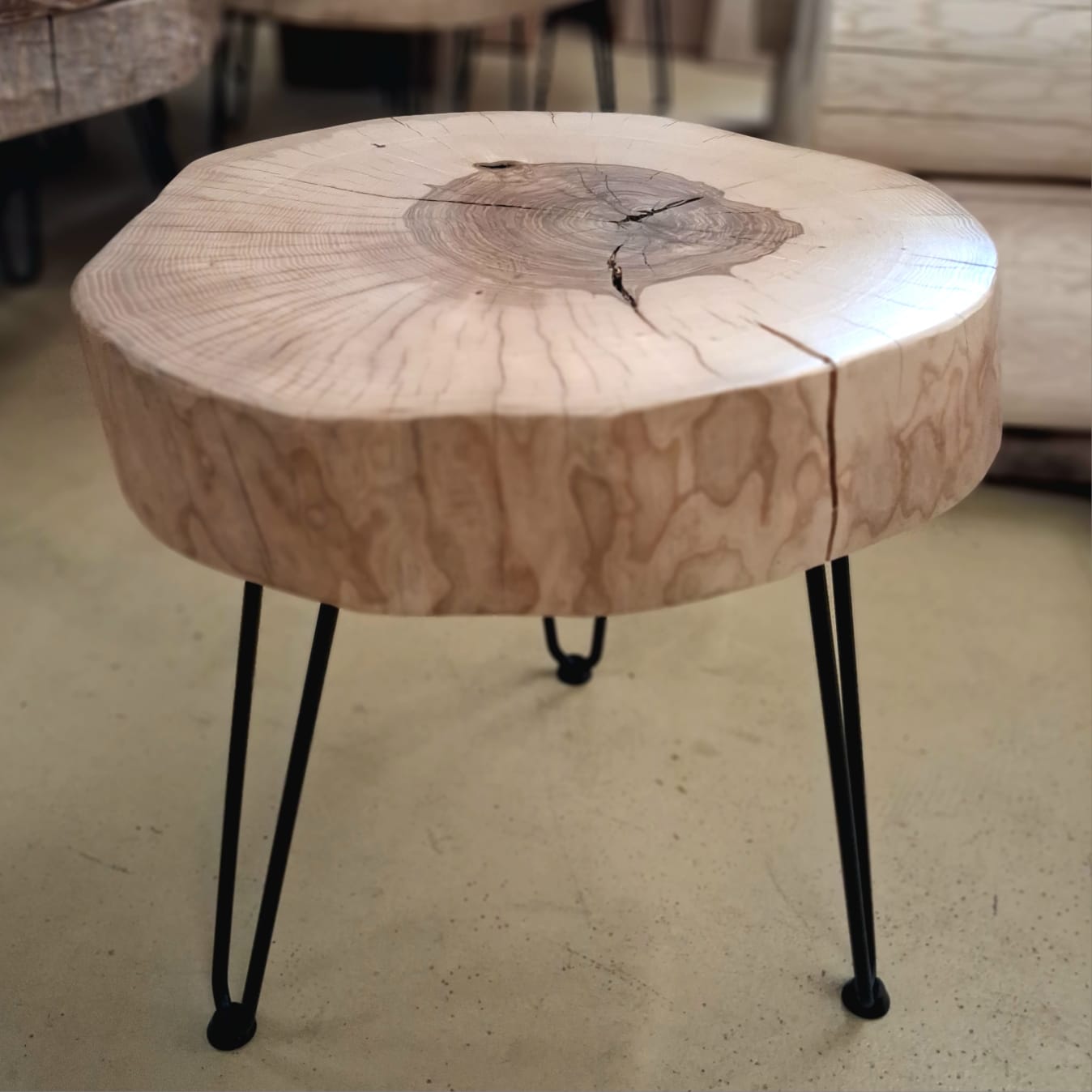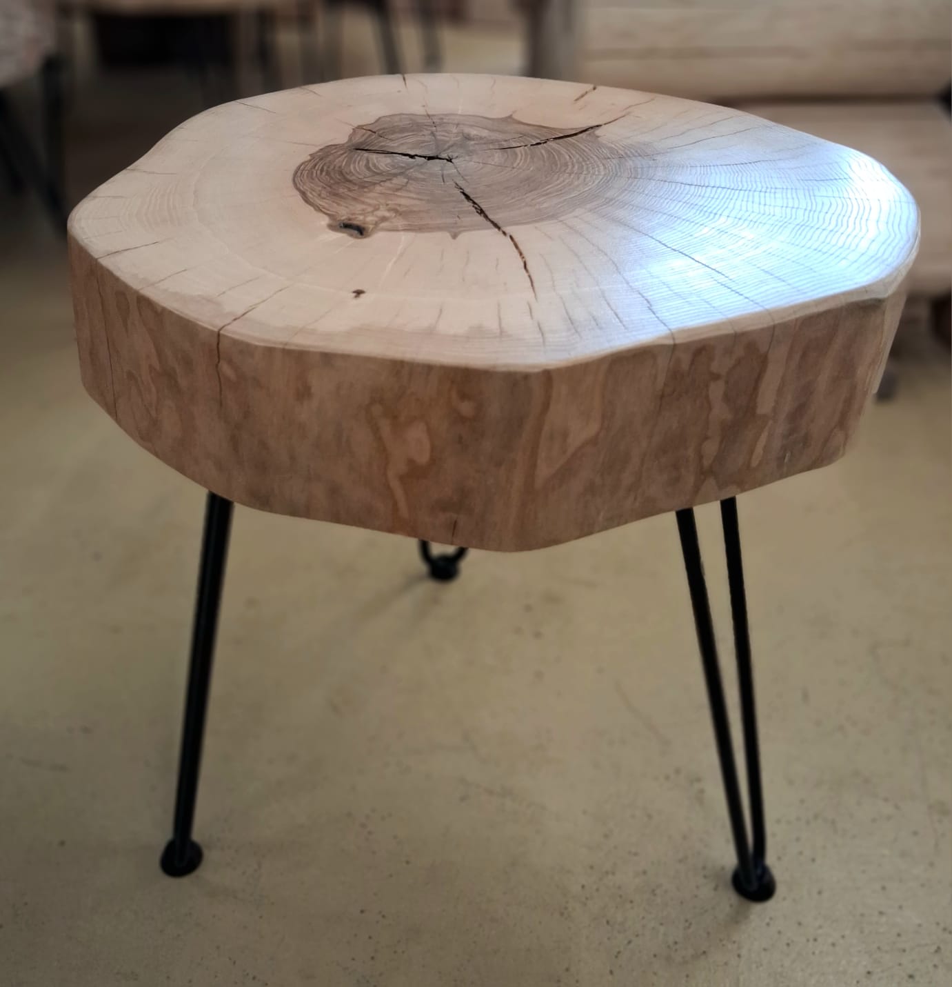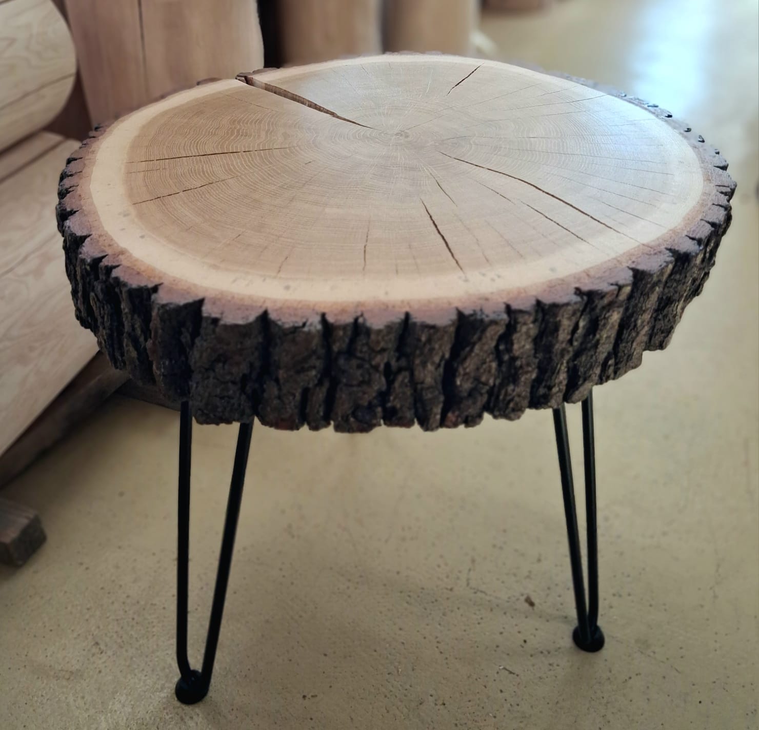 Stolek vyrobený z vybraného jasanového dřeva. Jedná se o příčný řez českým jasanem ztepilým. Jedinečný ručně broušený koláč je ponechaný v původním přírodním tvaru stromu. Dřevo je pečlivě ošetřené ekologickým ochranným nátěrem pro dlouhou životnost a zvýraznění kresby.