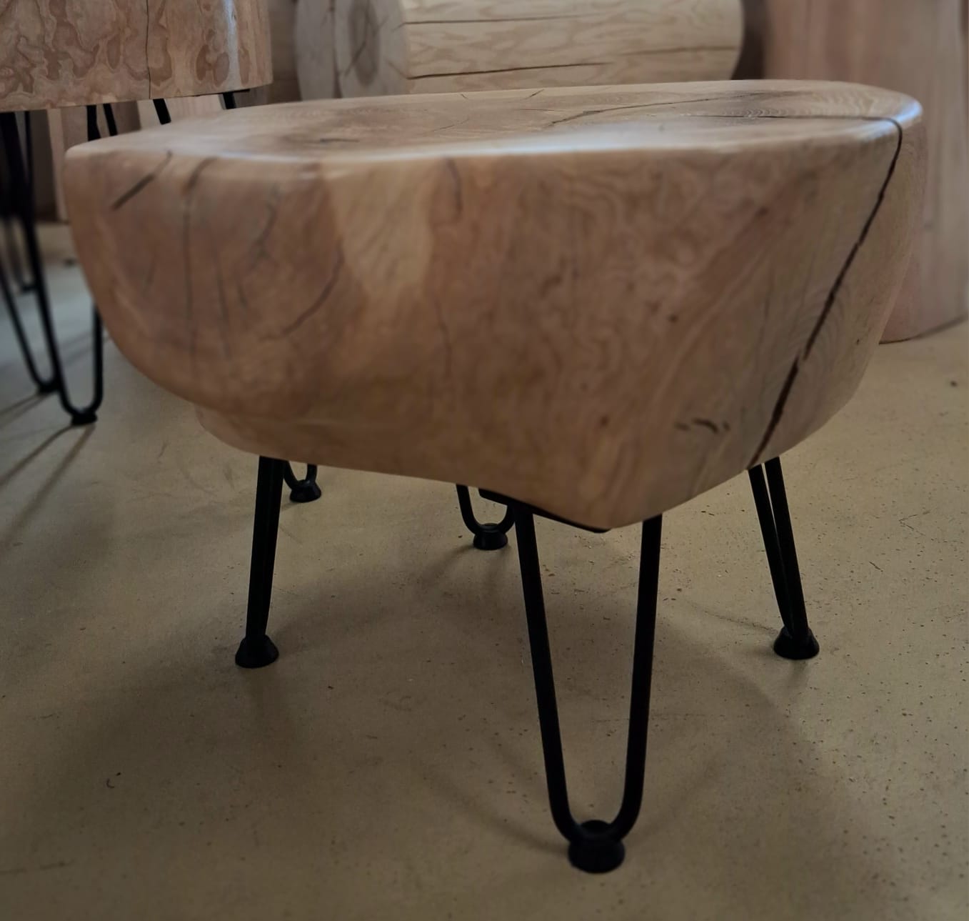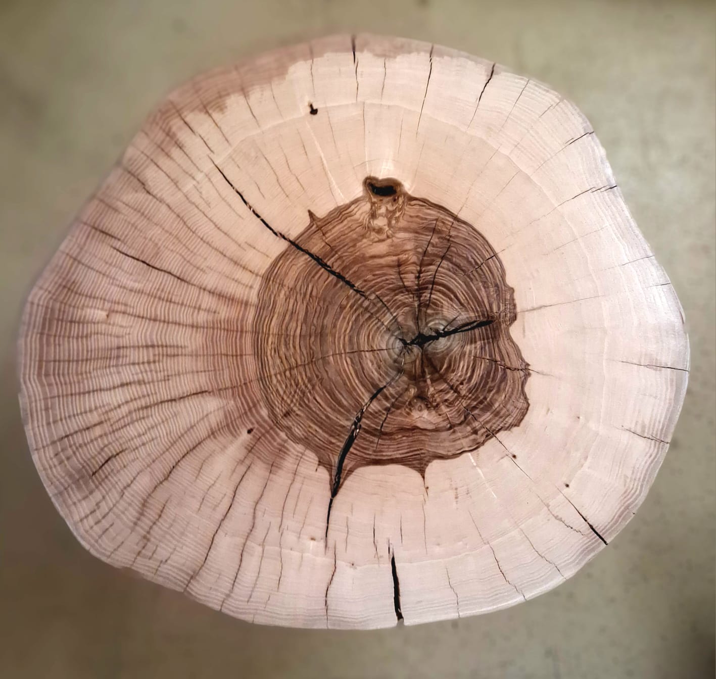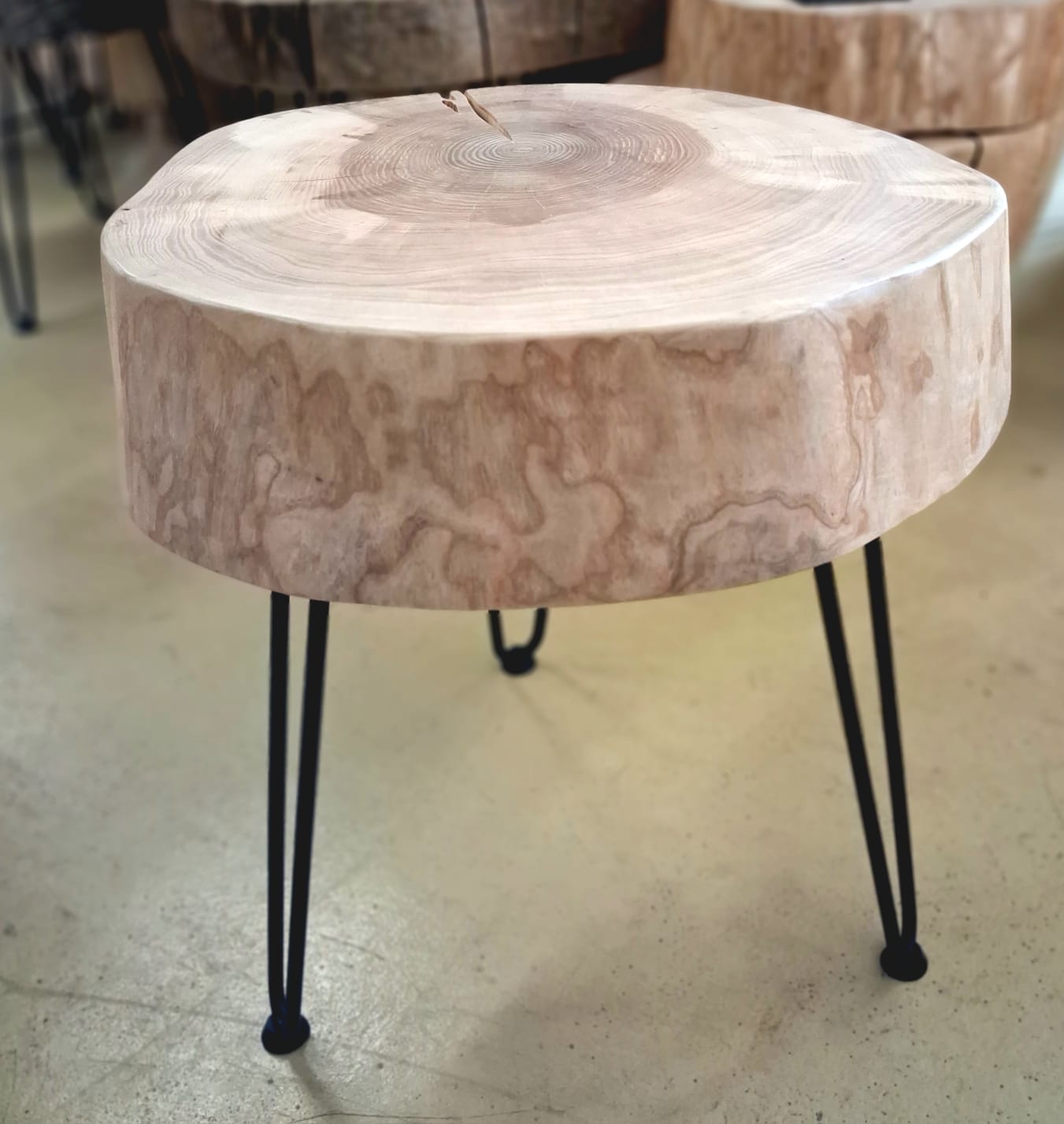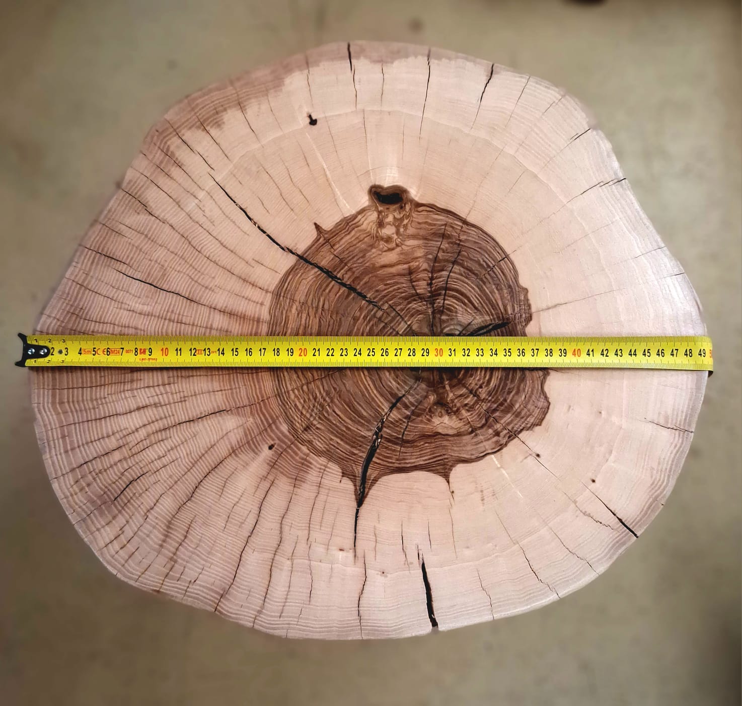 Stolek vyrobený z vybraného jasanového dřeva. Jedná se o příčný řez českým jasanem ztepilým. Jedinečný ručně broušený koláč je ponechaný v původním přírodním tvaru stromu. Dřevo je pečlivě ošetřené ekologickým ochranným nátěrem pro dlouhou životnost a zvýraznění kresby.