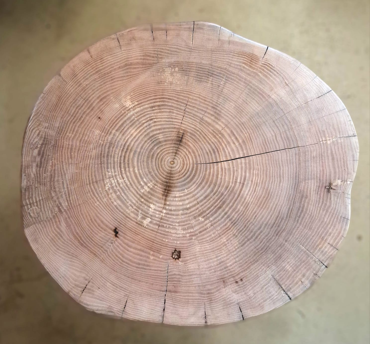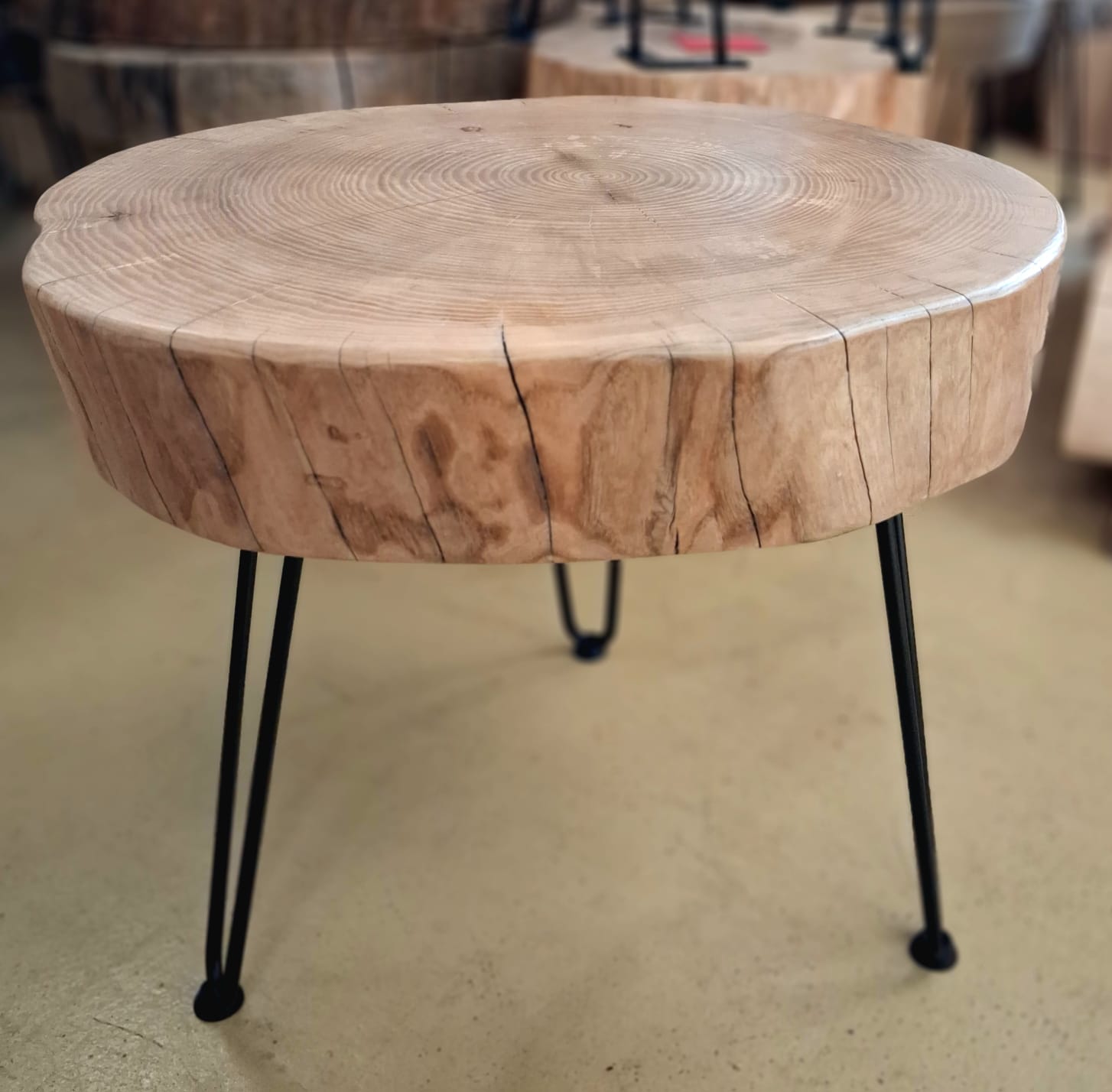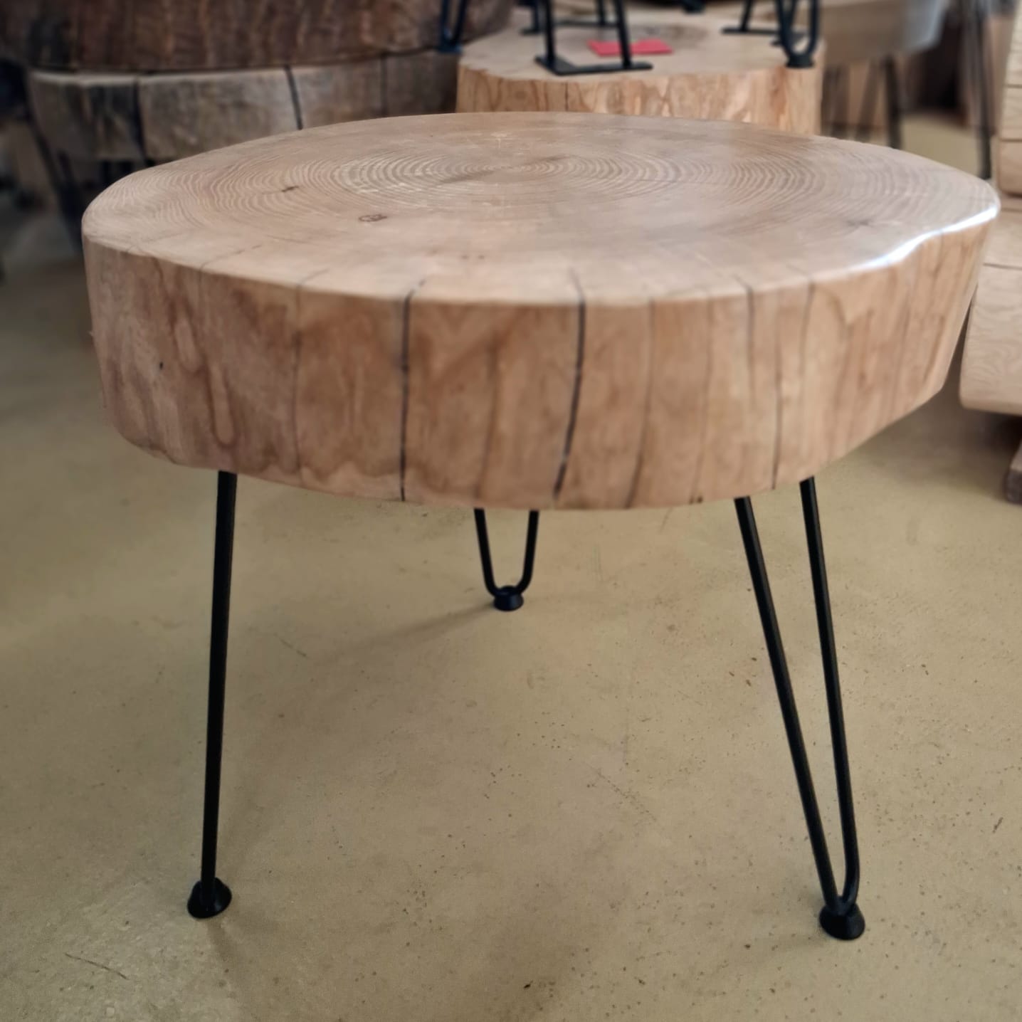 Stolek vyrobený z vybraného jasanového dřeva. Jedná se o příčný řez českým jasanem ztepilým. Jedinečný ručně broušený koláč je ponechaný v původním přírodním tvaru stromu. Dřevo je pečlivě ošetřené ekologickým ochranným nátěrem pro dlouhou životnost a zvýraznění kresby.
