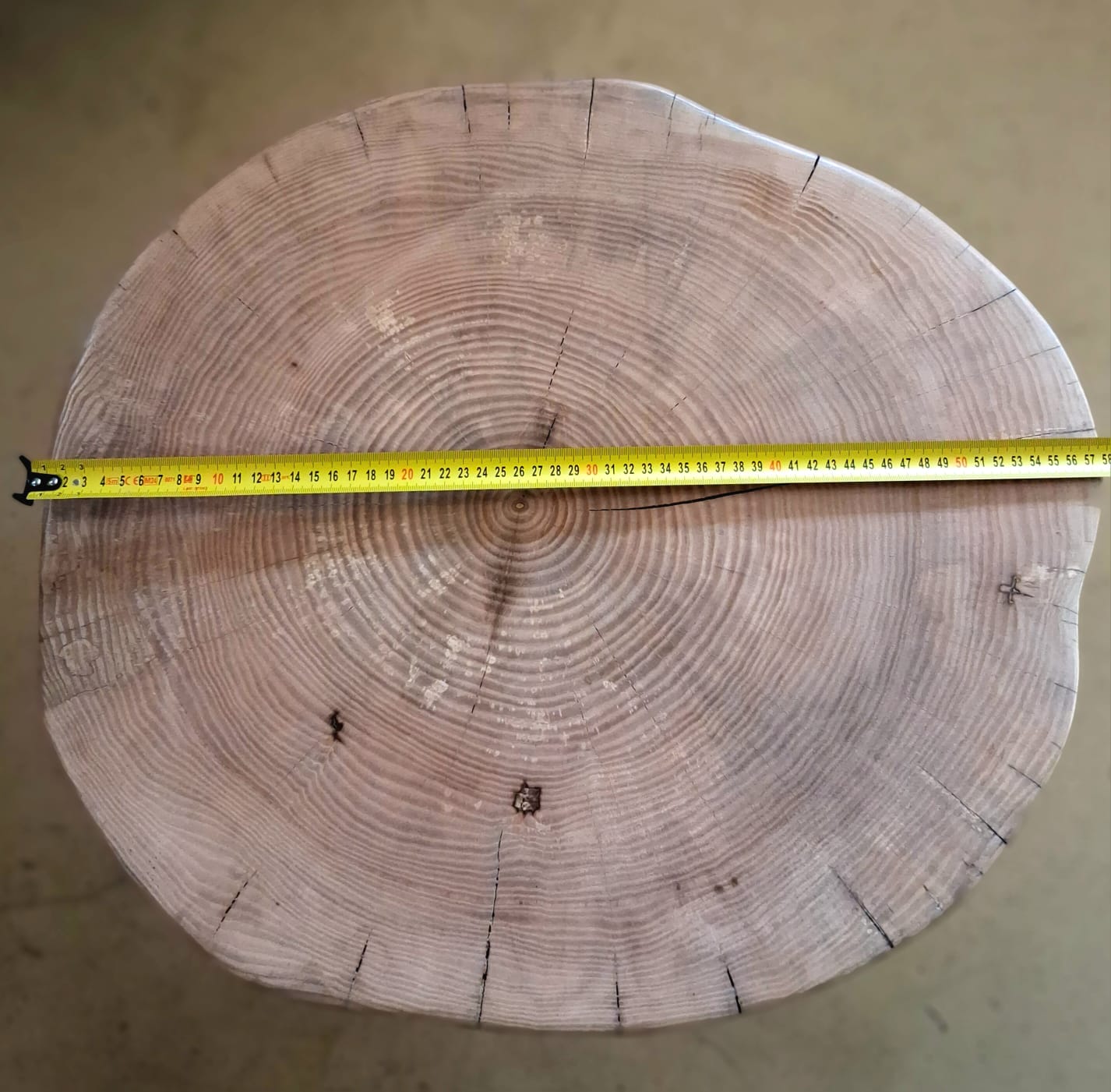 Výška stolku je 52 cm. V nejširším místě měří stolek v průměru 58 cm.
