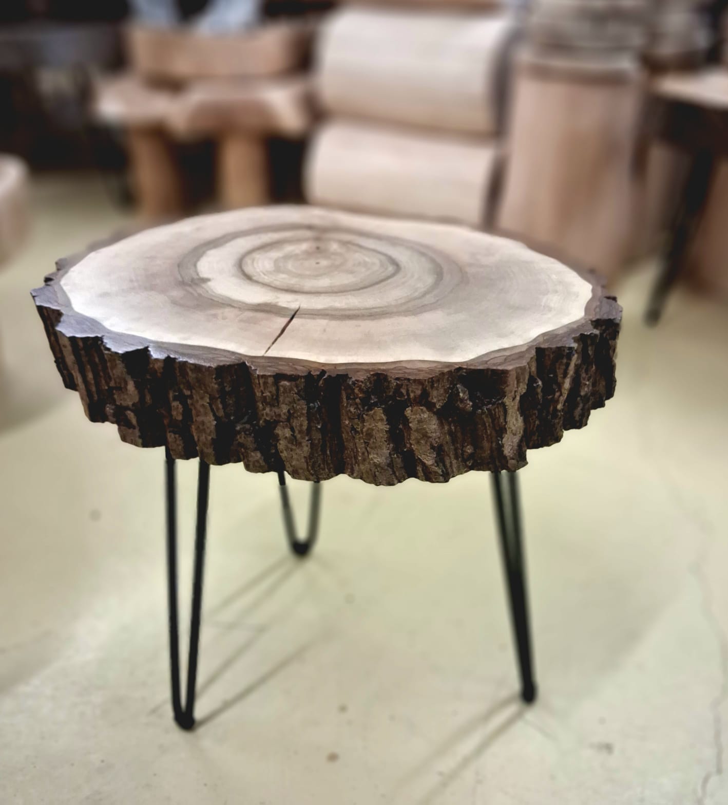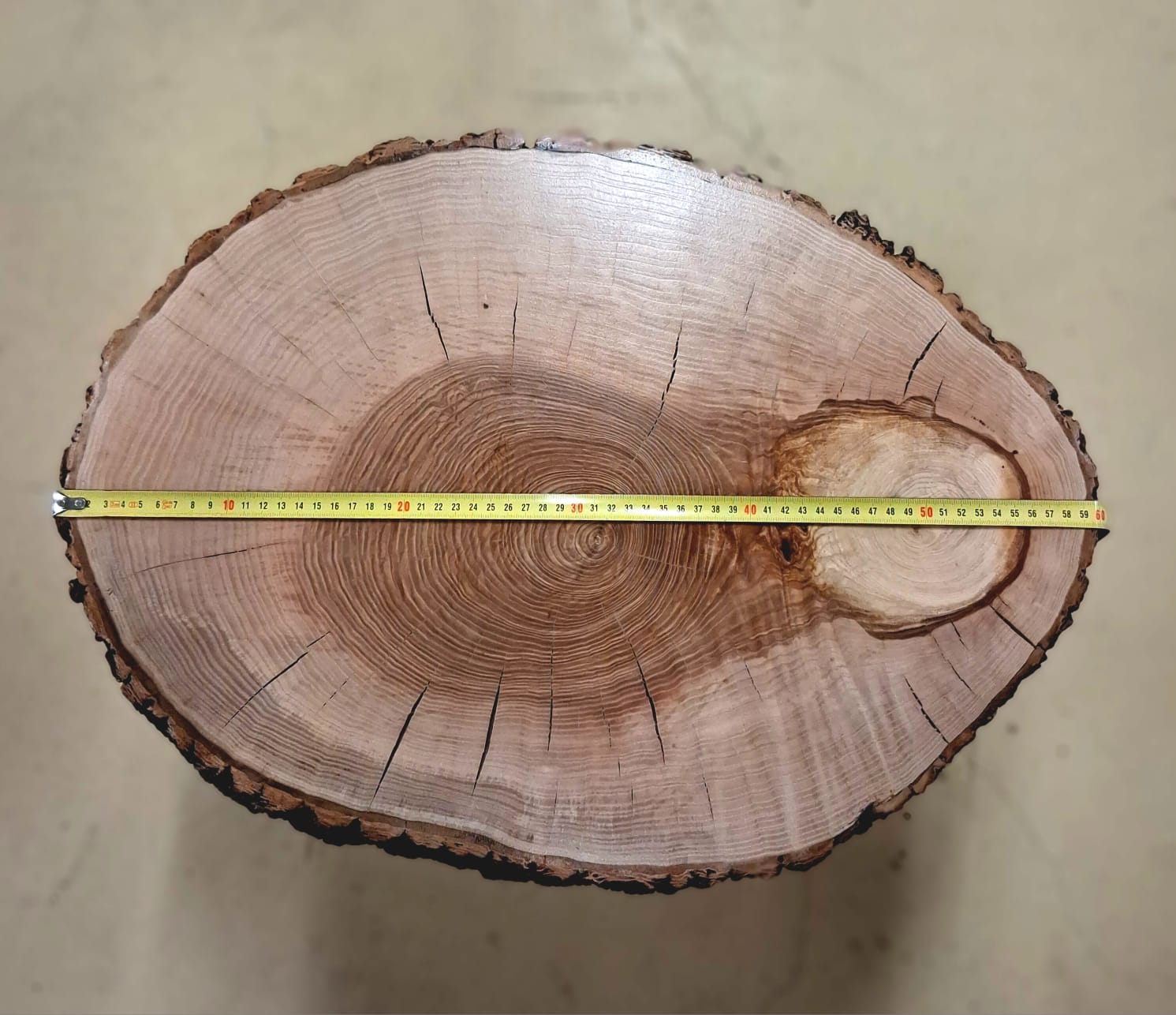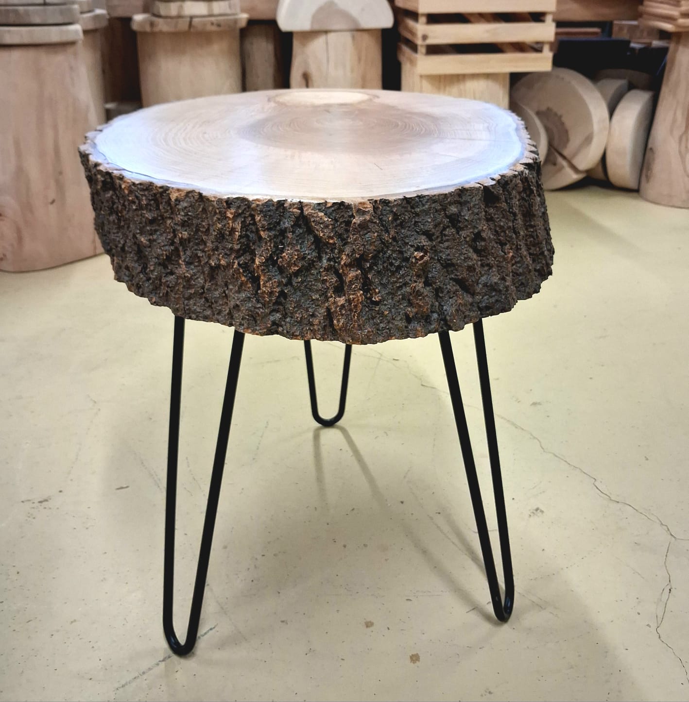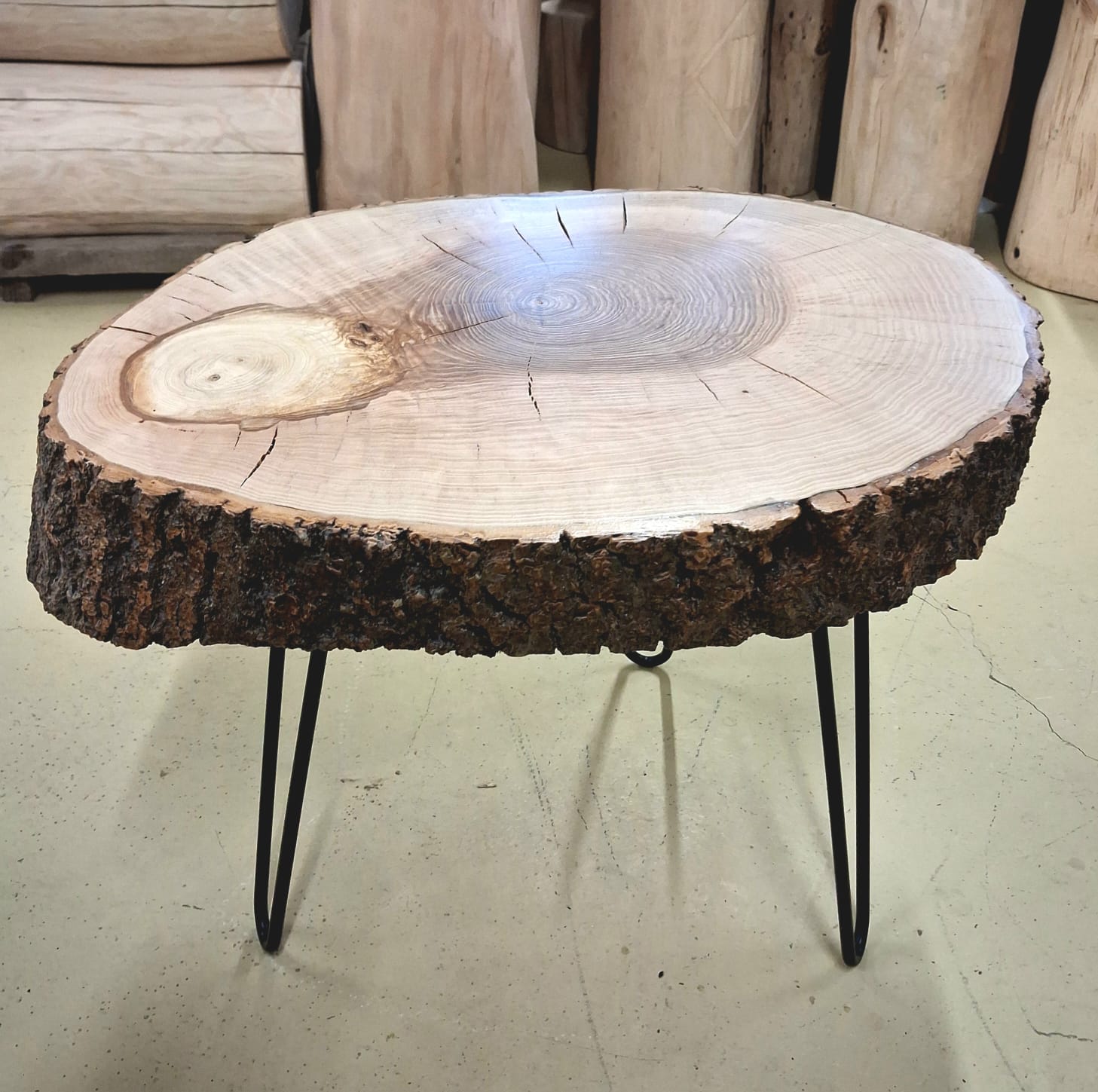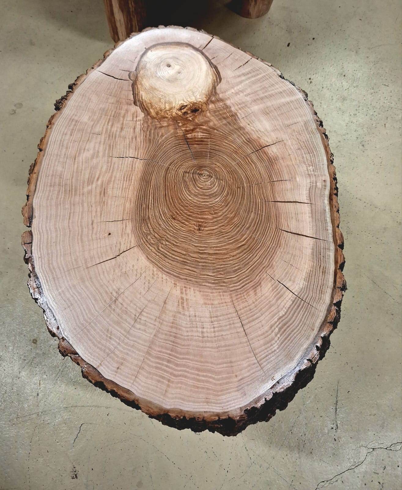 Stolek vyrobený z vybraného jasanového dřeva. Jedná se o příčný řez českým jasanem ztepilým. Jedinečný ručně broušený koláč je ponechaný v původním přírodním tvaru stromu. Dřevo je pečlivě ošetřené ekologickým ochranným nátěrem pro dlouhou životnost a zvýraznění kresby.