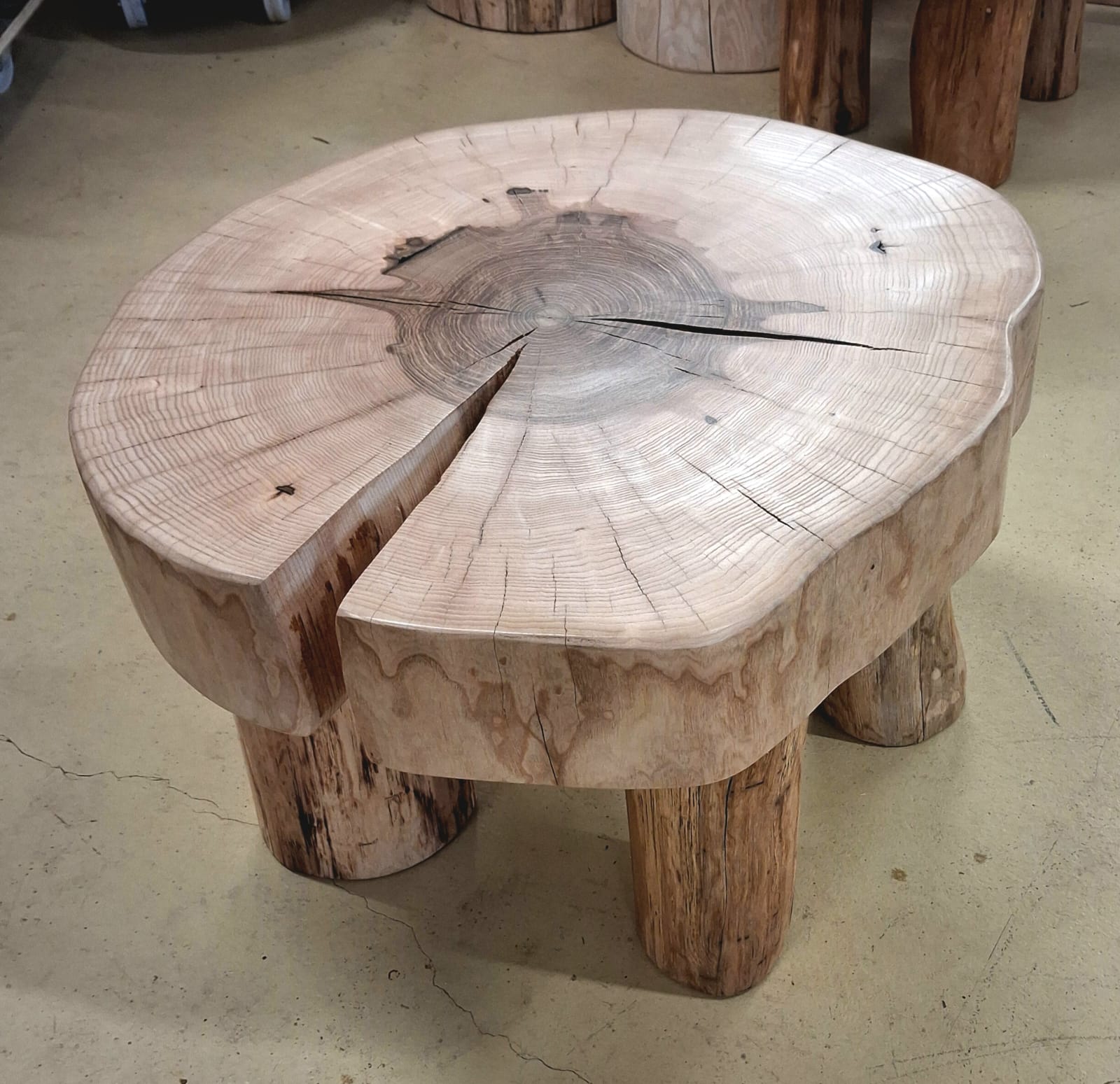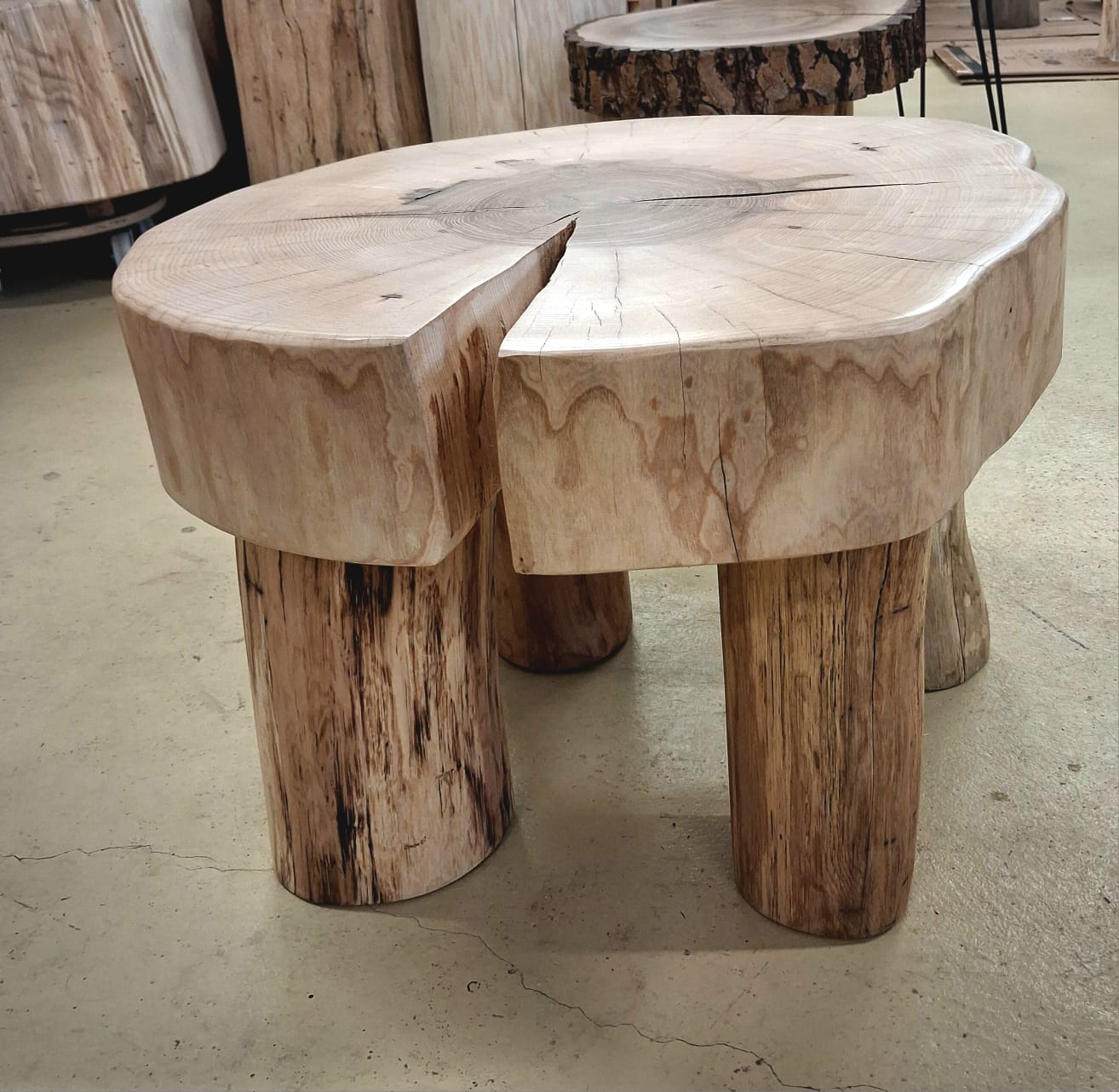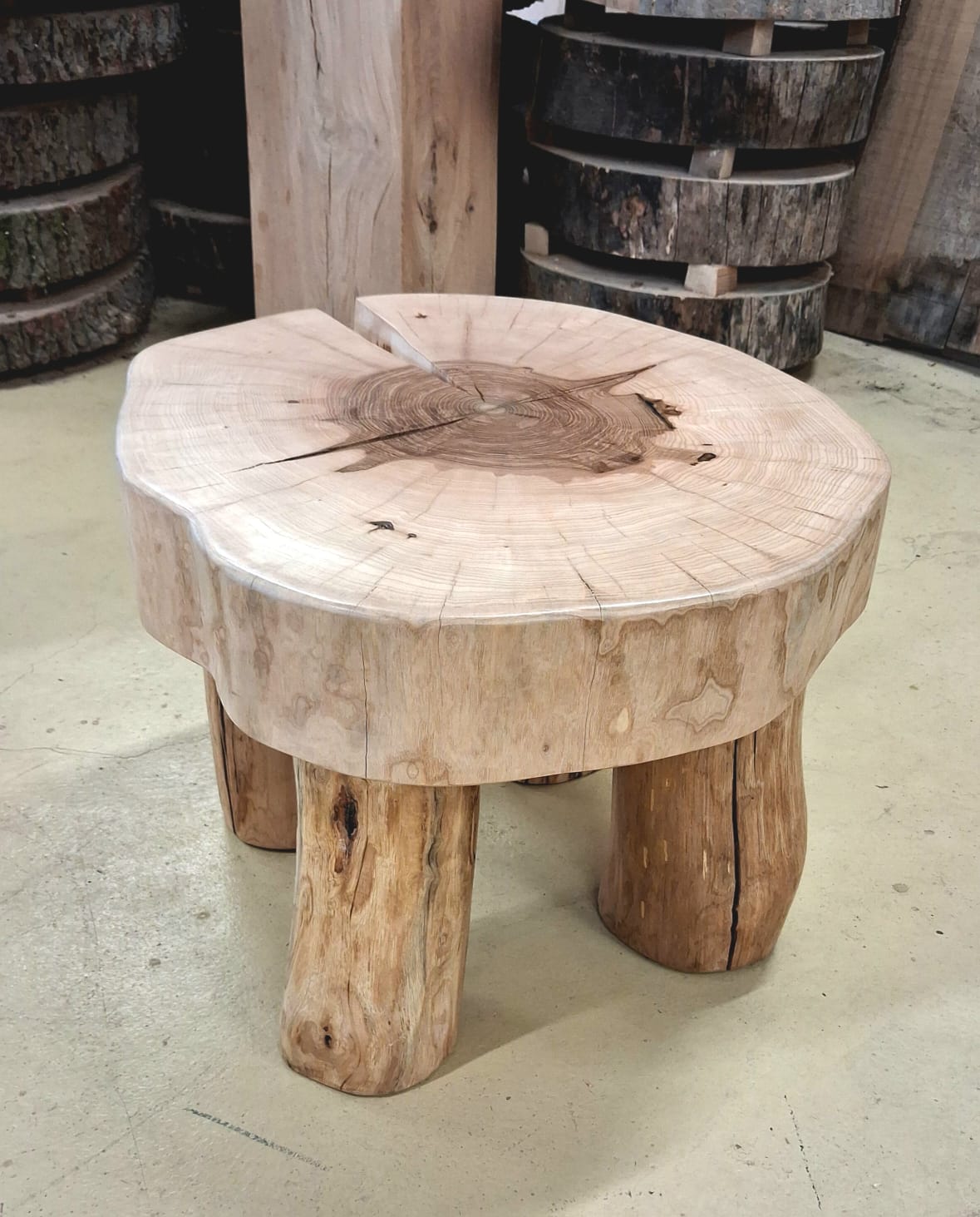 Unikátní stolek vyrobený z vybraného jasanového dřeva. Jedná se o příčný řez českým jasanem ztepilým. Jedinečná ručně broušená deska  je ponechaná v původním přírodním tvaru stromu. Dřevo je pečlivě ošetřené ekologickým ochranným nátěrem pro dlouhou životnost a zvýraznění kresby.
