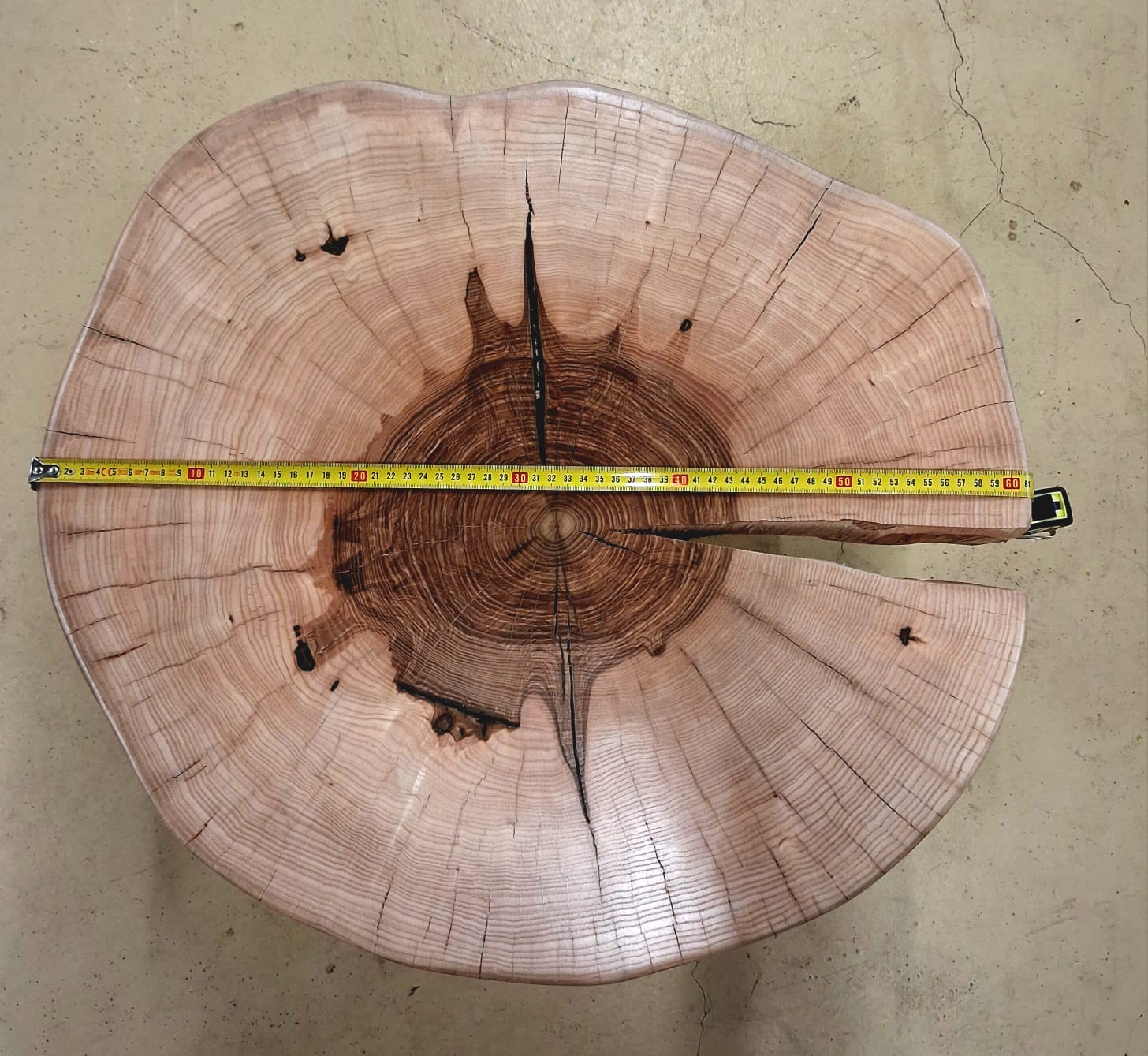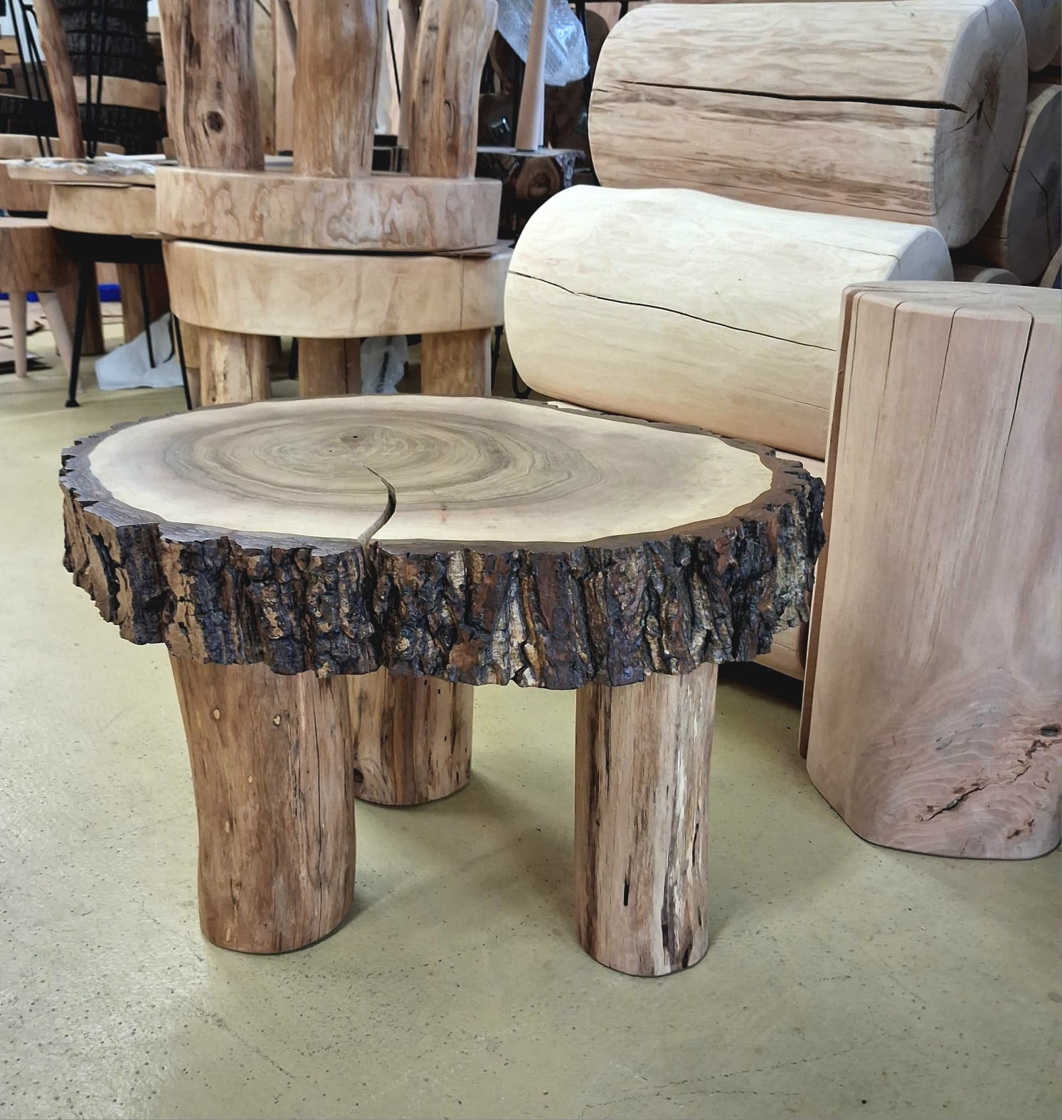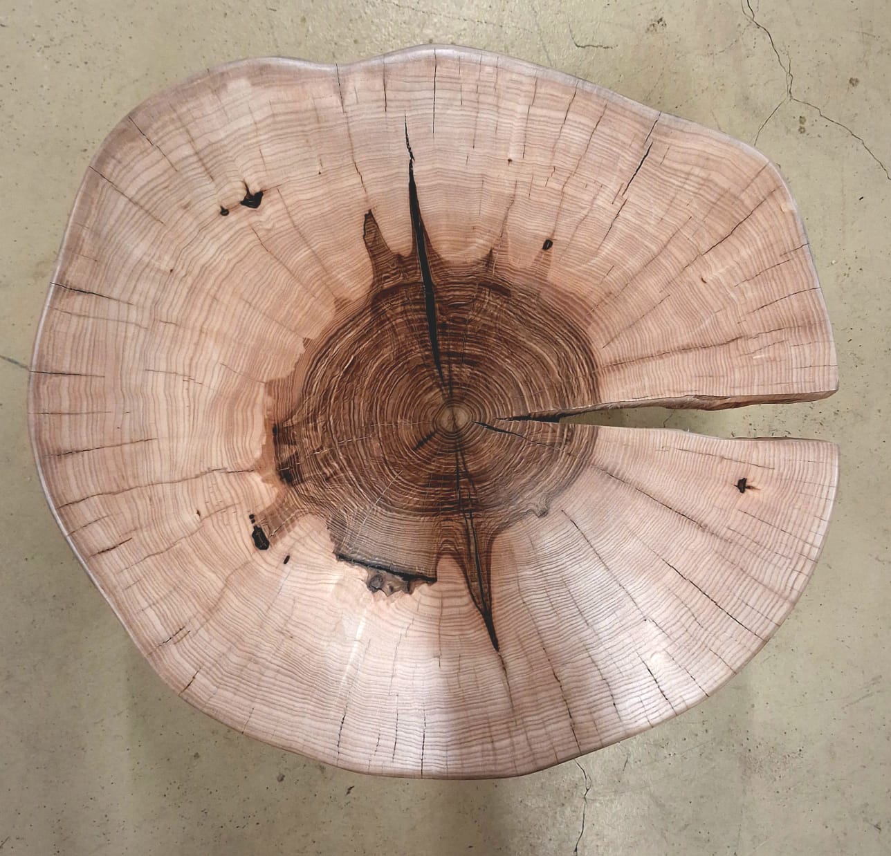 Unikátní stolek vyrobený z vybraného jasanového dřeva. Jedná se o příčný řez českým jasanem ztepilým. Jedinečná ručně broušená deska  je ponechaná v původním přírodním tvaru stromu. Dřevo je pečlivě ošetřené ekologickým ochranným nátěrem pro dlouhou životnost a zvýraznění kresby.