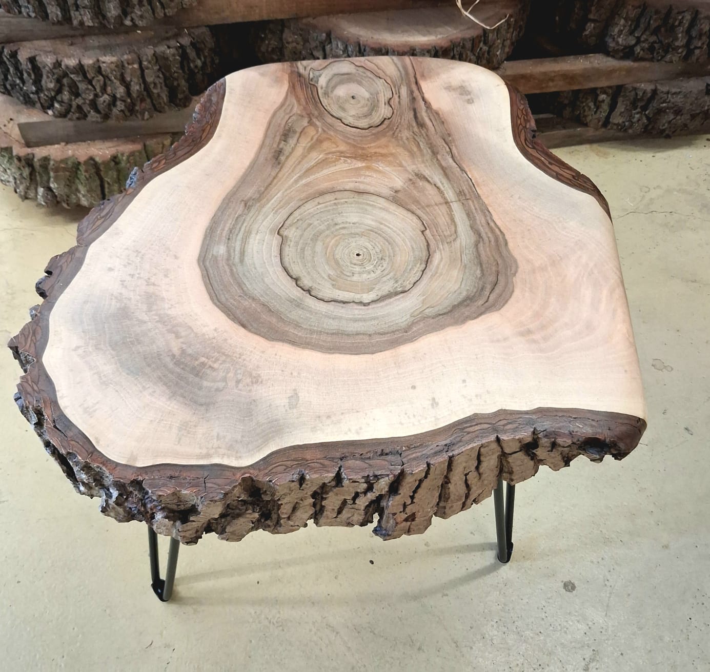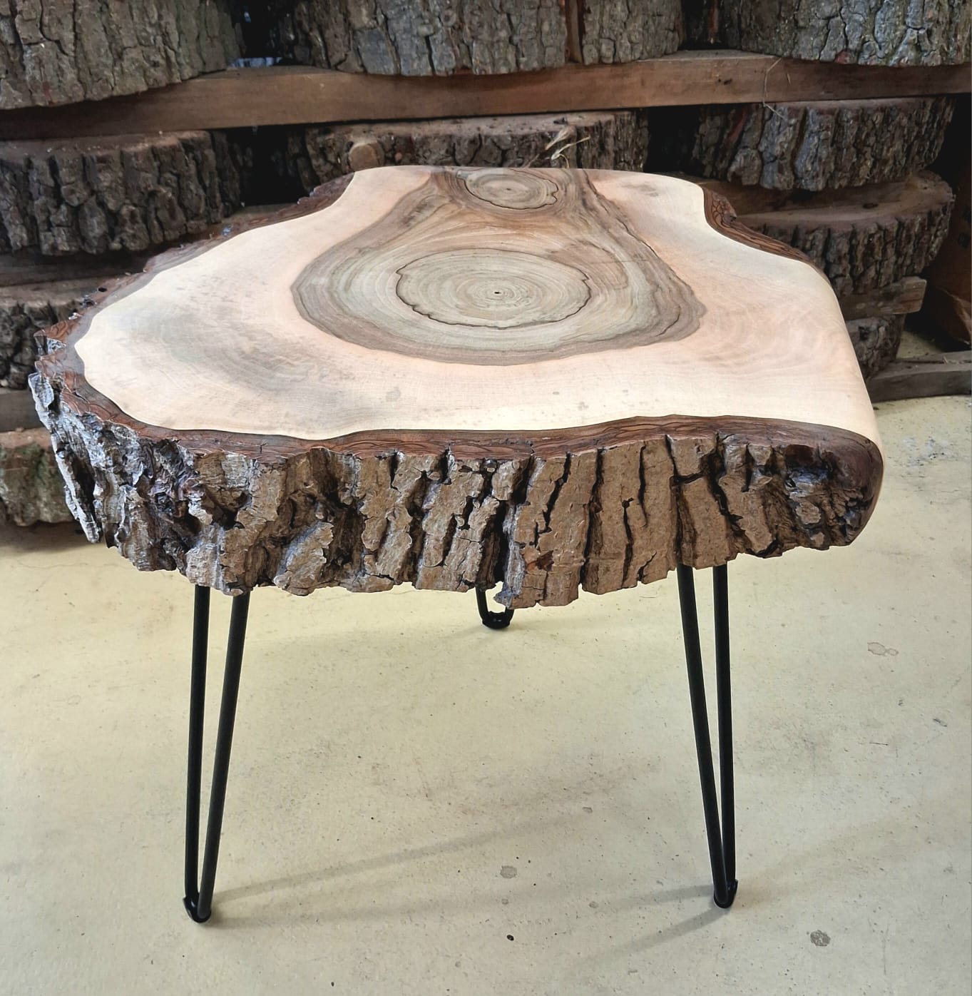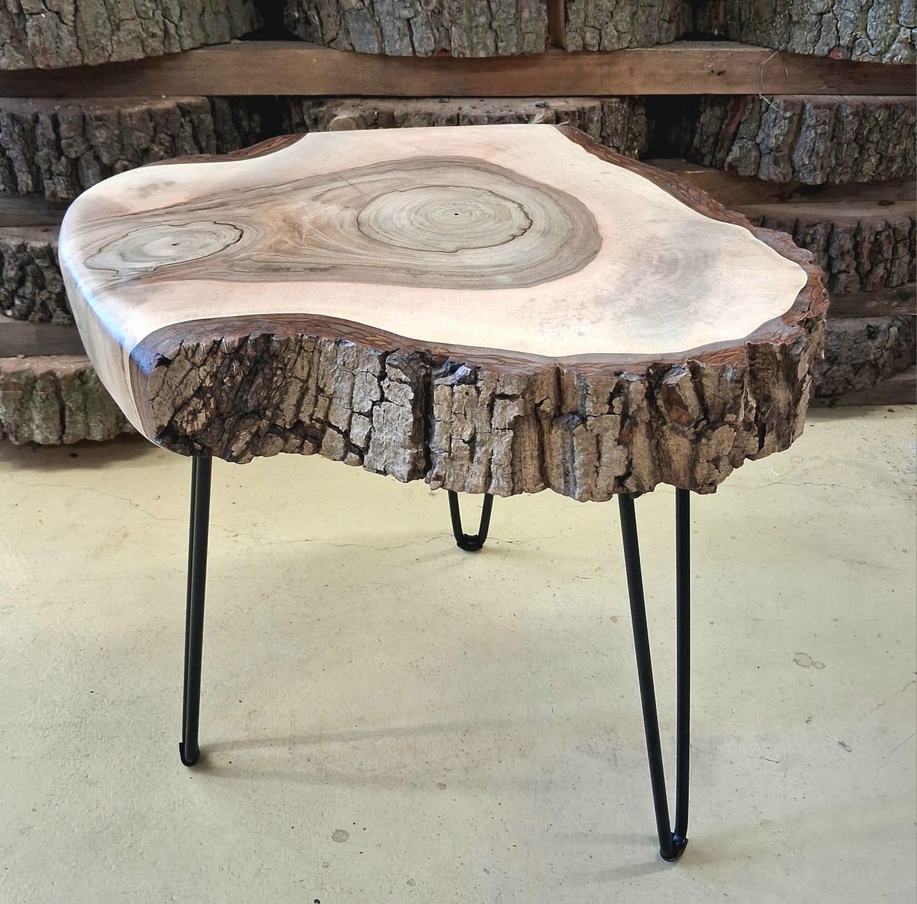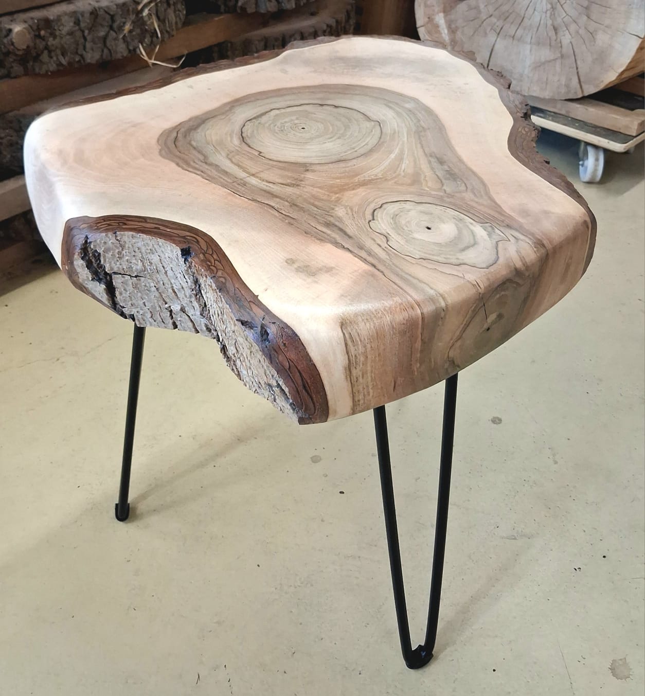 Designový stolek z ořechového dřeva – příčný řez ořešákem královským