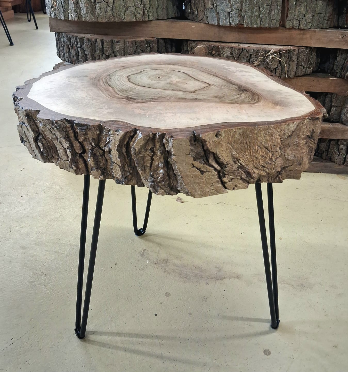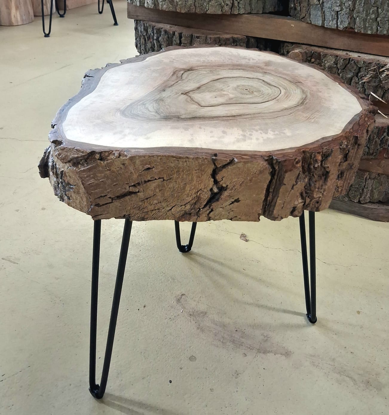 Designový stolek z ořechového dřeva – příčný řez ořešákem královským