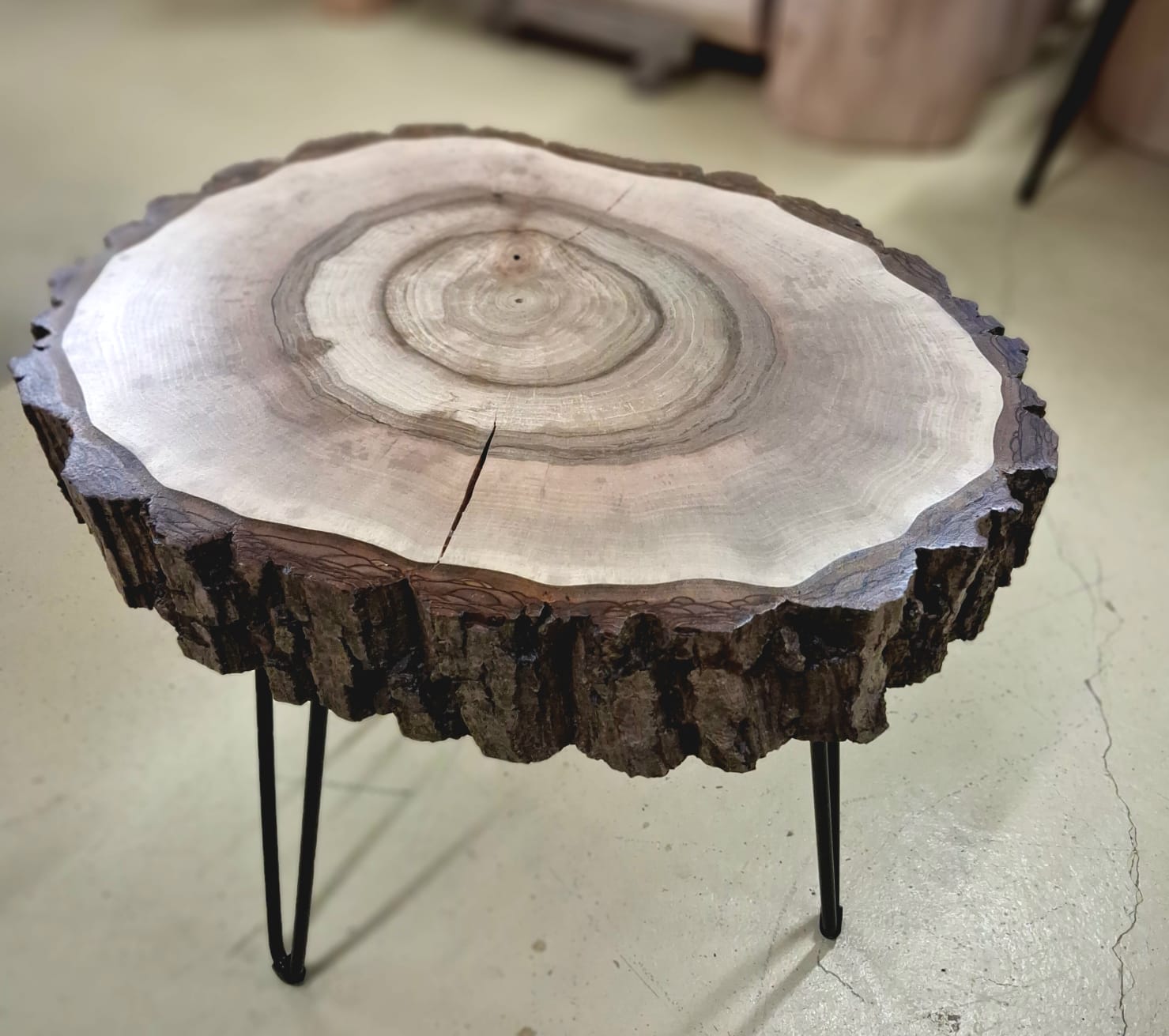 Designový stolek z ořechového dřeva – příčný řez ořešákem královským