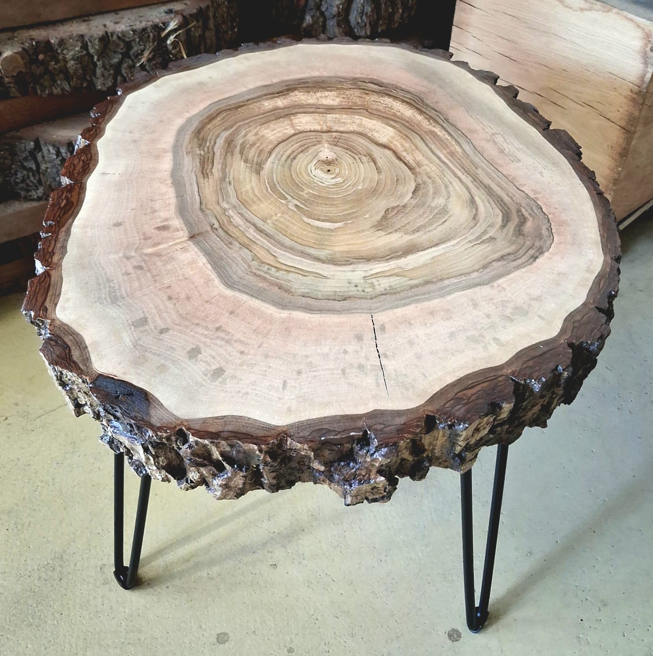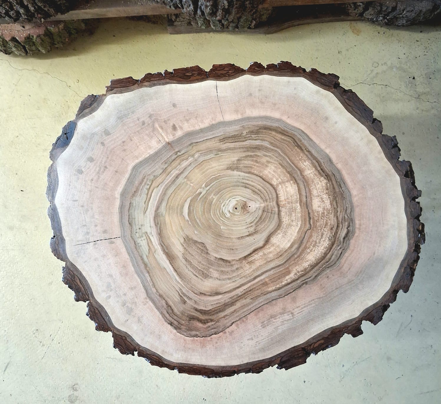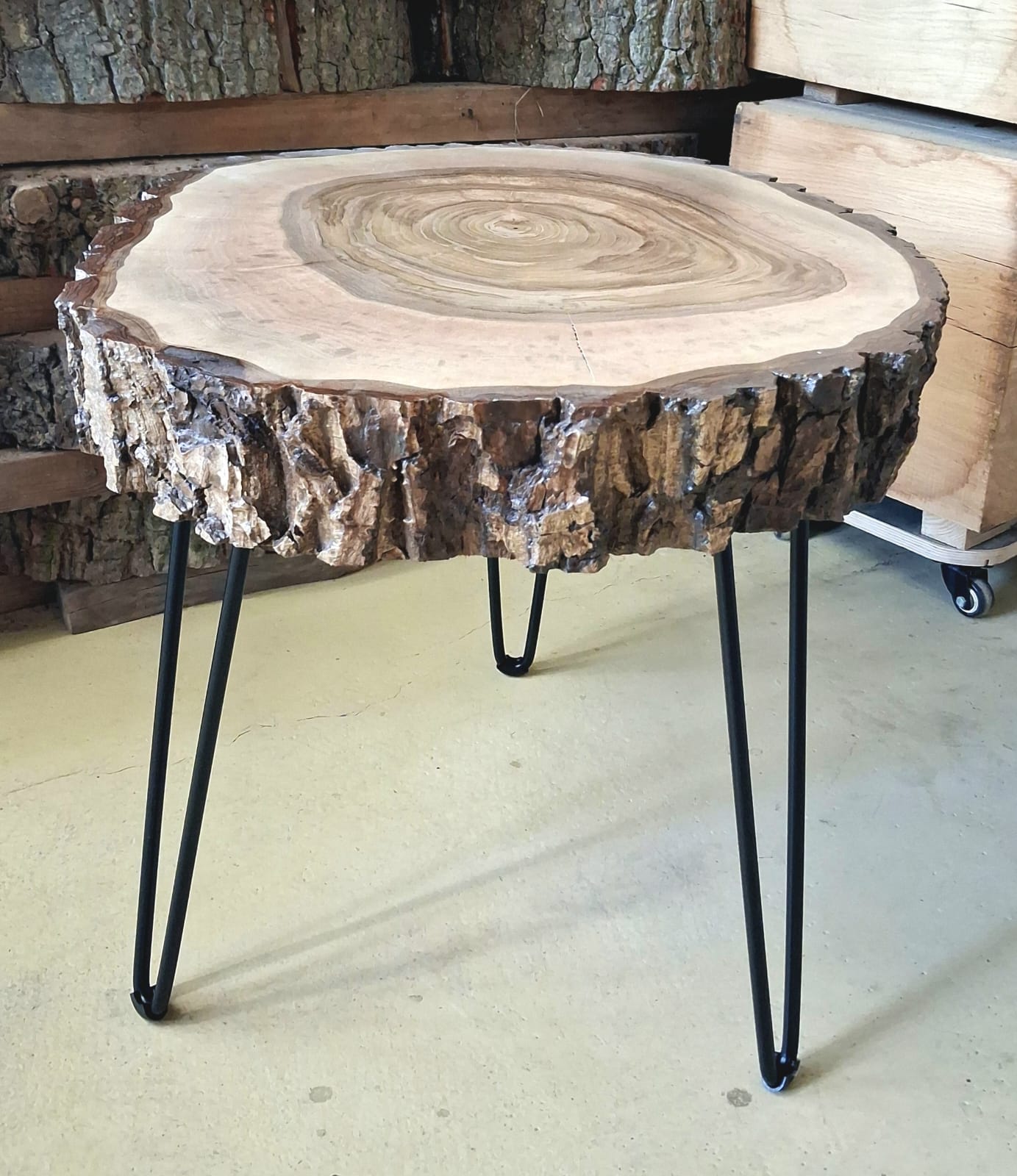 Designový stolek z ořechového dřeva – příčný řez ořešákem královským