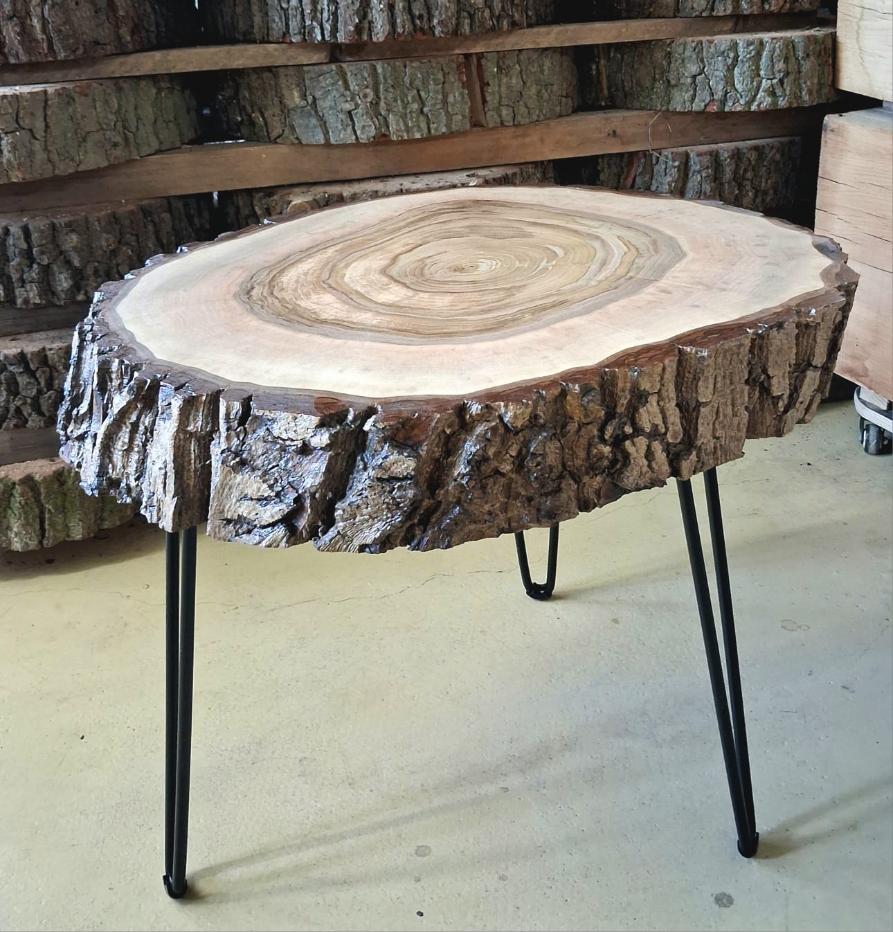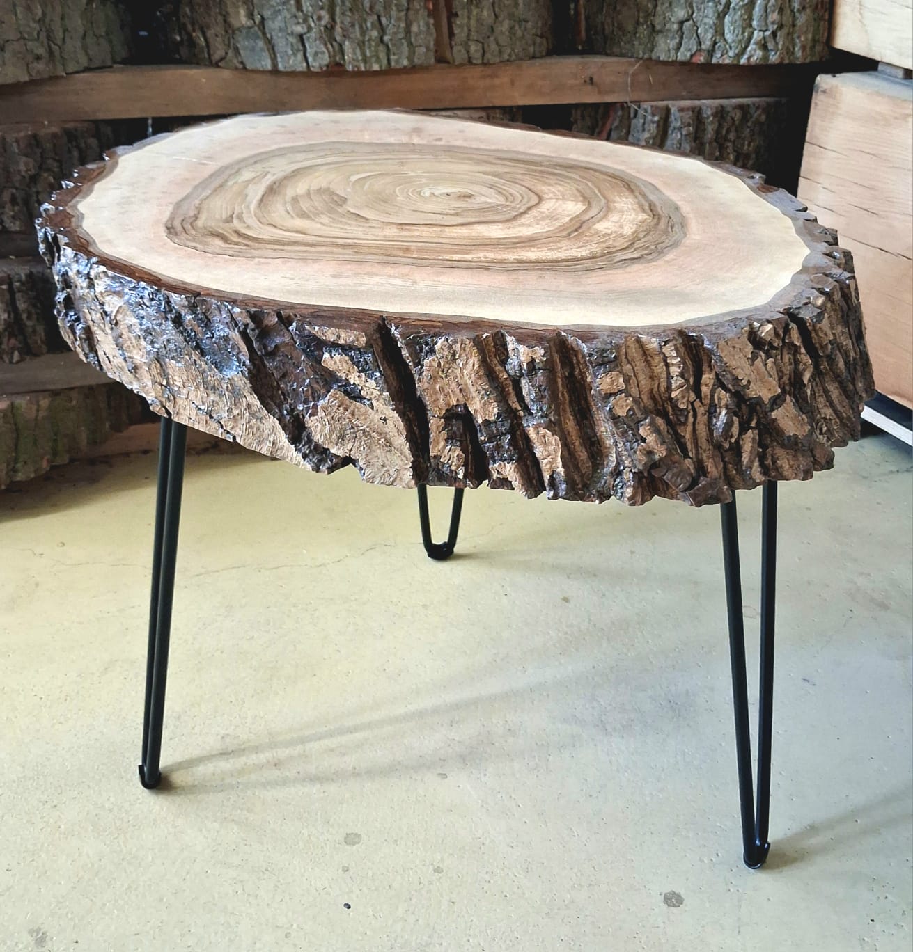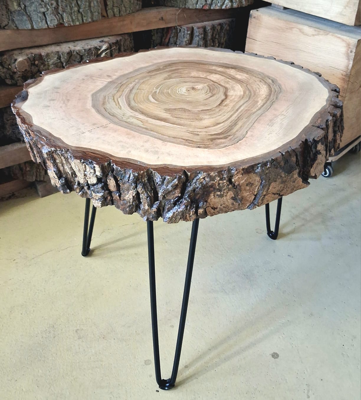 Designový stolek z ořechového dřeva – příčný řez ořešákem královským