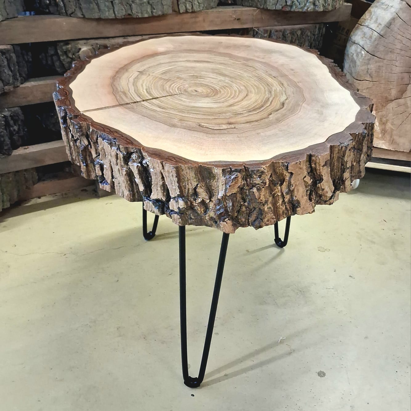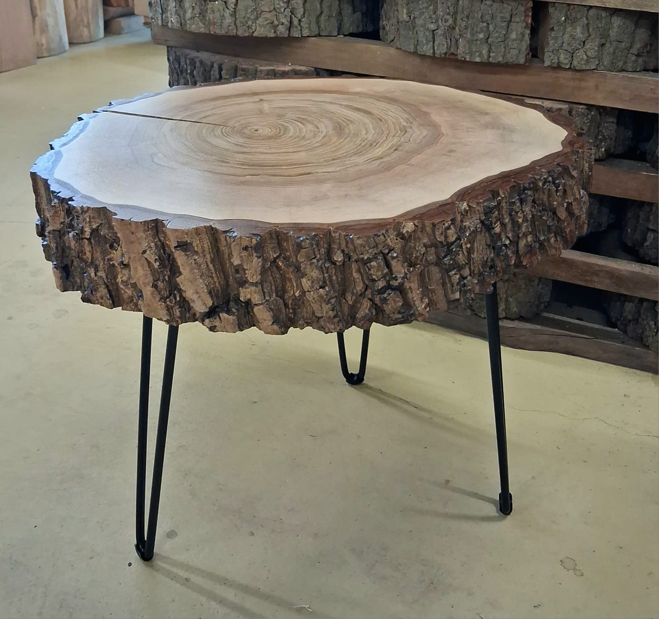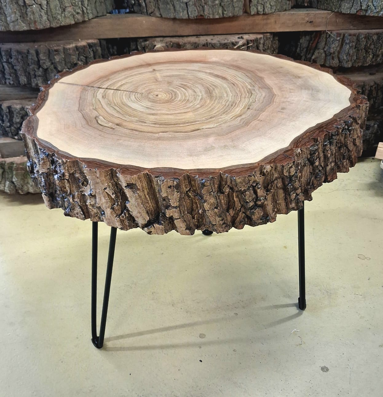Designový stolek z ořechového dřeva – příčný řez ořešákem královským