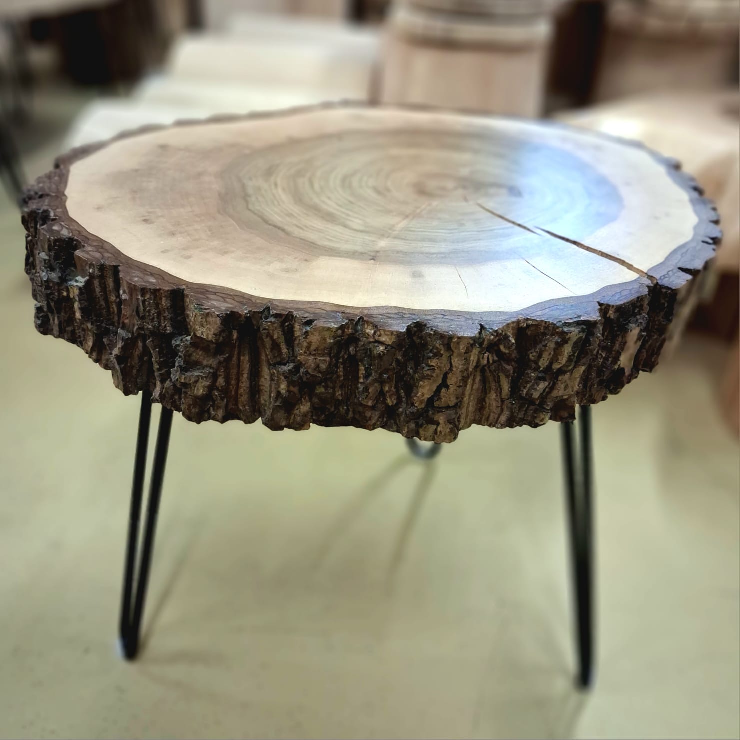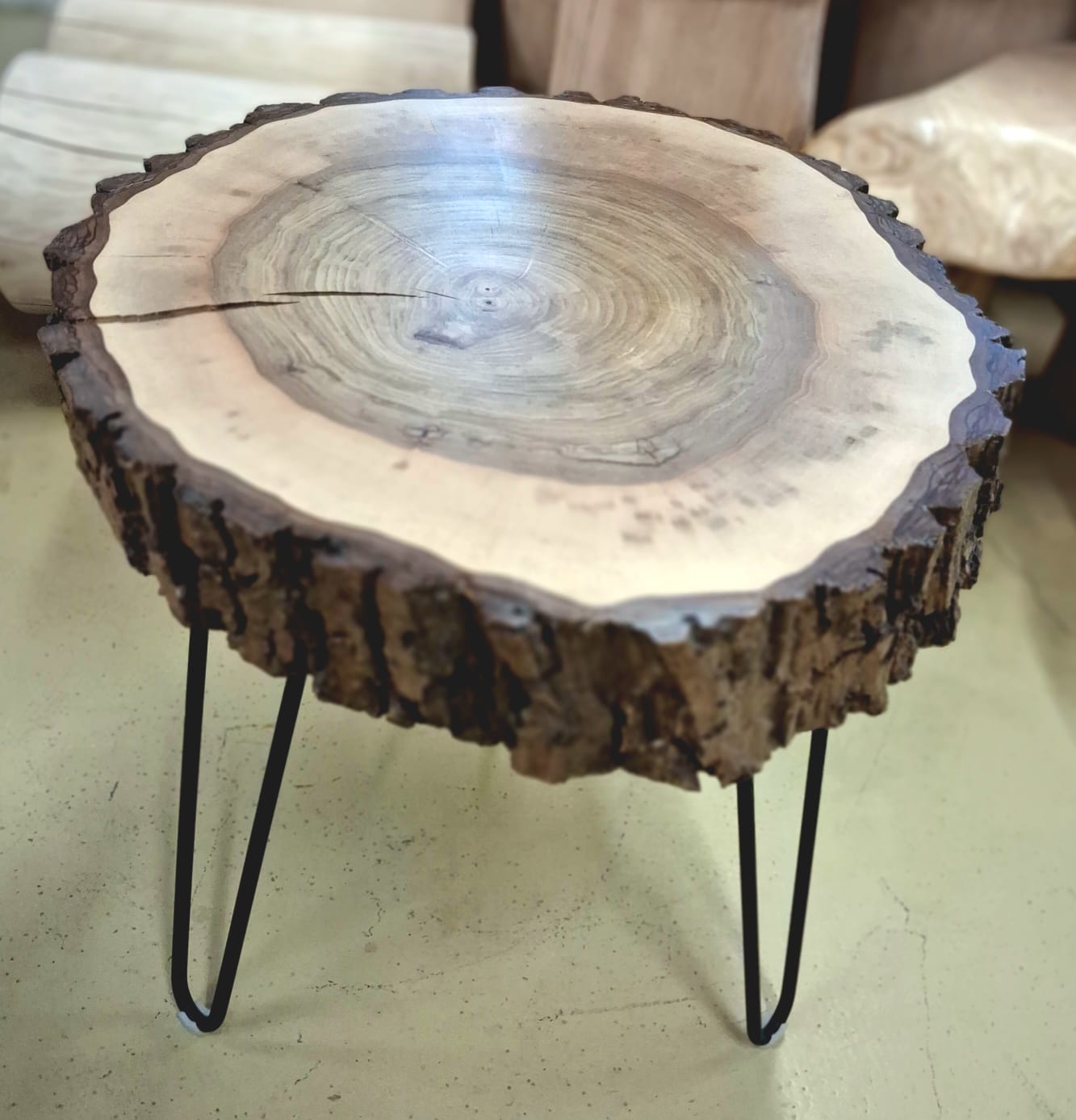 Designový stolek z ořechového dřeva – příčný řez ořešákem královským
